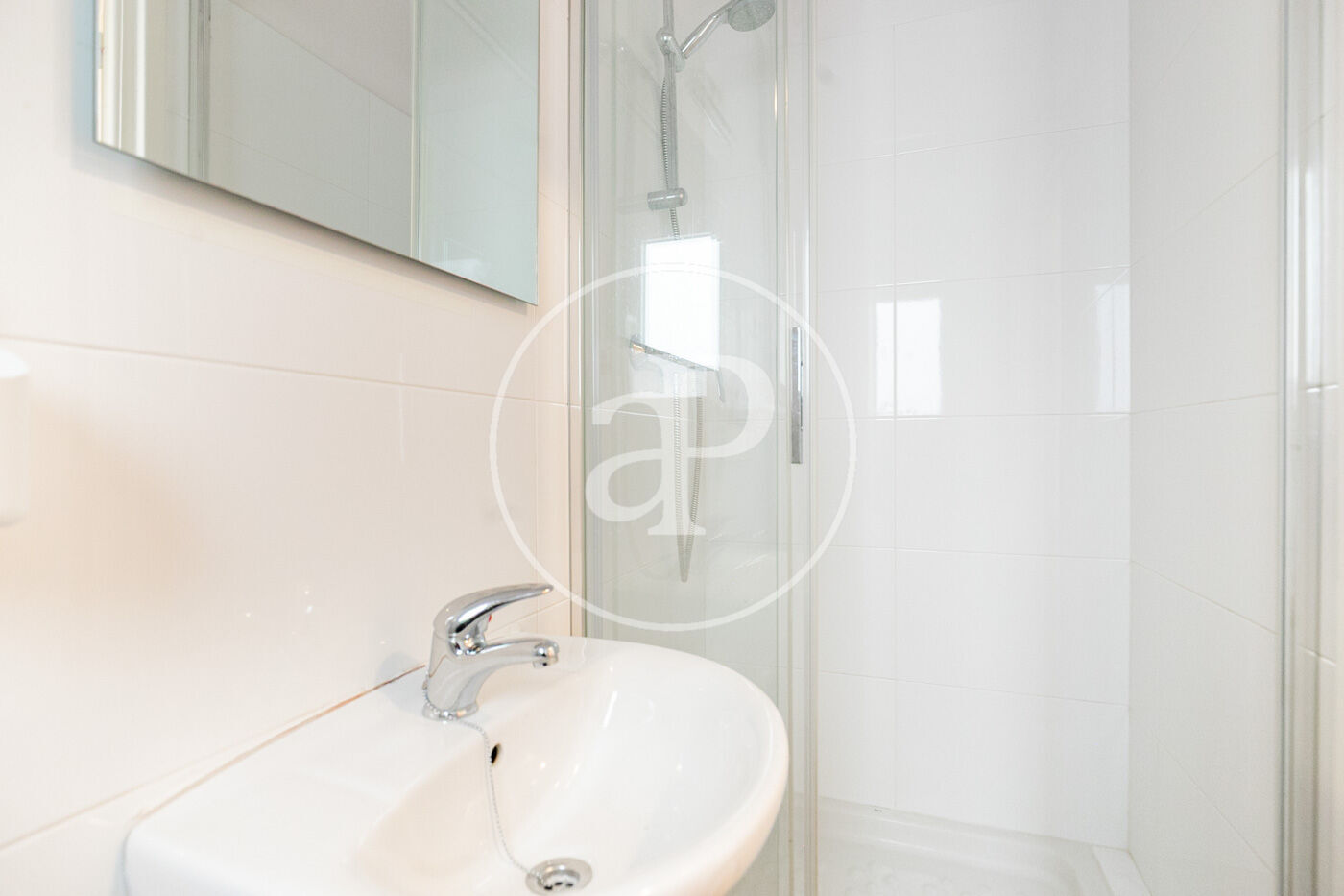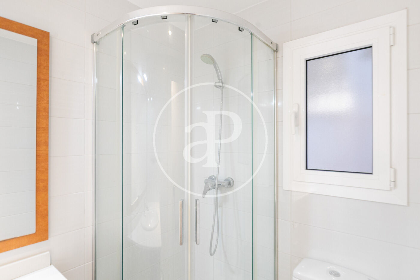 Located in Les Tres Torres, one of Barcelona’s most exclusive and sought-after neighborhoods, aProperties exclusively presents this magnificent 41 m² exterior pied-à-terre, set in a stately building with two floors and five residences, all in excellent condition. This wonderful property features high ceilings and large Climalit balcony-style windows that provide excellent ventilation, abundant natural light, and pleasant views over the landscaped modernist grounds of Casa Sant Felip Neri. The living area consists of a cozy living-dining room with a fully equipped open-plan office-style kitchen, as well as an enclosed room next to the entrance that serves as a laundry area. The entire property is electric, with the option to install gas if desired. The sleeping area includes a double bedroom and a full bathroom renovated in 2021 by Roca, featuring a shower tray and glass screen. For added comfort, the property features solid jatoba wood flooring, with ceramic flooring in the bathroom and laundry area. The brand-new split air-conditioning system is individual and provides both heating and cooling. The crown jewel of the property is located on the building’s rooftop: a spectacular terrace for the exclusive use of the five owners. There is also a small communal storage room under the staircase. A unique opportunity to live in one of Barcelona’s most exclusive, quiet, and residential areas, surrounded by all kinds of shops, clinics, and schools, and very well connected to the Tres Torres and Sarrià railway stations, as well as the ring roads, and very close to Diagonal Avenue. Do not miss the opportunity to visit it with aProperties and make it your new home!