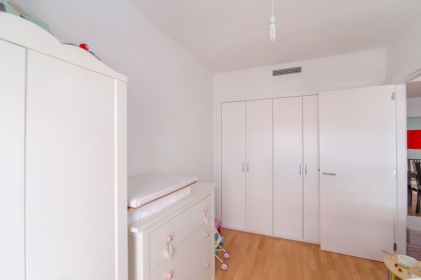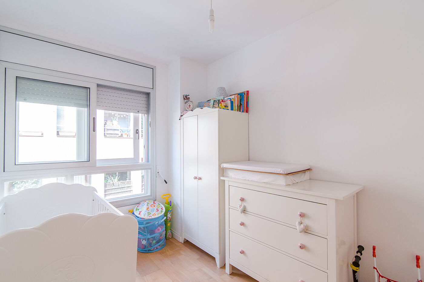Located in Sarrià we find this apartment of 97m2 with three bedrooms and two bathrooms, one en suite and fitted wardrobes. The large living- dining room has panoramic windows overlooking the street. The wide office kitchen comes fully equipped with quality appliances. The apartment is located in a modern building of new construction. The price includes a parking space in the same building and a shared storage room. Two minute walking from Santa Amelia Park and French school. Quiet area very well connected with public transport.