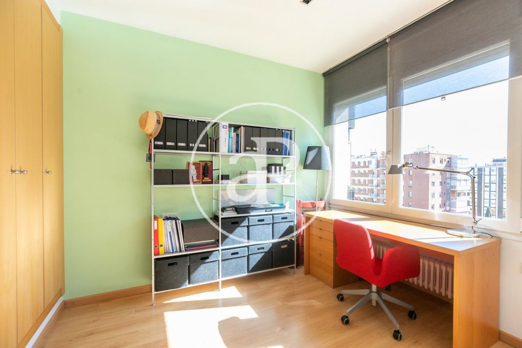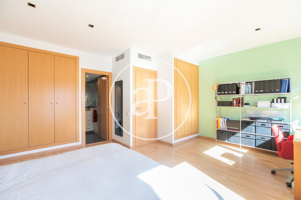 They can be converted into three bedrooms. There would be two single rooms and one suite. All of them have built-in wardrobes, facing south and very bright. The house has park floors, air conditioning, high-end aluminum insulation. The property has a concierge service.