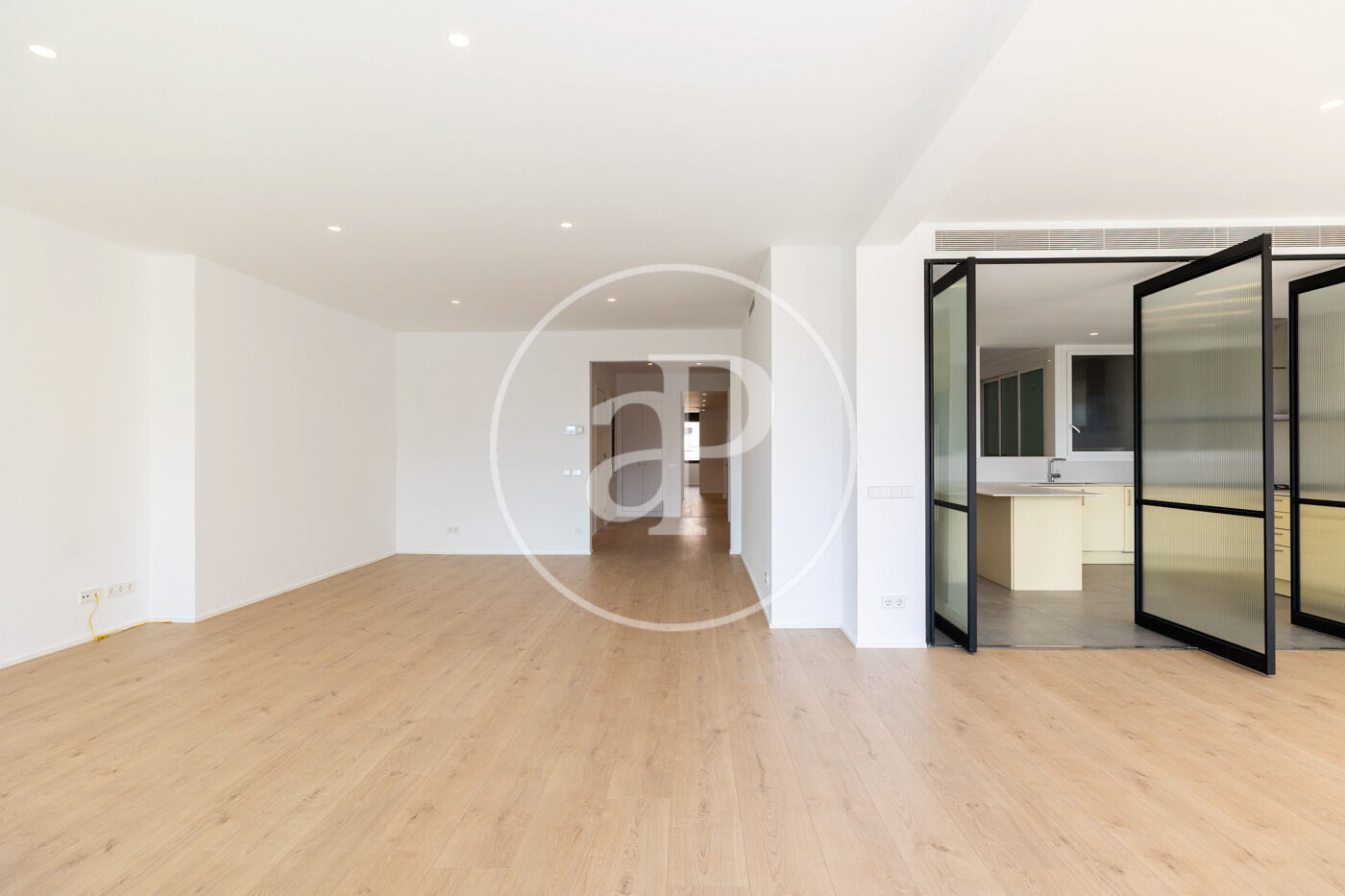 aProperties Real Estate presents this exclusive newly built ground-floor apartment, finished to the highest standards to ensure maximum comfort and quality of living. This is a bright exterior property, benefiting from abundant natural light, located in the Volpelleres area. Set in a high-end building with only six residents, completed in 2026, the property features a communal area with a swimming pool, perfect for enjoying without leaving home. Located in a მშვიდ and family-friendly environment, it is very well connected to essential services such as schools, supermarkets, FGC public transport, restaurants, and offers quick access to major road networks (Vallvidrera tunnels and C-58/AP-7 highways). Upon entering the property, a welcoming entrance hall clearly separates the day and night areas. From here, you access the heart of the home: a spacious, fully exterior living-dining room filled with natural light thanks to its large windows. From this space, there is direct access to a spectacular 194 m² terrace, one of the standout features of the property, ideal for outdoor dining and relaxing with family. The open-plan kitchen, featuring a central island, integrates seamlessly with the living area, creating a modern and functional space. The kitchen also provides direct access to the terrace. From the hallway, you reach the night area, which comprises three exterior bedrooms. The master bedroom is an en-suite with built-in wardrobes and a full bathroom with a walk-in shower, also offering direct access to the terrace. This area also includes a second full bathroom with a shower and access via stairs to the private parking located in the basement, with space for a large car and several motorcycles. The laundry area is also located on this level. The property features high-quality finishes, including parquet flooring. It is equipped with ducted aerothermal climate control (heating and cooling), electric blinds, and aluminum windows with double glazing, ensuring excellent thermal and acoustic insulation. Do not miss the opportunity to visit this wonderful property, perfect for enjoying family life.