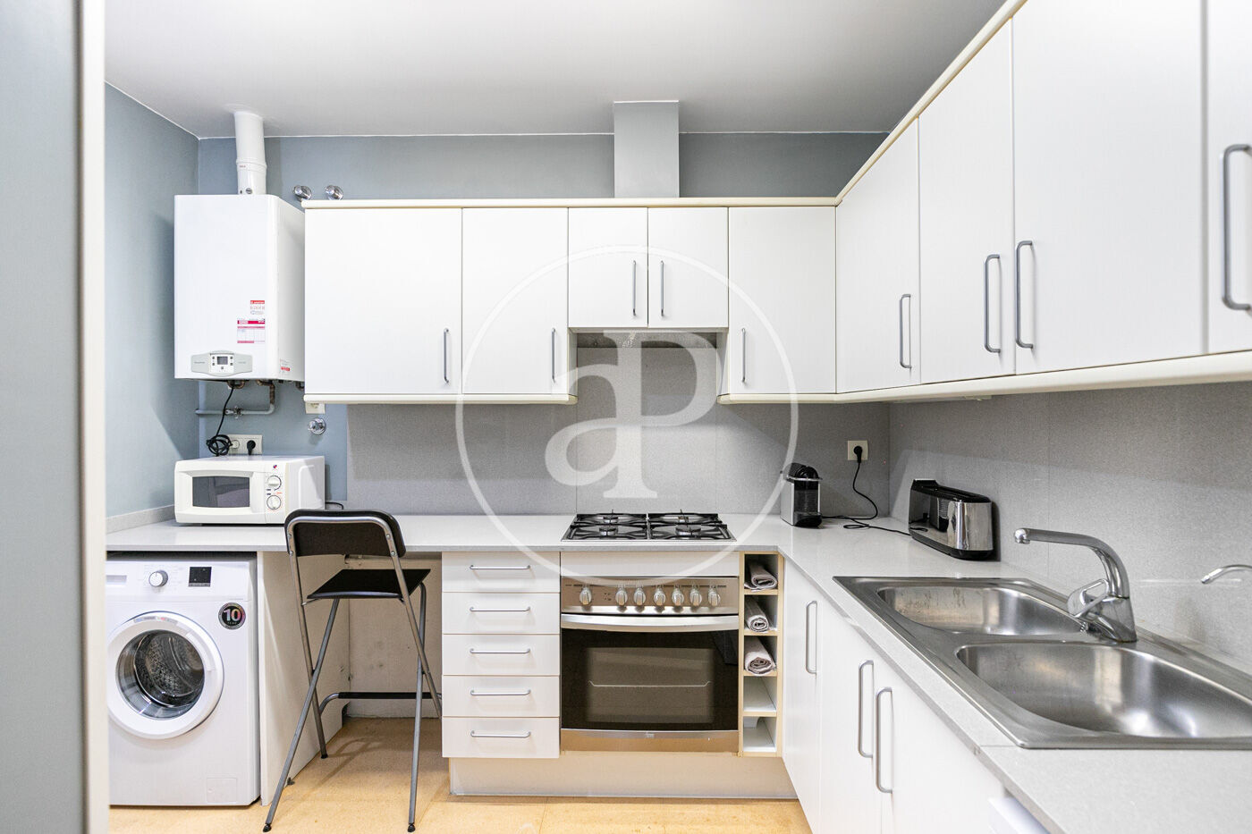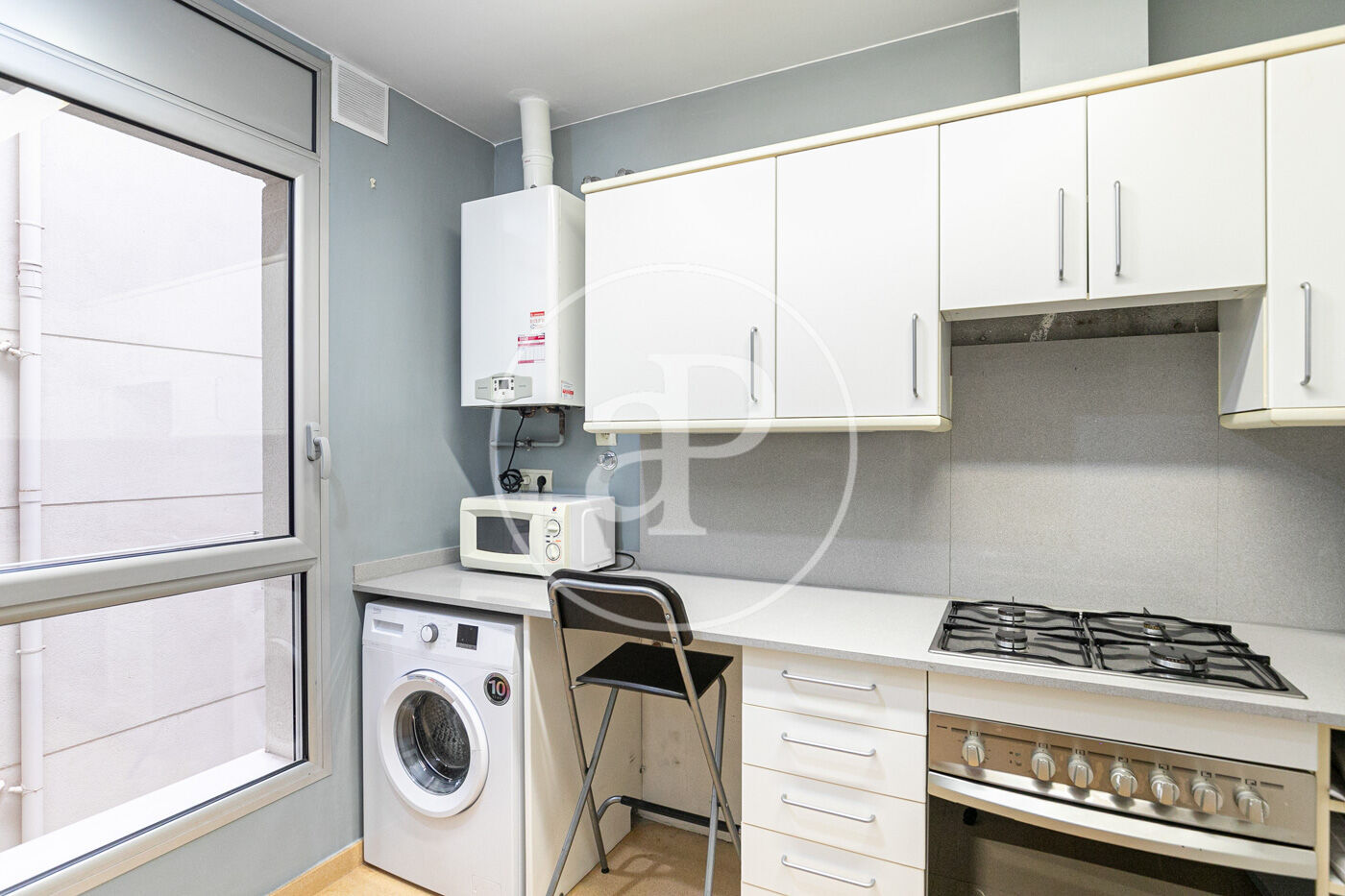 At Aproperties, we are pleased to present this magnificent flat located in the city centre of Sant Cugat, right next to the Ferrocarrils train station. This is a privileged location in the very heart of the city, offering all kinds of services: shops, restaurants, supermarkets, bakeries, and pharmacies, among others. The property, with 81 sqm built according to the land registry, is situated on the fifth floor with south-west orientation, which provides great natural light to all rooms. It enjoys frontal views of Collserola and side views of the golf course. Upon entering the property, we find the entrance hall that leads to a spacious single bedroom, ideal as a guest room, office, or study area. The kitchen, fully equipped with oven, extractor hood and stovetop — all recently renovated — also hasdirect access to a practical laundry area, which includes a washing machine in the sale price. The day area is completed with a full bathroom with shower and a bright living–dining room with direct access to a pleasant terrace. In the night area, we find the master bedroom and another single bedroom, both with built-in wardrobes. The flat has a reinforced entrance door, alarm system, stoneware flooring and aluminium window frames. The kitchen is fully equipped with ceramic hob, oven, and extractor hood. It features natural gas radiator heating. There is the possibility of renting a parking space in the same building. Unbeatable location! Don’t miss the opportunity to visit it.