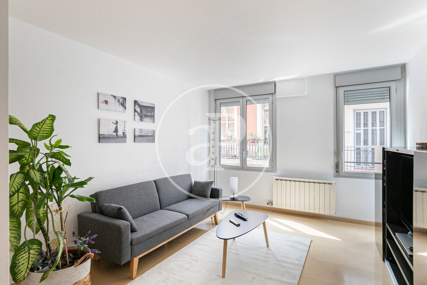 The flat is ready to move into and in very good condition. It is distributed into two double bedrooms with built-in wardrobes. One faces the main street and the other the inner courtyard of the building—both with natural light. The kitchen is independent and fully equipped. The spacious living-dining room features large windows. A full bathroom with a bathtub serves both bedrooms.