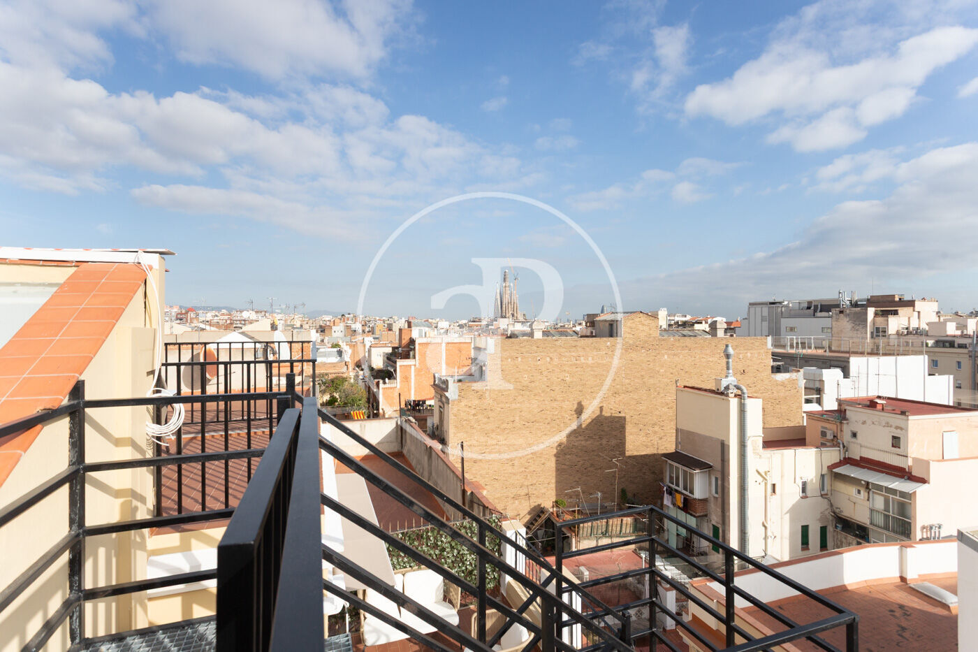The building offers concierge service, a communal gym, and a rooftop terrace with a sauna, from which you can enjoy magnificent views of the Sagrada Família and Tibidabo.