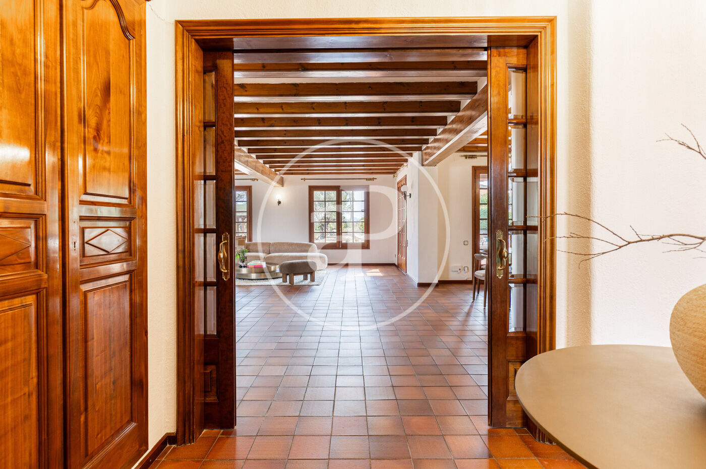 aProperties is delighted to present this elegant and distinguished residence, built with noble materials and full of character. The property offers 680 m² of built area on a flat 2,538 m² plot. Notable features include its 263 m² on the main floor, allowing for easy single-level living; an impressive 90 m² living and dining room; an additional night area on the upper floor with views of Mount Tibidabo; a beautiful and spacious garden with swimming pool; and a covered garage for 5 or more cars, complemented by a large exterior parking area for guests.