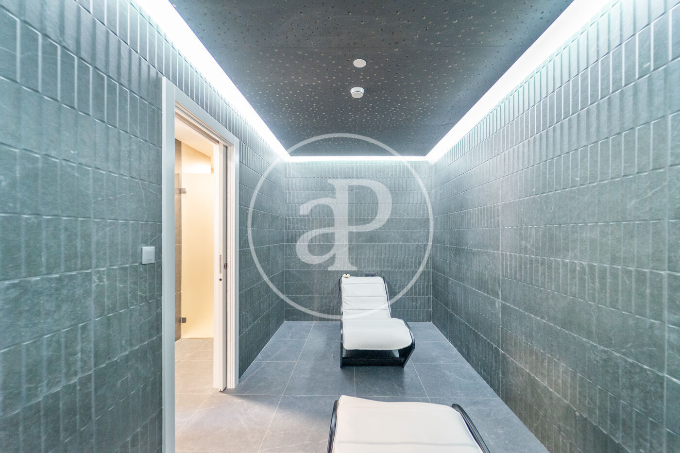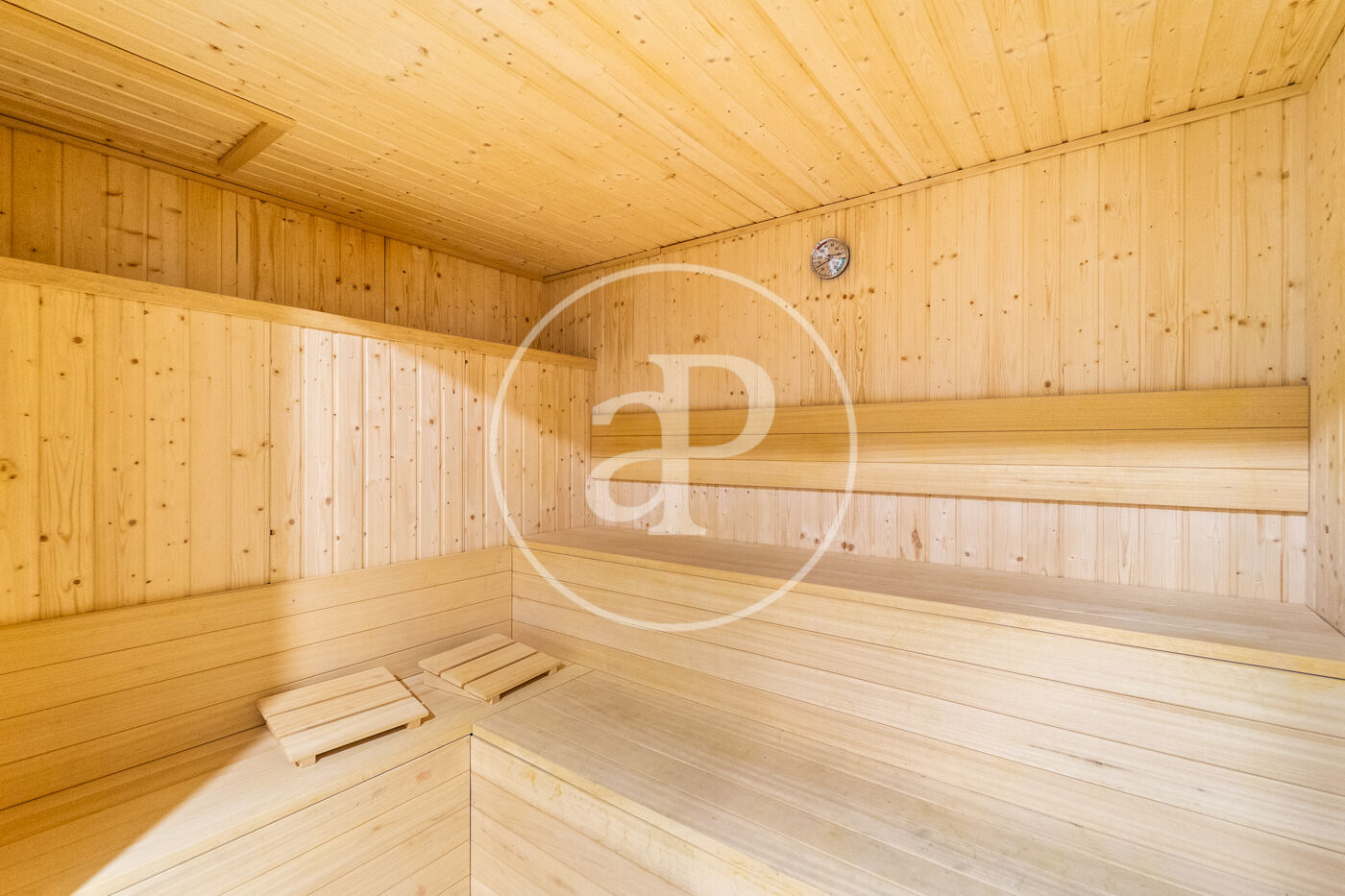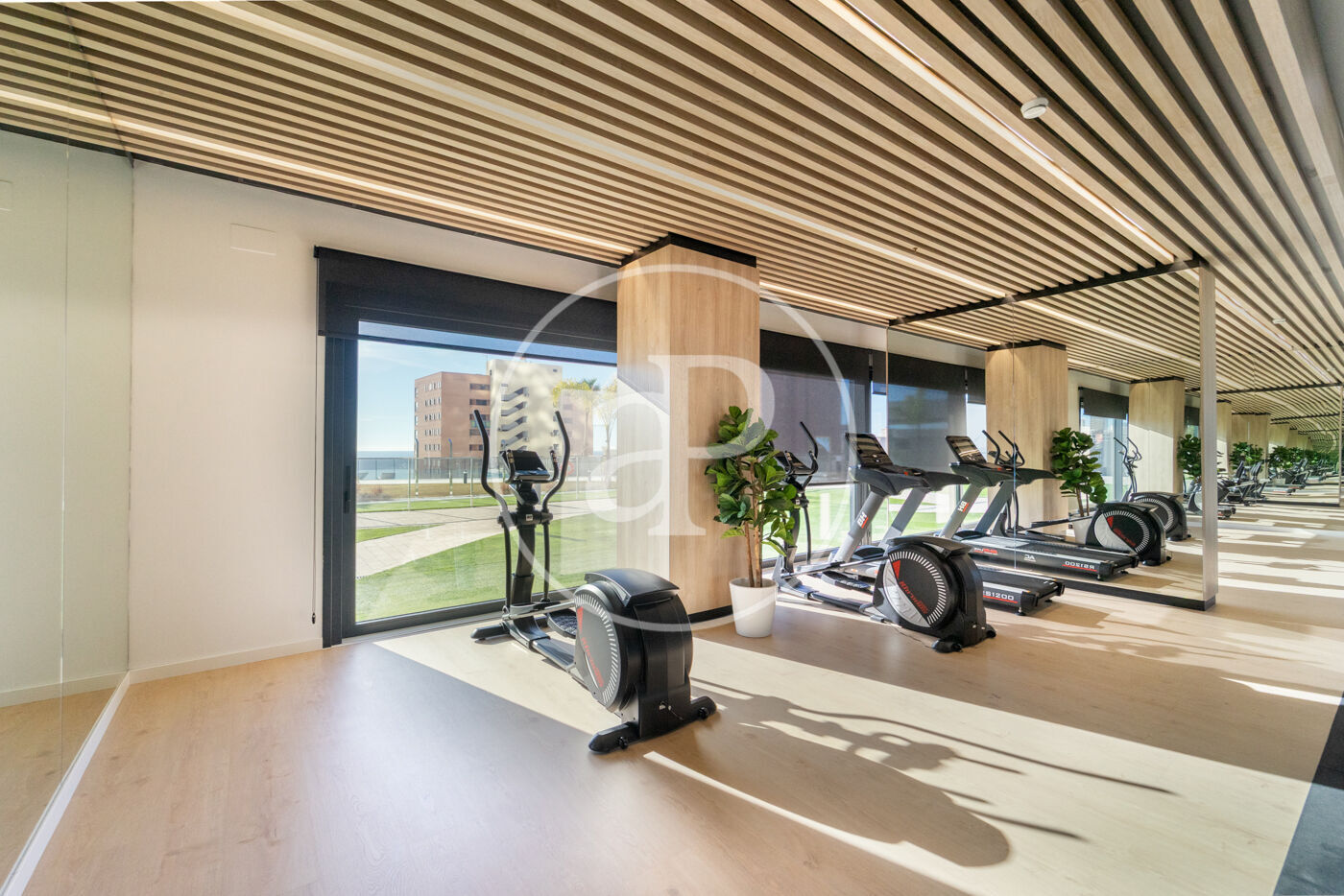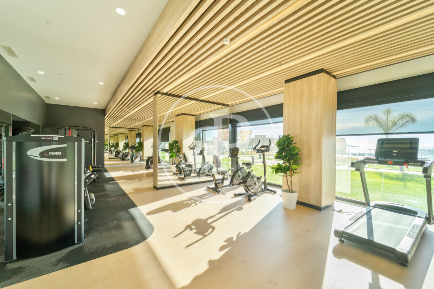 The property has 2 bedrooms, 2 bathrooms, swimming pool, gymnasium, 1 parking space, air conditioning, fitted wardrobes, laundry room, balcony, garden, heating, concierge and storage room.