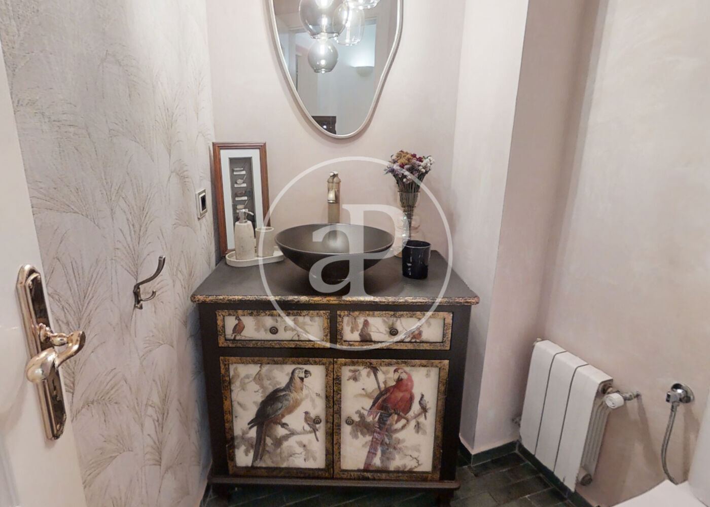 It is built on one floor. High ceilings, and very spacious rooms. It has four bedrooms, three of which have en suite bathrooms. A fully equipped kitchen with all high end appliances and storage and work areas. The living room leads to the terraces and a cozy garden with swimming pool. Ideal to spend the evenings alone or in company.