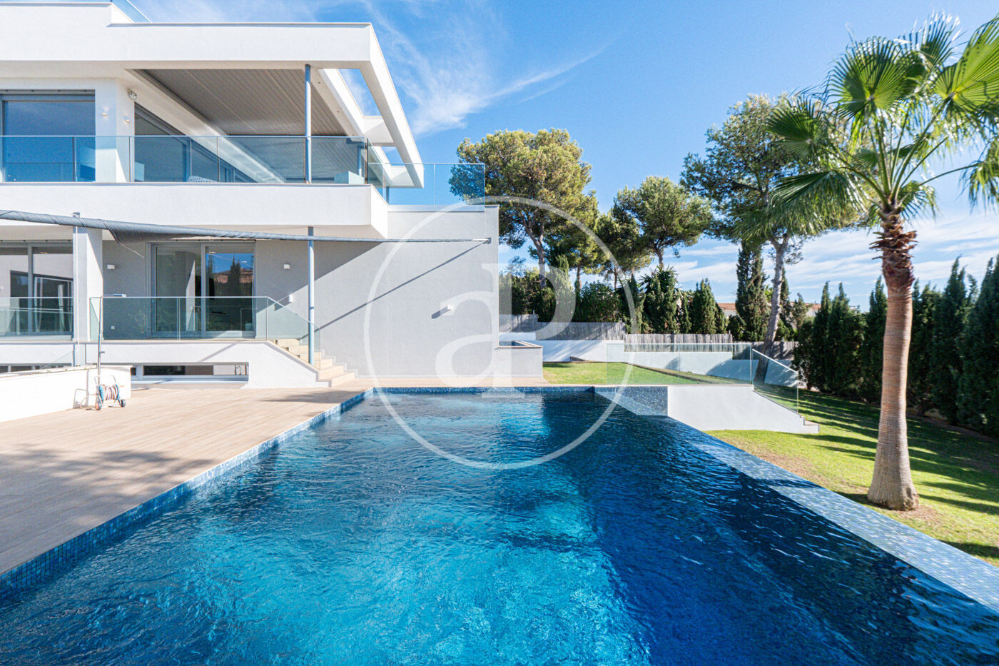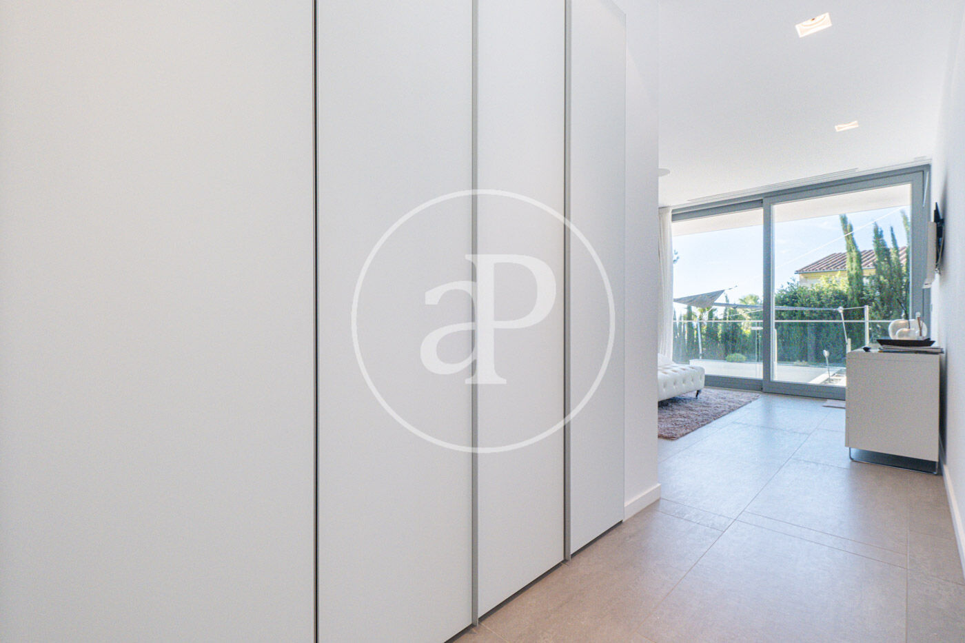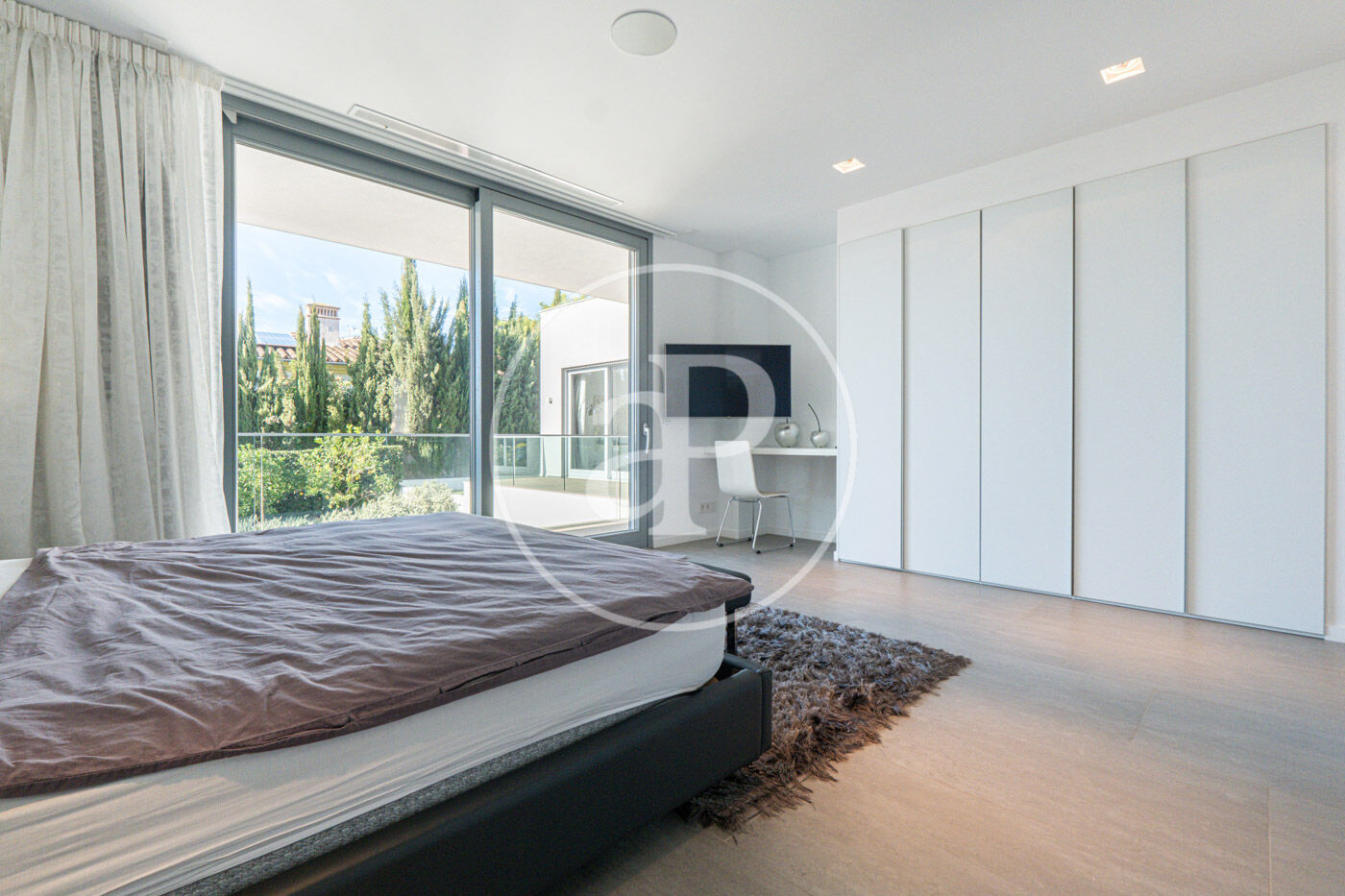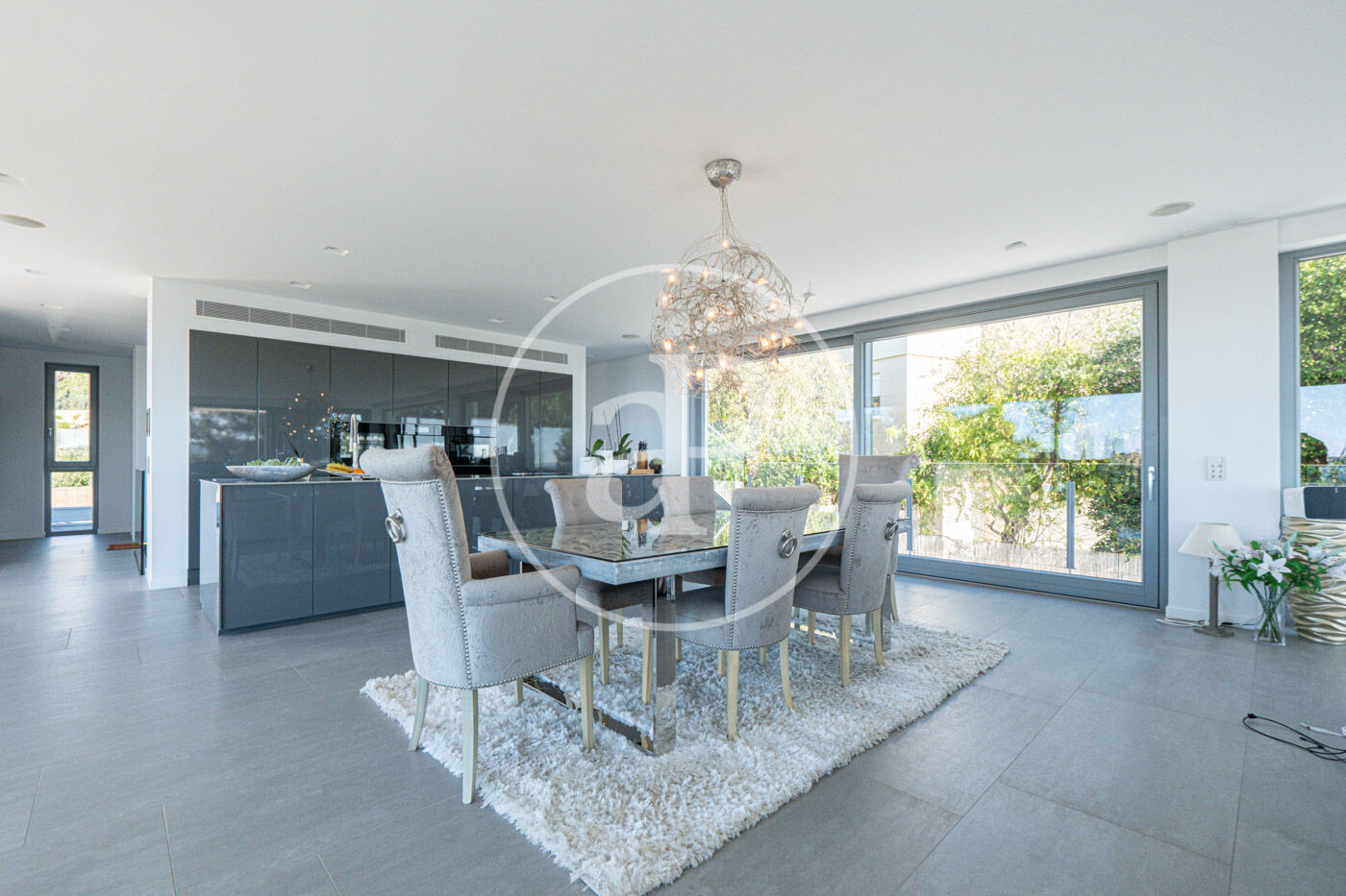 On a plot of 1294m2 with a net living area of 777 m² composed of a semi-basement floor, ground floor and first floor, connected to each other by means of an internal staircase and elevator. The semi-basement floor has a closed constructed area of approximately 290m2, and is intended for a garage with capacity for 5 vehicles, space reserved for the machine room of the housing facilities, the treatment plant room and distributor with the staircase and elevator. Gym with sauna.