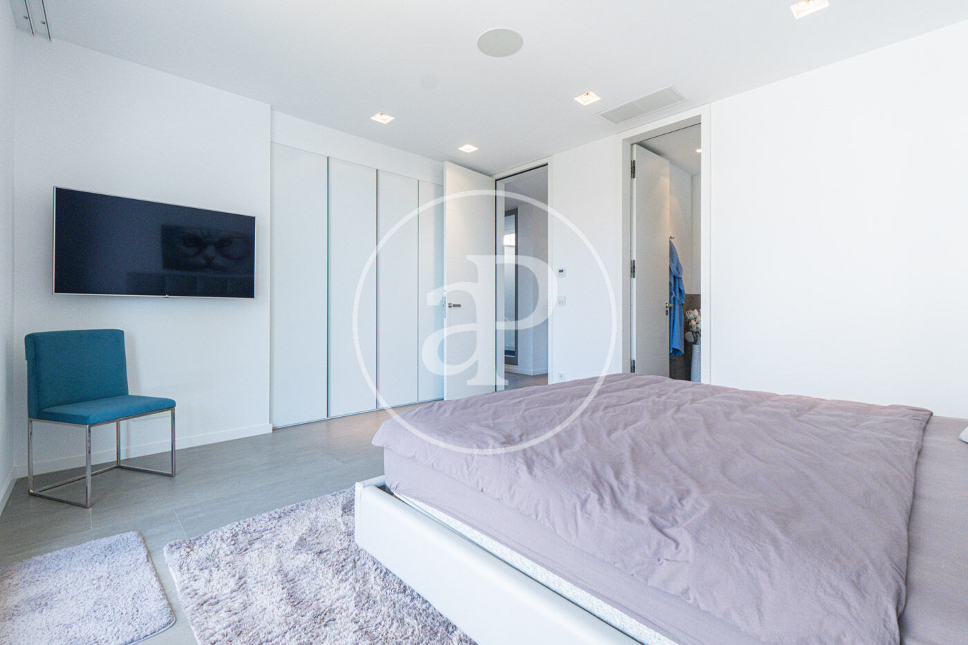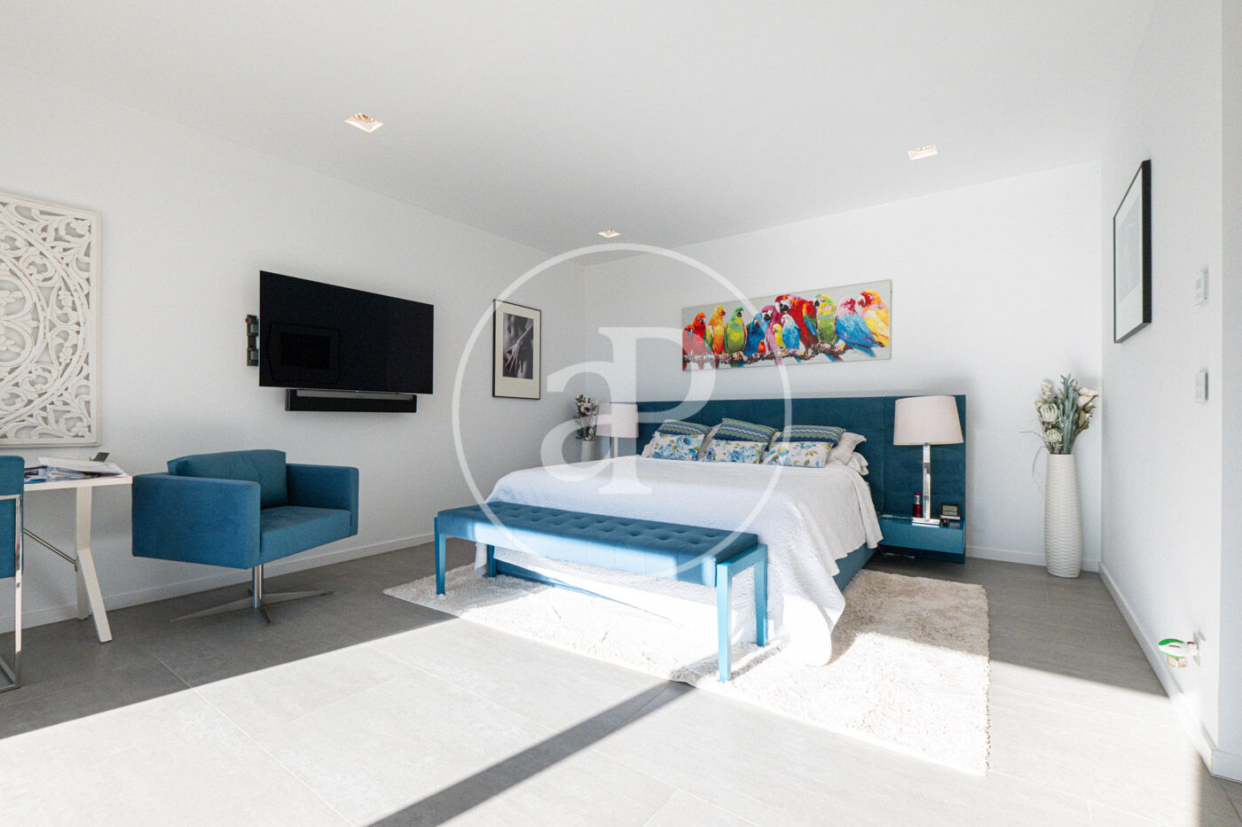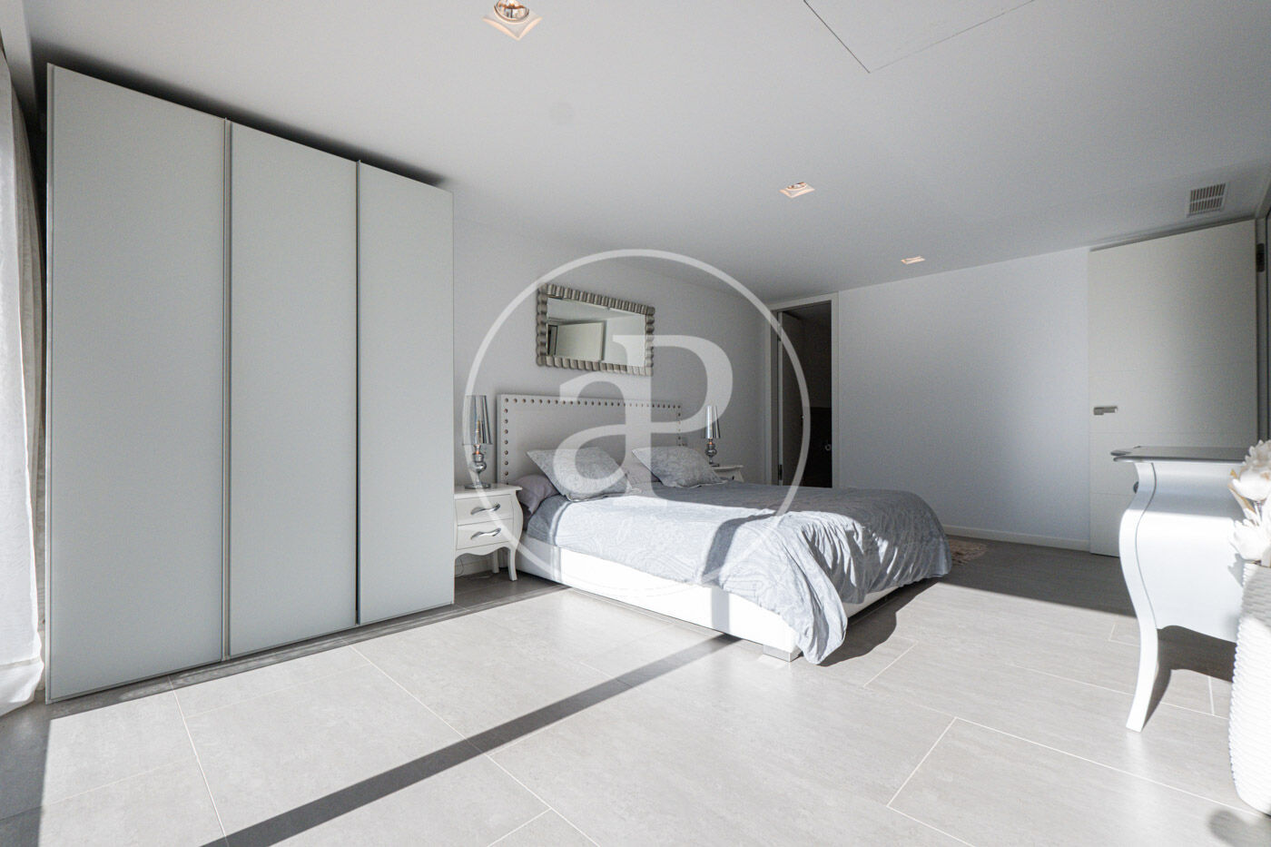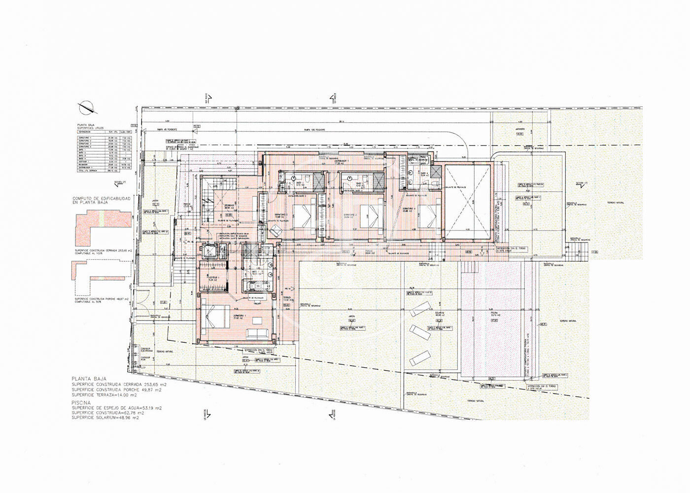 On a plot of 1294m2 with a net living area of 777 m² composed of a semi-basement floor, ground floor and first floor, connected to each other by means of an internal staircase and elevator. The semi-basement floor has a closed constructed area of approximately 290m2, and is intended for a garage with capacity for 5 vehicles, space reserved for the machine room of the housing facilities, the treatment plant room and distributor with the staircase and elevator. Gym with sauna.