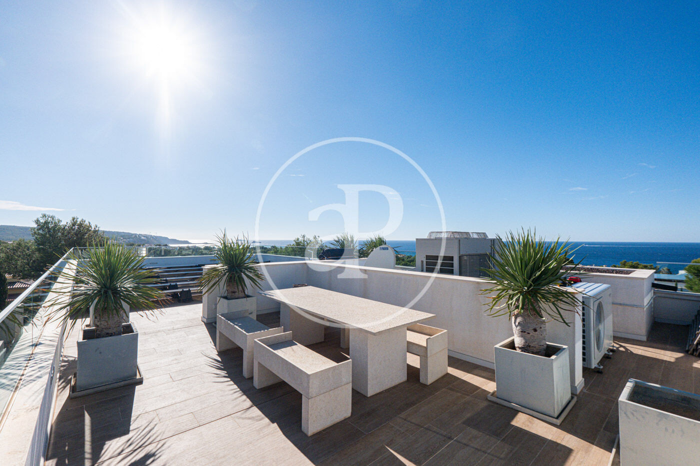 Attention lovers of luxury and exclusivity! We present a modern designer villa with sea views and two impressive swimming pools. This south-facing residence is an architectural jewel that unfolds over four splendid floors to offer you an unparalleled living experience.