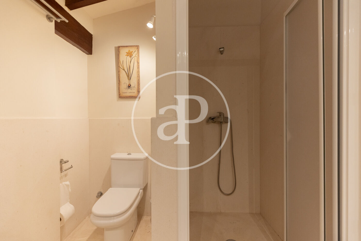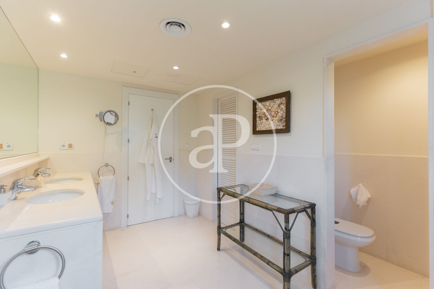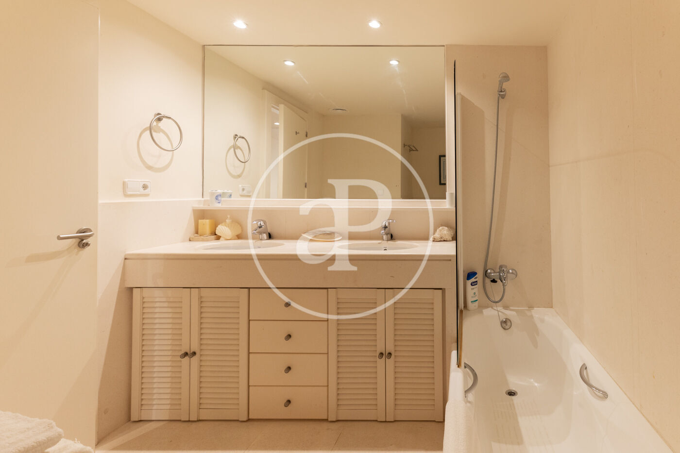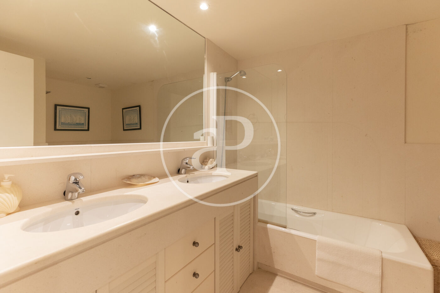 On the iconic Rambla Catalunya, we find this fully renovated apartment with top-quality finishes and a surface area of 227 m², distributed into 4 bedrooms, 3 bathrooms, and 1 guest toilet. One of the bedrooms is a master suite with six-meter balconies overlooking a quiet and sunny courtyard, and two suites with large windows and balconies. The other two double bedrooms are interior. The bedrooms feature built-in wardrobes. The day and night areas are clearly separated by a spacious entrance hall with built-in wardrobes and a hallway typical of Eixample apartments. In the day area, we find a large common space that includes a kitchen and dining area combined into a generous open layout, separated by a large marble island, and a second living area with two balconies overlooking Rambla Catalunya and a fireplace. The kitchen is fully equipped with integrated high-end Miele appliances and ample storage space. All bathrooms are by Porcelanosa, timeless and stylish. The renovation preserved the original hydraulic tile floors and the handcrafted ceilings. The property features air conditioning (hot/cold), solar panels (on the rooftop), and a laundry room. The building is in perfect condition, being one of the most beautiful on Rambla Catalunya, and includes concierge service and an elevator. If you are looking for a move-in ready home with style and functionality in one of the most emblematic areas of Barcelona, don’t miss this property.