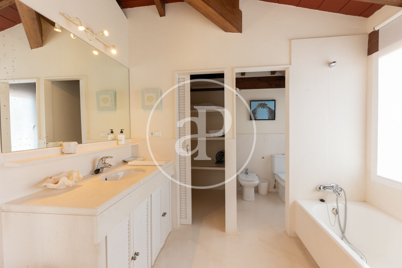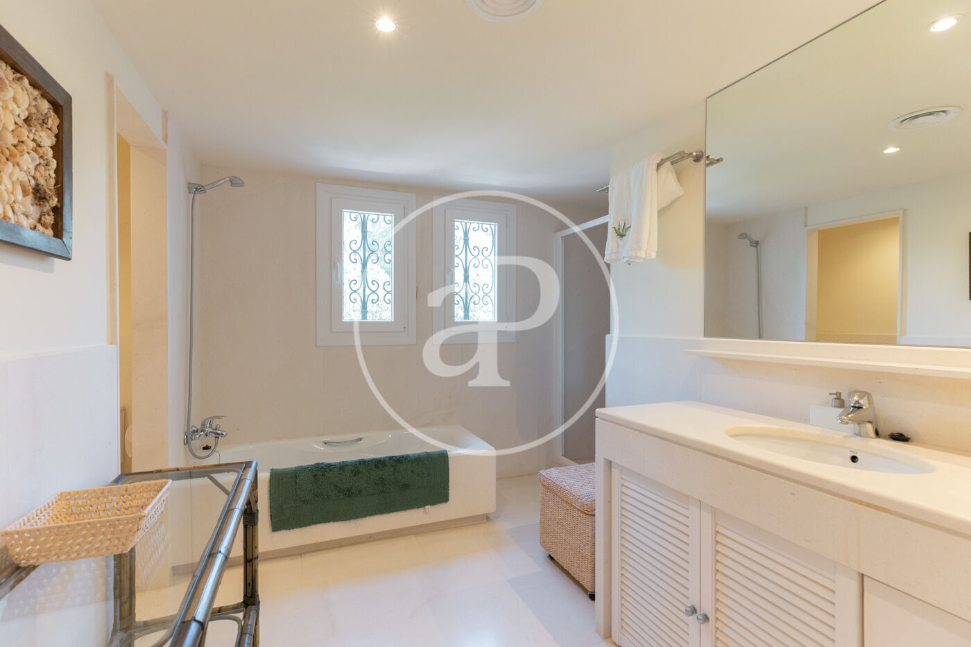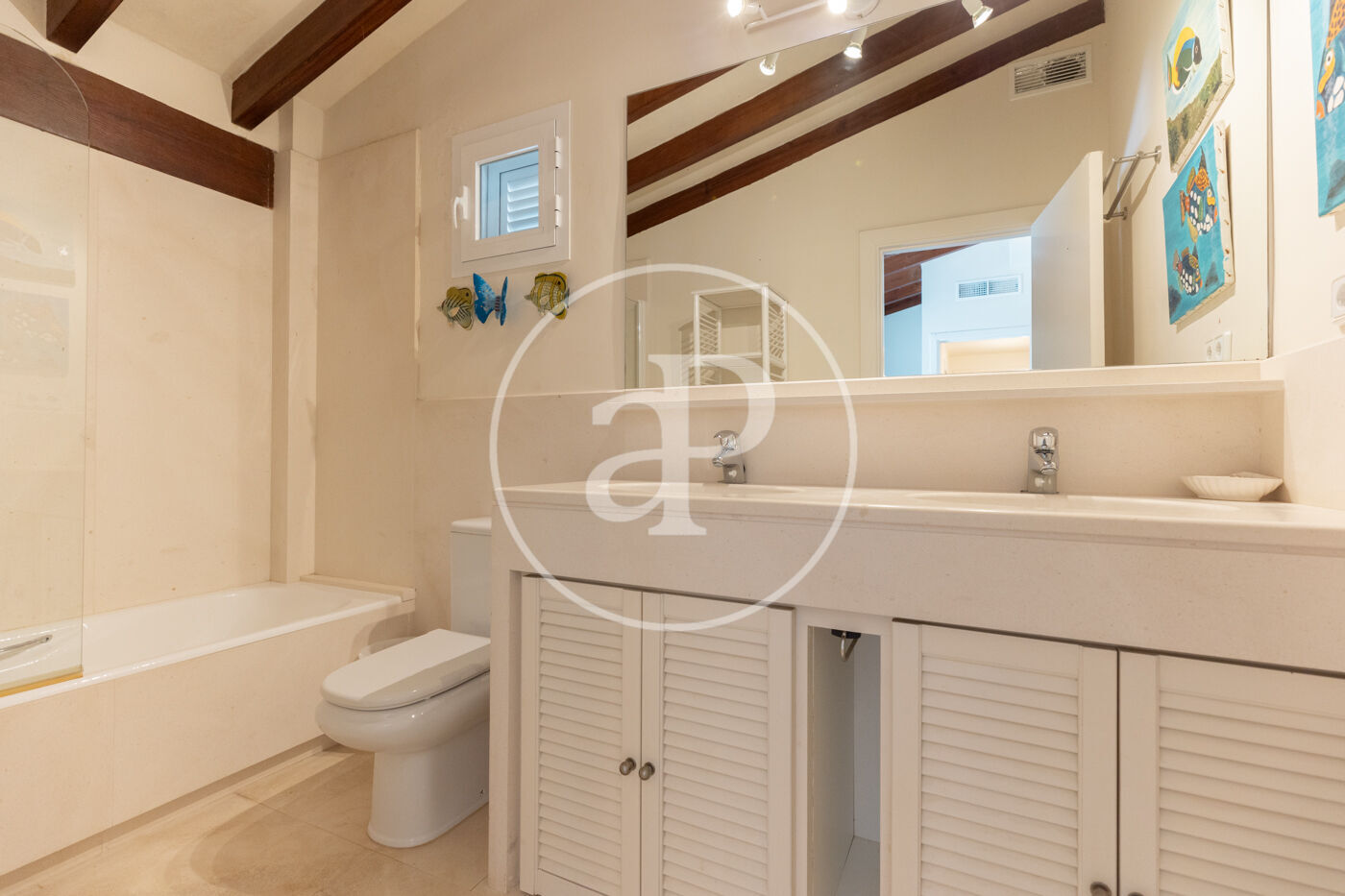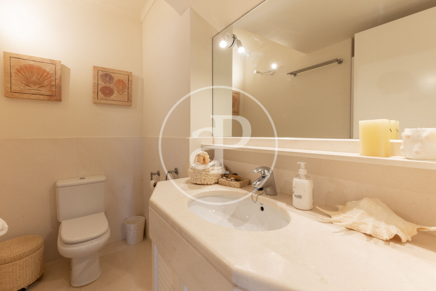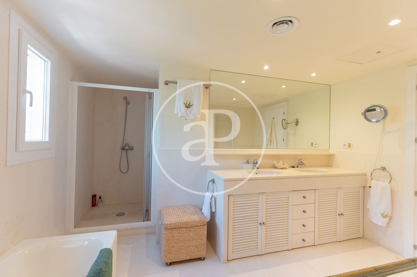 On the iconic Rambla Catalunya, we find this fully renovated apartment with top-quality finishes and a surface area of 227 m², distributed into 4 bedrooms, 3 bathrooms, and 1 guest toilet. One of the bedrooms is a master suite with six-meter balconies overlooking a quiet and sunny courtyard, and two suites with large windows and balconies. The other two double bedrooms are interior. The bedrooms feature built-in wardrobes. The day and night areas are clearly separated by a spacious entrance hall with built-in wardrobes and a hallway typical of Eixample apartments. In the day area, we find a large common space that includes a kitchen and dining area combined into a generous open layout, separated by a large marble island, and a second living area with two balconies overlooking Rambla Catalunya and a fireplace. The kitchen is fully equipped with integrated high-end Miele appliances and ample storage space. All bathrooms are by Porcelanosa, timeless and stylish. The renovation preserved the original hydraulic tile floors and the handcrafted ceilings. The property features air conditioning (hot/cold), solar panels (on the rooftop), and a laundry room. The building is in perfect condition, being one of the most beautiful on Rambla Catalunya, and includes concierge service and an elevator. If you are looking for a move-in ready home with style and functionality in one of the most emblematic areas of Barcelona, don’t miss this property.