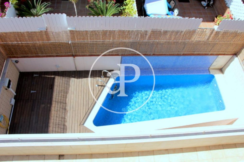 The exterior spaces offer us terraces and a private swimming pool. It has two private parking spaces and direct access from the elevator (maintenance costs are 60€ per month)