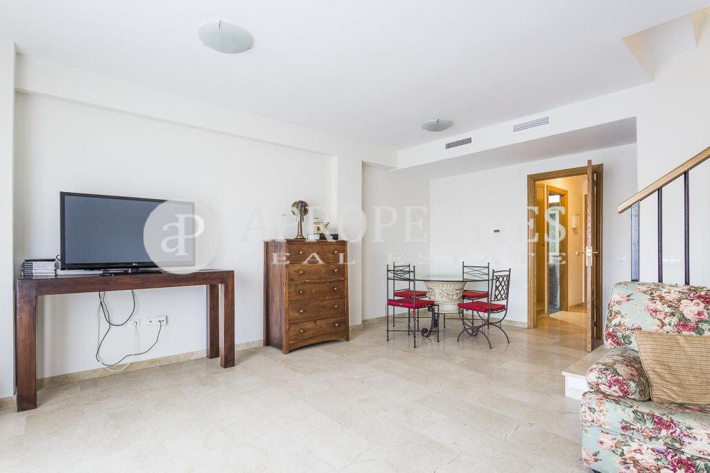 Ground floor totally diaphanous with living room of thirty and five square meters, overlooking the golf course, kitchen with bar and bathroom both designed. It also has two terraces, one of thirty mt2 at the entrance, next to the pool and another with access from the living room overlooking the golf.