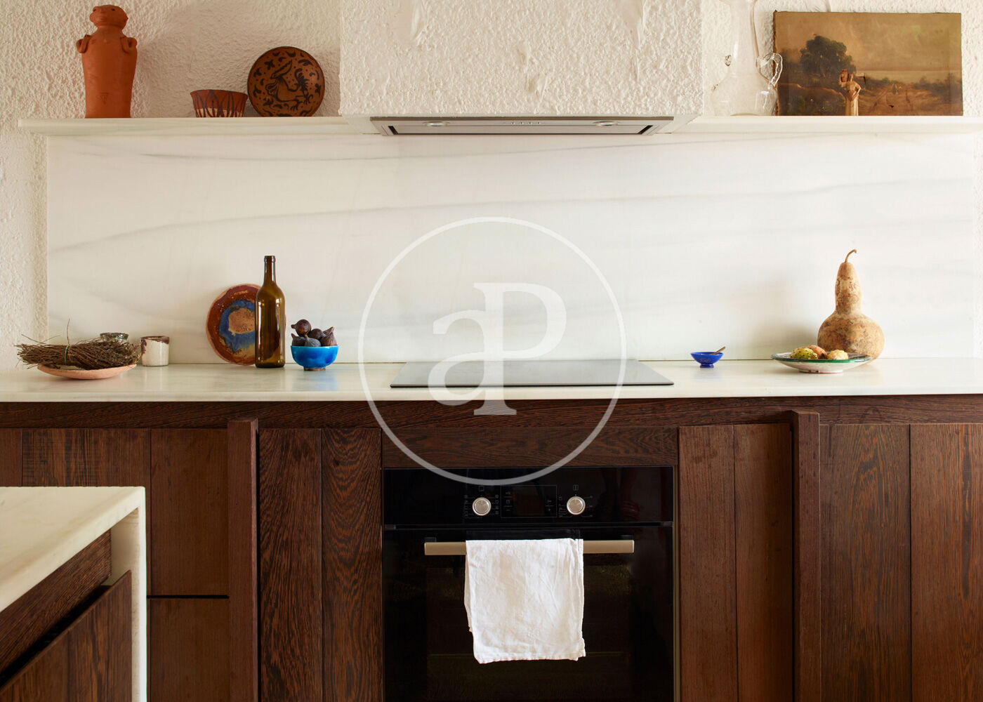 A true haven of peace and attention to detail, this apartment features a double bedroom with dressing room and full bathroom, a fully equipped kitchen, and a living-dining room with built-in furniture. All spaces are unified by polished concrete flooring, while the kitchen and living-dining areas are separated by a magnificent island. This same space also includes a fireplace and access to the terrace.