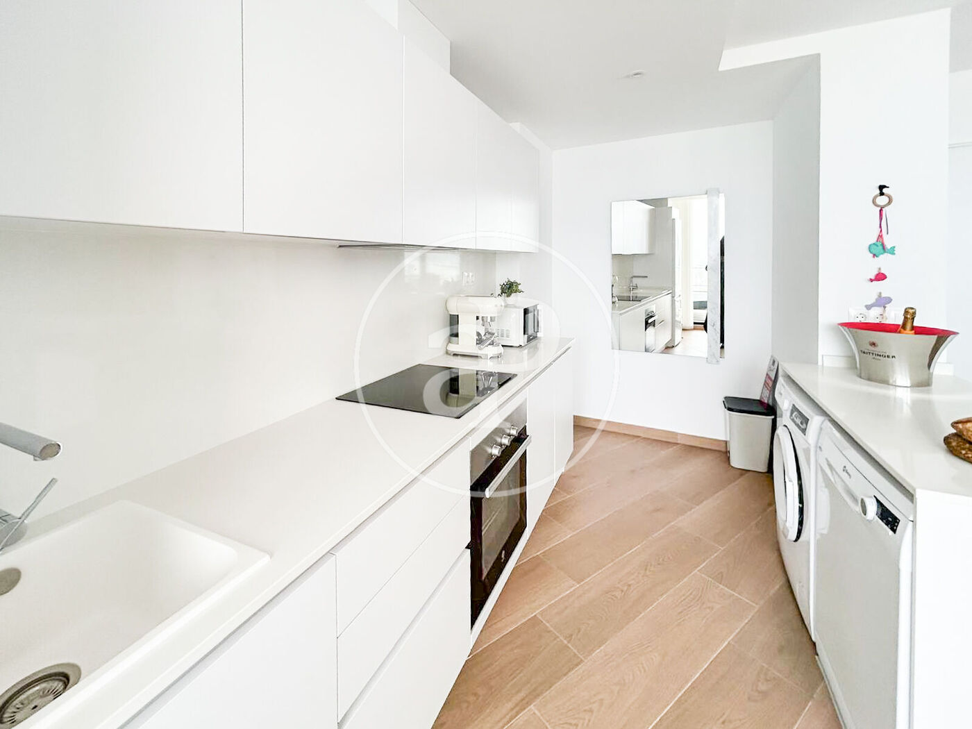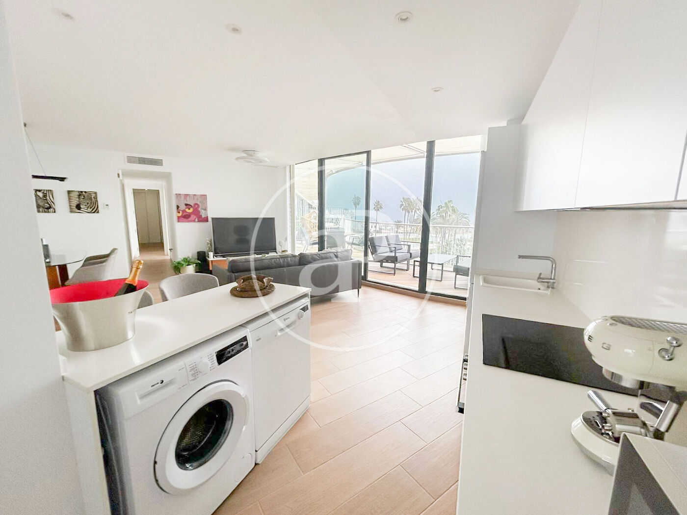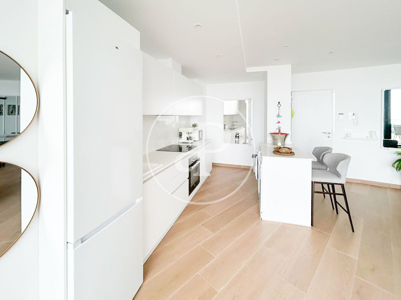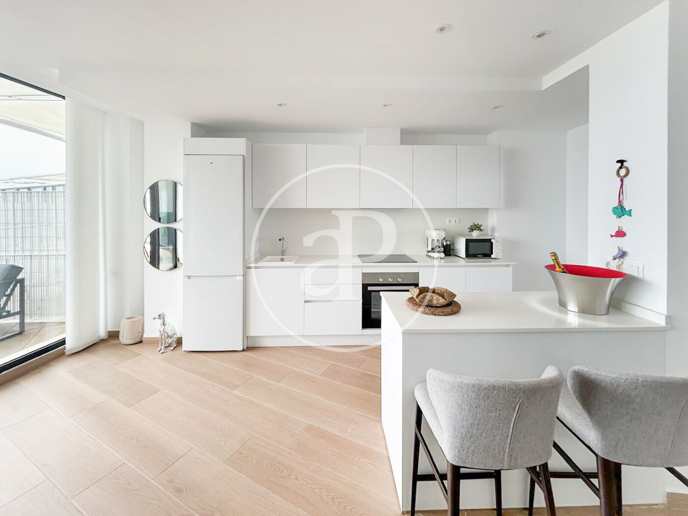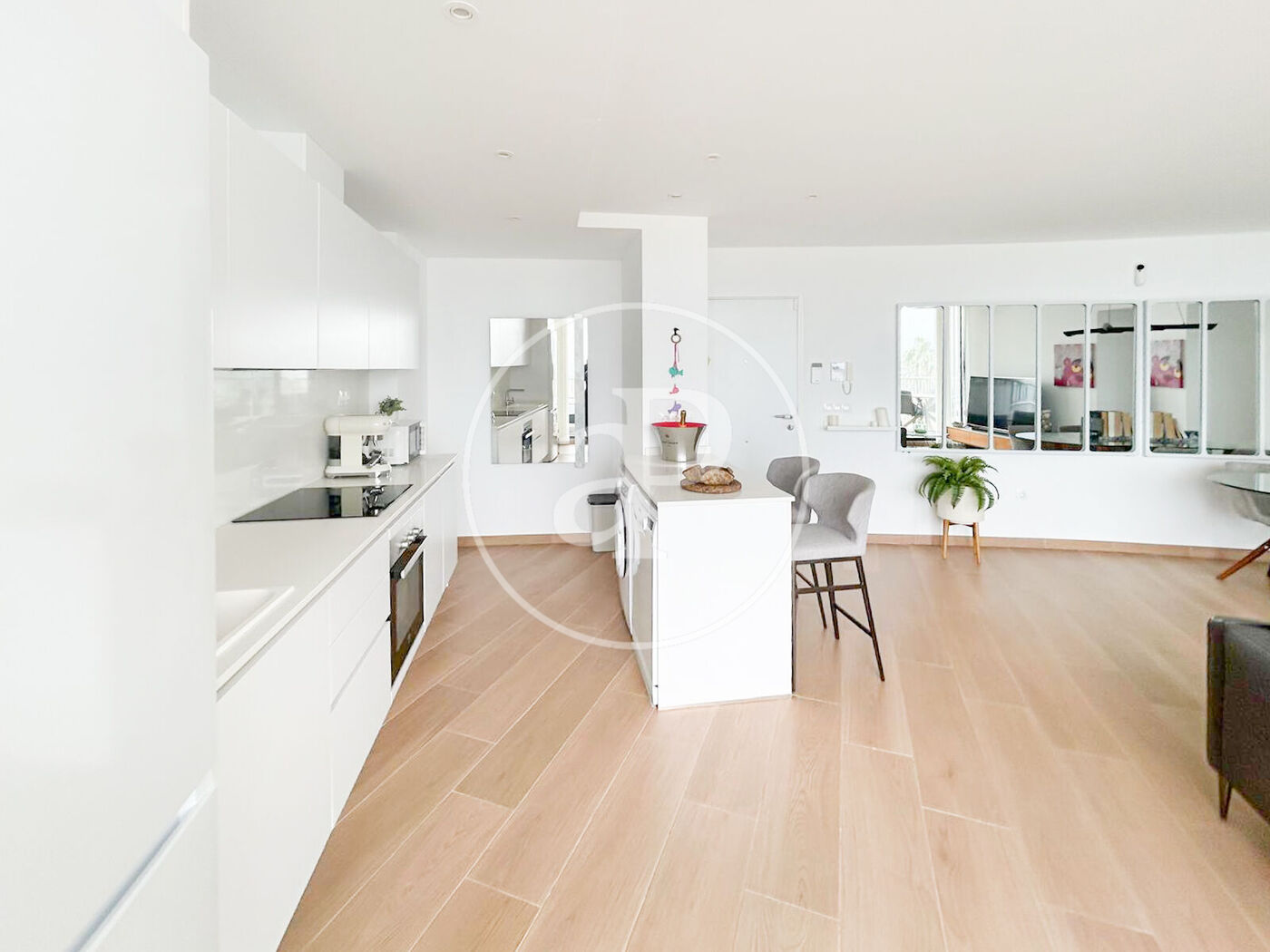 Open-plan kitchen connected to the living room, modern and functional