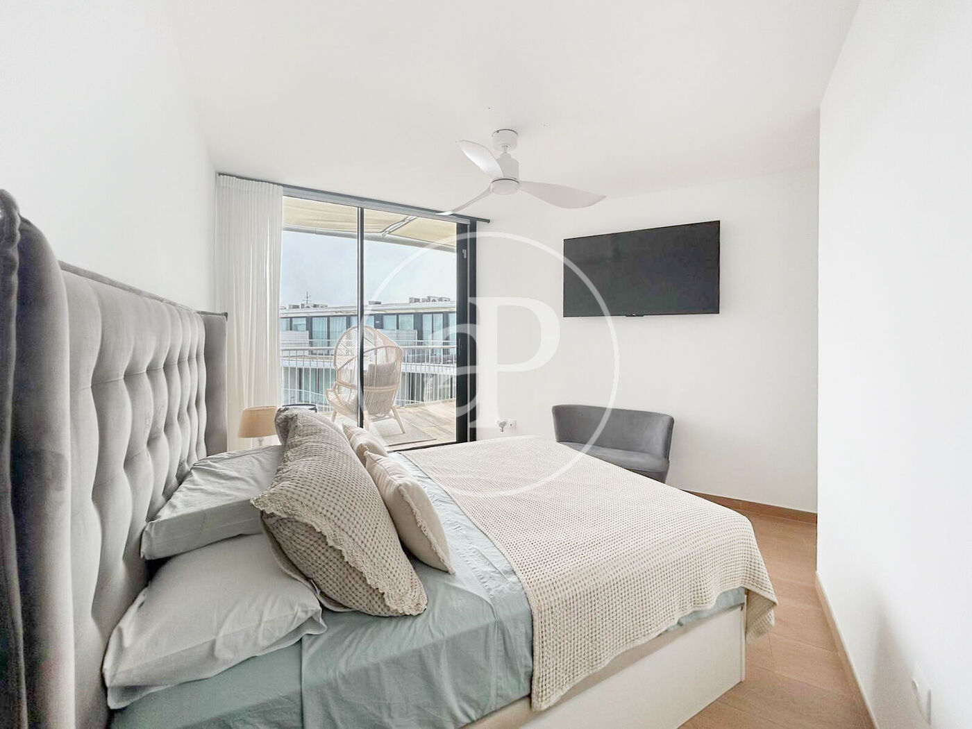 This stunning third-floor penthouse with elevator stands out for its large floor-to-ceiling windows, flooding every room with natural light and offering open panoramic views of the Mediterranean Sea. All bedrooms face the sea, turning every sunrise into a unique experience.
