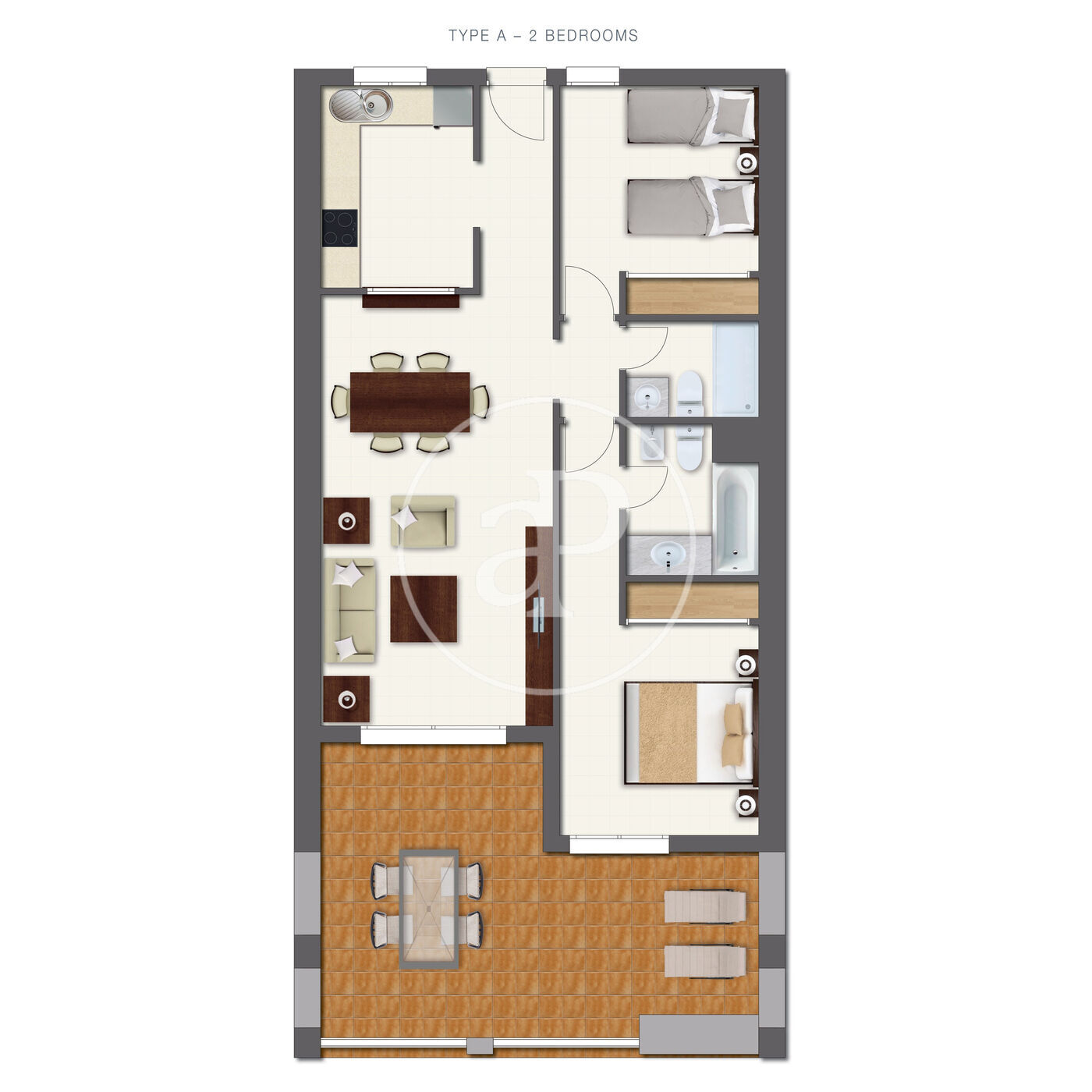 TypeUnitSurfaceTerraceBedroomsBathroomsPriceStateFloor plansPDF