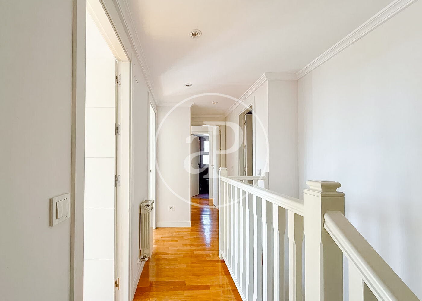 Exclusive house on the front line, with unobstructed views, excellent luminosity, located in one of the most sought-after areas of Madrid. It has 134 m2 built according to the land register and a spectacular terrace of 33 m 2, spacious and almost square floor, ideal for enjoying total privacy and multiple environments.