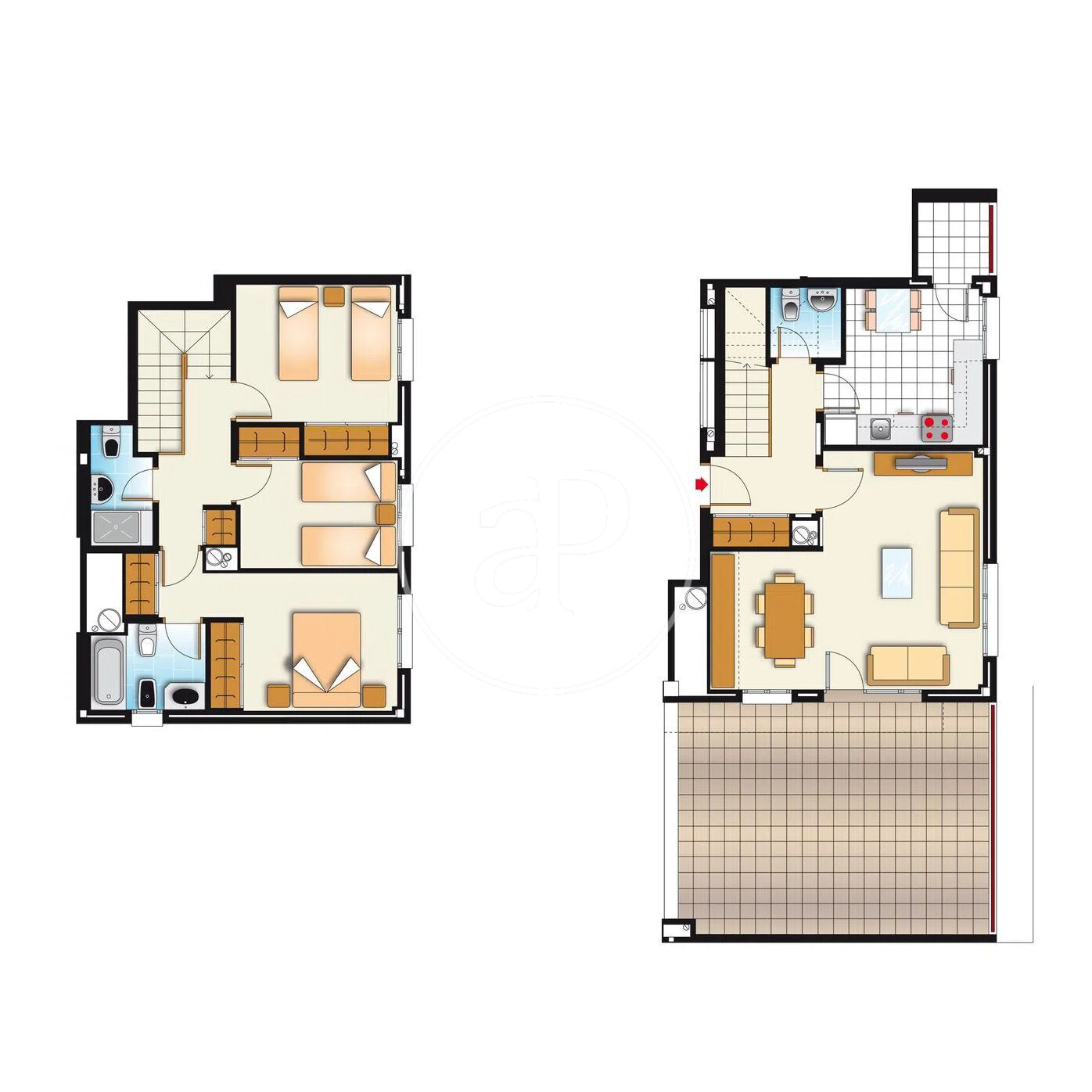 The house is distributed on two floors. On the main floor we find an elegant hall, a spacious living-dining room with direct access to the terrace, a fully equipped independent kitchen with clothesline terrace and a guest toilet. On the upper floor there are three bedrooms, highlighting the master bedroom en suite with full bathroom, as well as a second full bathroom that serves the rest of the rooms.