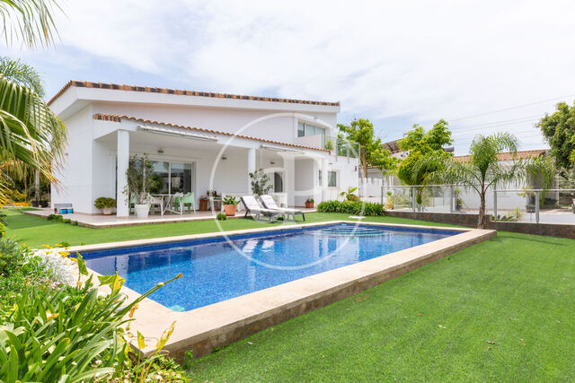 aProperties presents an exclusive luxury villa in the best area of Gandía, where elegance and comfort merge in a privileged setting. With 1,555 m² built, this majestic residence has been designed to offer an unparalleled living experience, surrounded by nature and serenity. The ground floor is divided into two distinct areas: Upon entering the home, through the main entrance hall, an elegant living-dining room unfolds, perfect for enjoying unforgettable moments, with an exquisite billiard table and large windows that flood the space with natural light. The kitchen, with integrated pantry and gallery, combines design and functionality, offering views and direct access to the garden. In addition, this floor houses a refined office with archive, an ideal corner for working or studying in an atmosphere of absolute tranquillity. A guest bathroom adds extra comfort and a cosy bedroom with en-suite bathroom, providing comfort and privacy. Both the living-dining room, the kitchen and the bedroom have direct access to the garden area, allowing a fluid connection between the interior and the exterior. The kitchen, designed for food lovers, has a cosy dining area overlooking the garden, making every meal a unique experience. Garage and storage: There is a large garage with access to the north, with capacity for four vehicles. It also has small installation and storage rooms, designed to serve the garden areas and the swimming pool. The upper floor is the sleeping area, where you will find four spacious bedrooms, each with its own en-suite bathroom and access to a covered terrace, providing an exceptional level of privacy and comfort. The master suite, a true haven of peace, has been designed for maximum relaxation and well-being. In addition, this floor houses a practical laundry area, fully equipped for washing and ironing clothes, ensuring maximum comfort. Auxiliary buildings In addition to the main building, the property has several auxiliary buildings and various facilities that enhance its exclusivity and functionality: Swimming pool: Rectangular in design, measuring 204 m², this impressive pool features an elegant paved peninsula, ideal for rest and relaxation. Facing south, it is strategically attached to the covered porch of the house, offering an idyllic setting to enjoy the sun and fresh air. Tennis court: A perfect space for sports lovers, designed for enjoyment and well-being. Storage area: An additional area that provides a practical space for storing equipment and belongings. A residence that transcends convention Several terraces surround the house, creating the ideal setting for enjoying unforgettable moments in the company of family and friends, whether in the sun or at a barbecue evening. The lush garden, with panoramic views of the swimming pool and the mountains, adds a touch of harmony and exclusivity to the surroundings. More than a home, this villa represents a lifestyle. It is a unique opportunity for those seeking the perfect balance between luxury, comfort and nature.