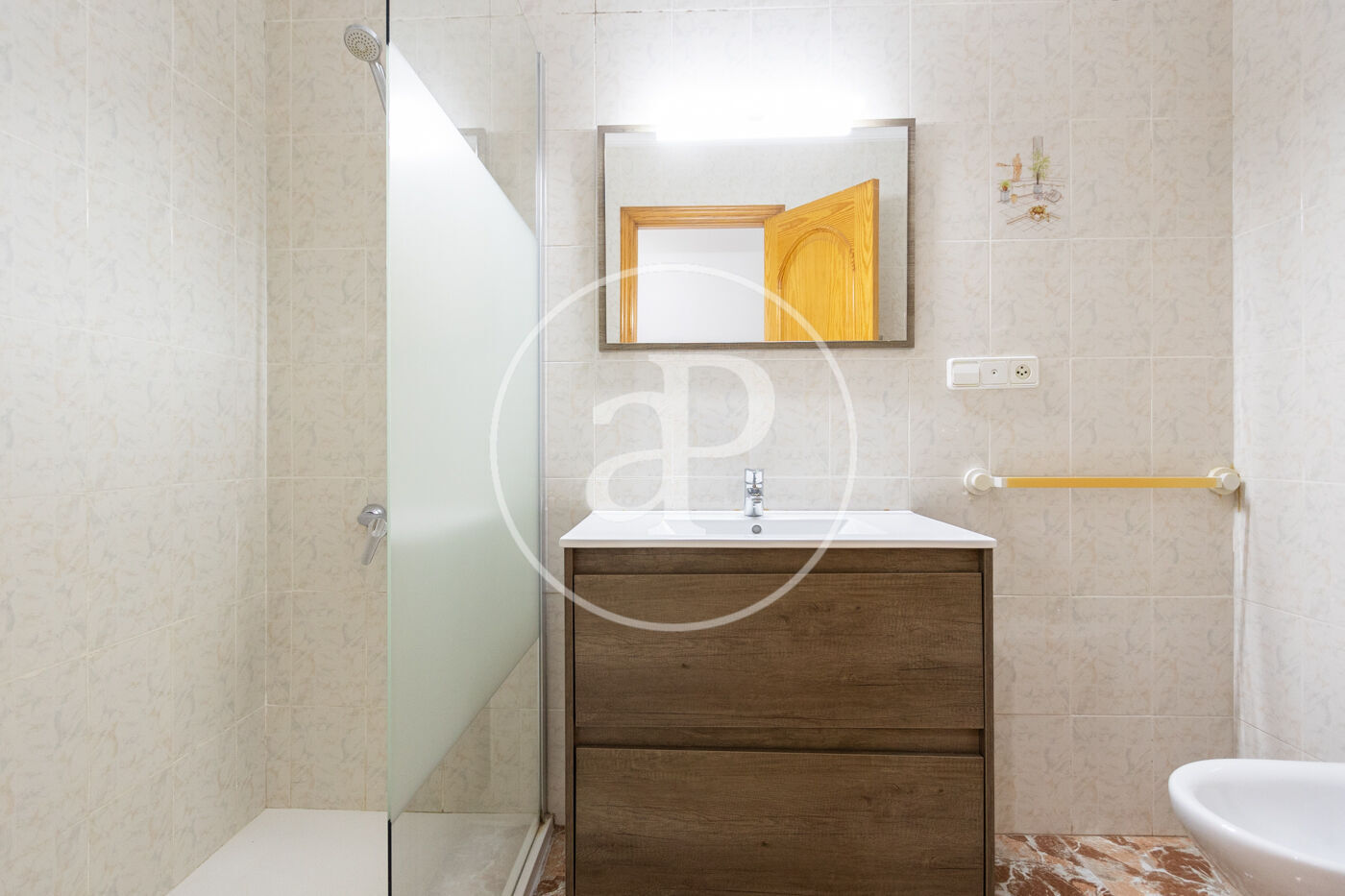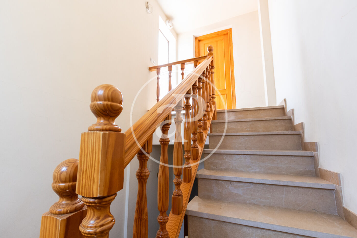 In the quiet urbanization of Bellresguard in Puerto de Pollensa, we find this penthouse of 146 sqm with a solarium with very pleasant views to the green areas of the urbanization. From the entrance door to the property we access a hall where we find a spacious and bright living-dining room with fireplace and access to a terrace of 22 sqm with unobstructed views to the communal areas of the complex. In the same area we find the fitted kitchen with a separate laundry area. Through a spiral staircase we have access to the upper part of the house where we find a space to put a small office and a solarium terrace of 140 sqm ideal to put a barbecue. In the sleeping area there are three exterior double bedrooms with fitted wardrobes and two bathrooms. The master bedroom has an en suite bathroom with bathtub. The property stands out for its great luminosity, it has an outdoor parking space in the same complex and large garden areas with different swimming pools, terraces for sunbathing and several areas with natural shade thanks to its vegetation. Excellent location, only 200 metres from the Illador beach and close to well-known beaches such as the Formentor beach or the beaches of Muro. The expenses of community and IBI are included in the rental price, the rest of the supplies will be paid by the tenant. Can you imagine living here, we are waiting for your call! Translated with DeepL.com (free version)