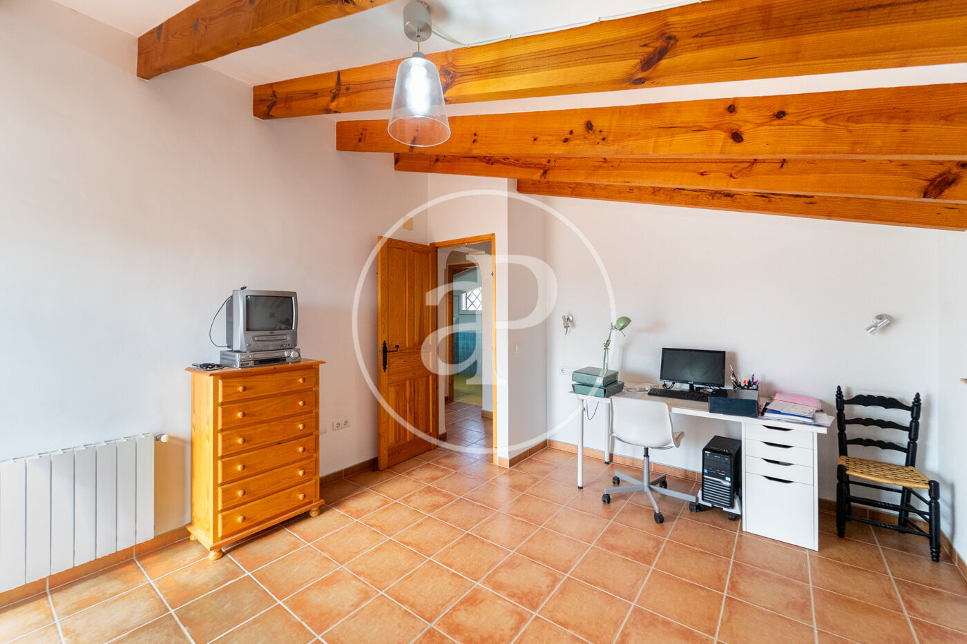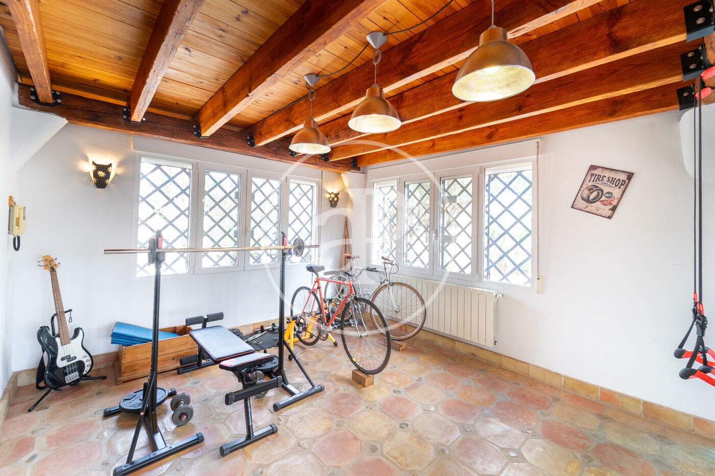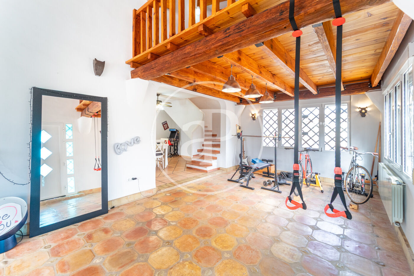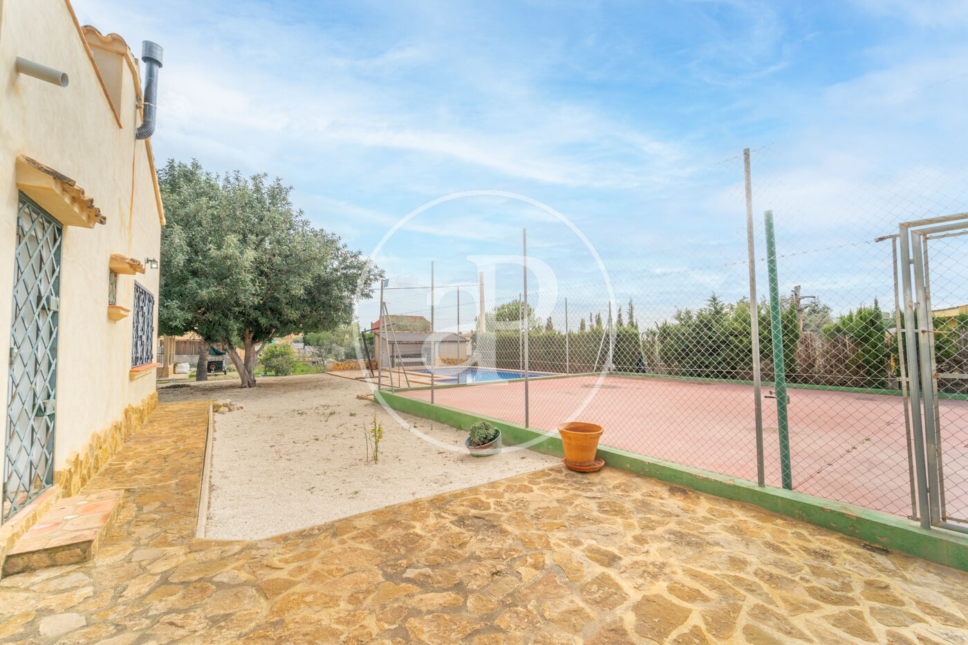 The outdoor area is one of its main highlights. The established garden, with mature trees, a vegetable garden area, and pleasant shaded spaces, forms a true private oasis, together with its exceptional multi-sports court. The swimming pool blends harmoniously into the surroundings and is equipped with a counter-current swimming system, pre-installation for a heat pump, automatic cleaning system, salt chlorination, automatic pH regulation, and white and color LED lighting to be enjoyed during summer evenings as well.