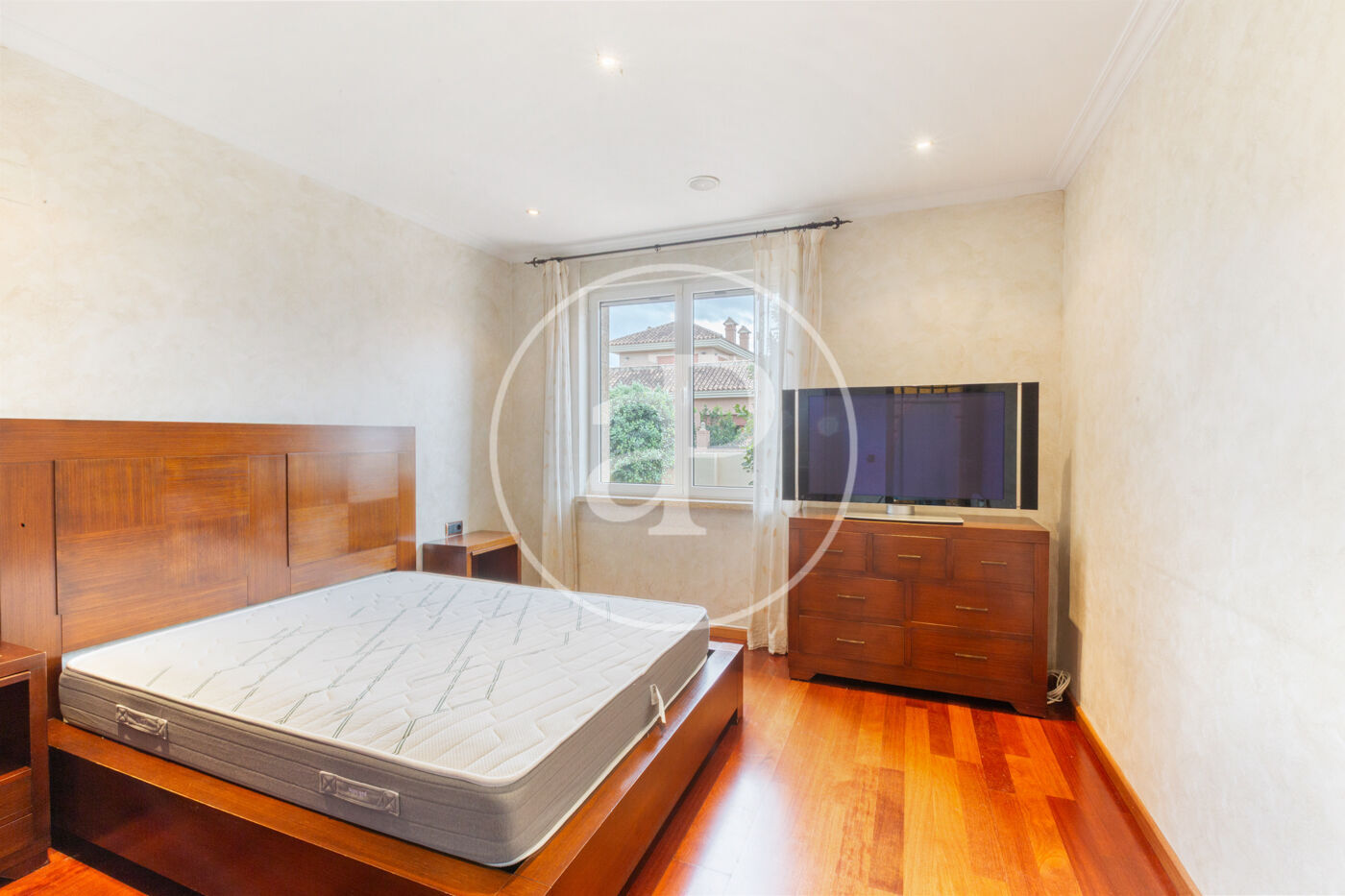 The house has a total of five bedrooms: one of them in the basement floor, with a full bathroom serving this level; two on the ground floor; and three on the first floor.