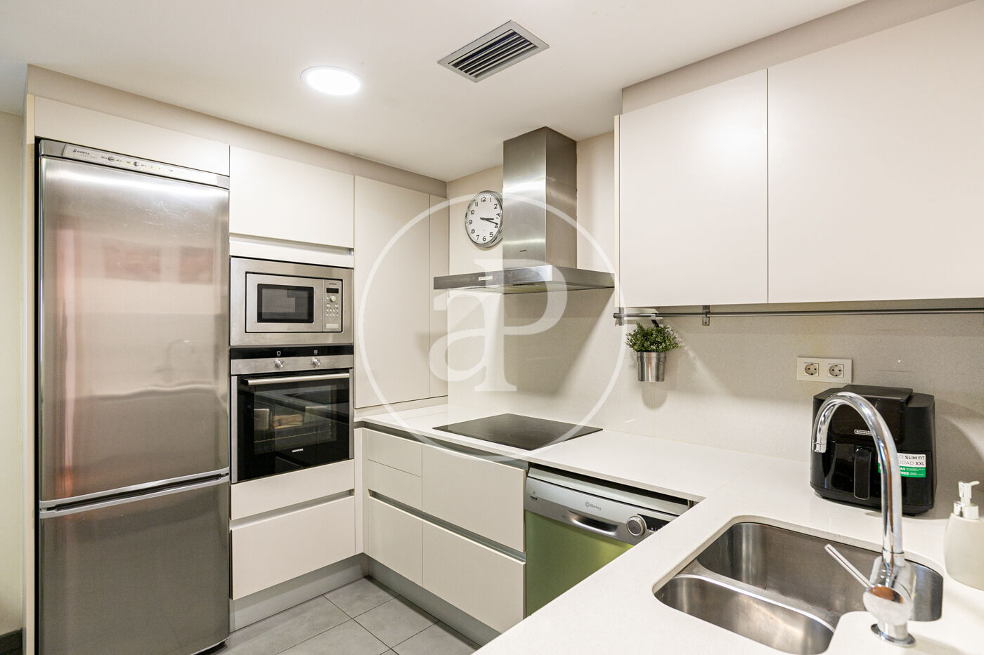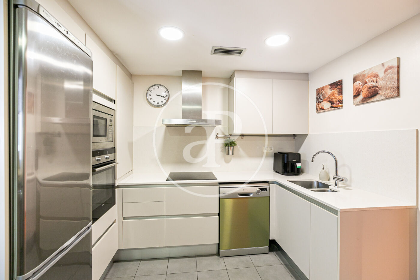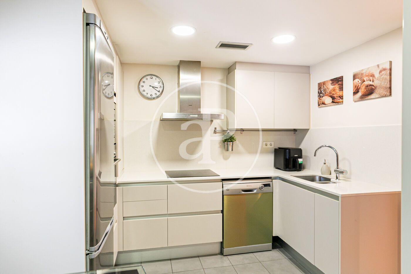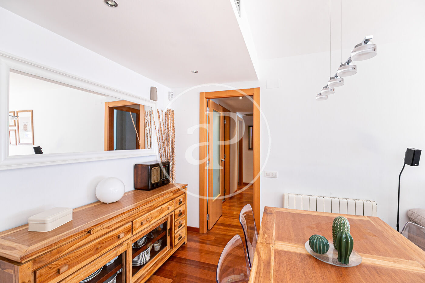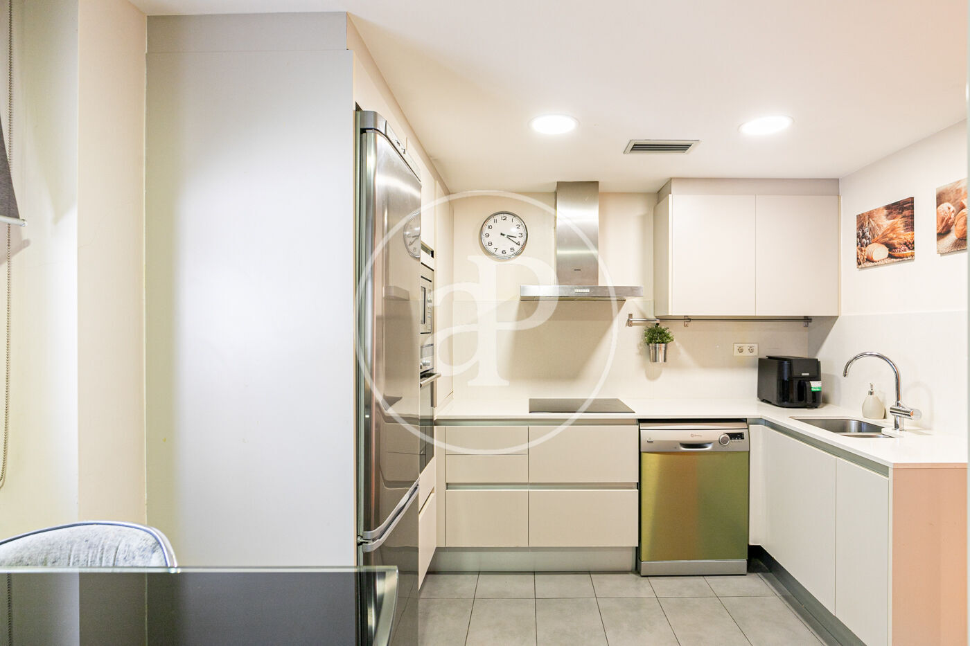 The kitchen is fully equipped with appliances and has an office, which makes this space a perfect place for both day-to-day life and for enjoying gastronomic moments. The living-dining room, spacious and full of natural light thanks to its privileged height and the exit to its large terrace, is ideal for relaxing and spending good times with the family.