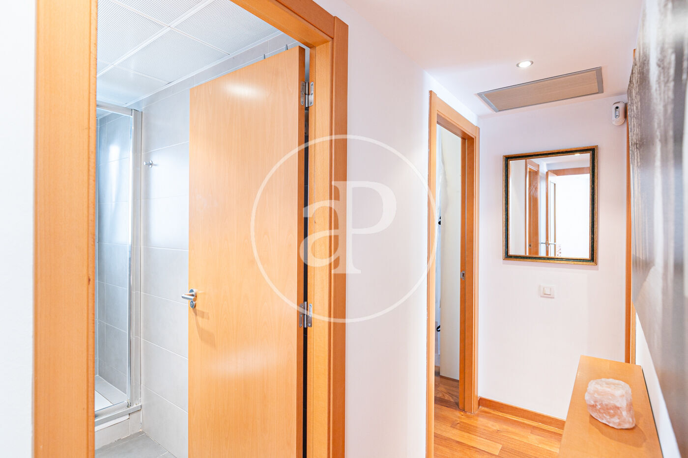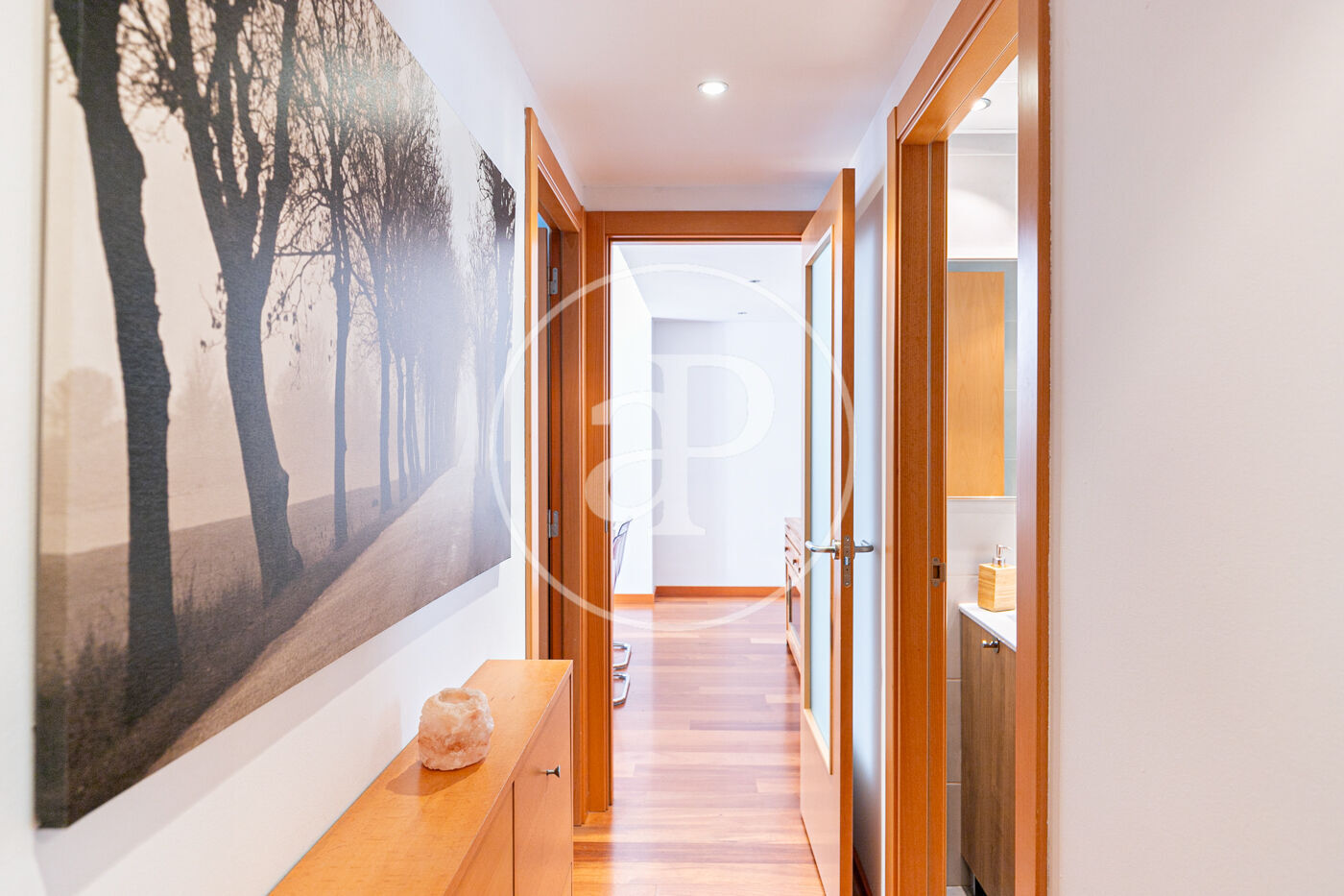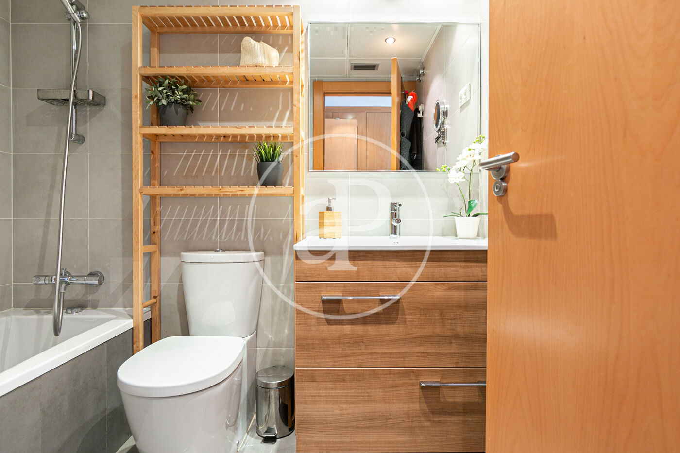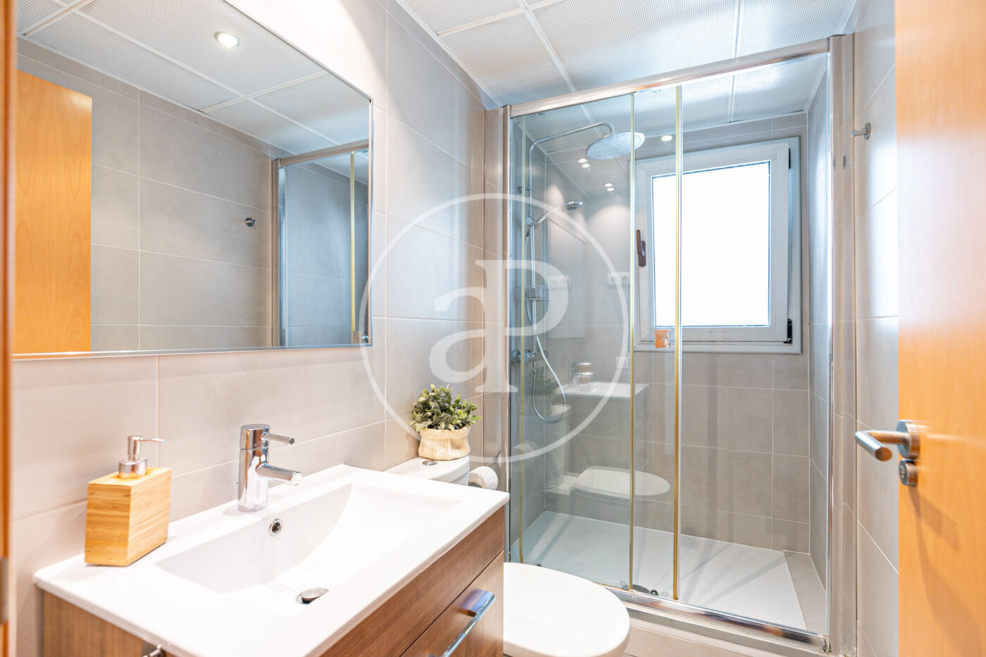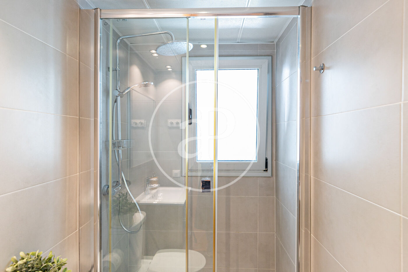 The apartment has three bedrooms, the main one being a large suite that includes an elegant private bathroom to enjoy total privacy and comfort. The other two bedrooms, one double and one single, are perfect for families or for those who need additional space as an office or guest room. In addition, there is a second full bathroom in the hallway for shared use.