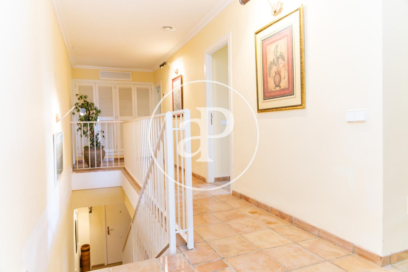 Villa Elysium is an unparalleled architectural gem that merges avant-garde design, comfort, exclusivity, and elegance. Its longitudinal layout ensures that all rooms enjoy panoramic views of the surroundings and abundant natural light, with simple lines that harmoniously blend with the surrounding landscape. This magnificent three-story residence combines functionality and aesthetics, offering exceptional spaces for luxurious living. In the basement, you’ll find a spacious garage with capacity for six vehicles, accessible via a ramp. Additionally, this floor hosts a complete wellness center, including a sauna, gym with views of a serene interior patio, steam room, massage room, restroom, and changing area. The ground floor features a spacious double-height area connecting the indoor living room with the terrace, pool, and garden. This level includes a large central living area between the open-concept kitchen and the formal dining room. Three en-suite bedrooms are distributed on this floor; two of them have a semi-private pergola, and the third includes a study. Additionally, at the rear, there is a sculptural design wine cellar, a TV room, a laundry room, a service kitchen, and a guest restroom. On the first floor, there are four double bedrooms, each equipped with its own full bathroom, and three of them with balcony access. This floor also includes the main entrance, a cozy foyer, and an outdoor pergola area for parking two vehicles.