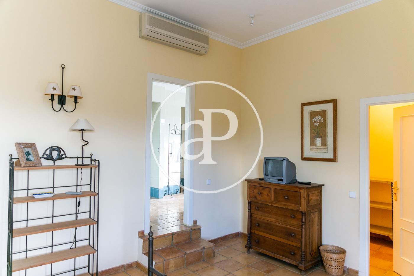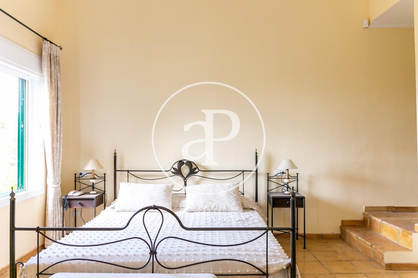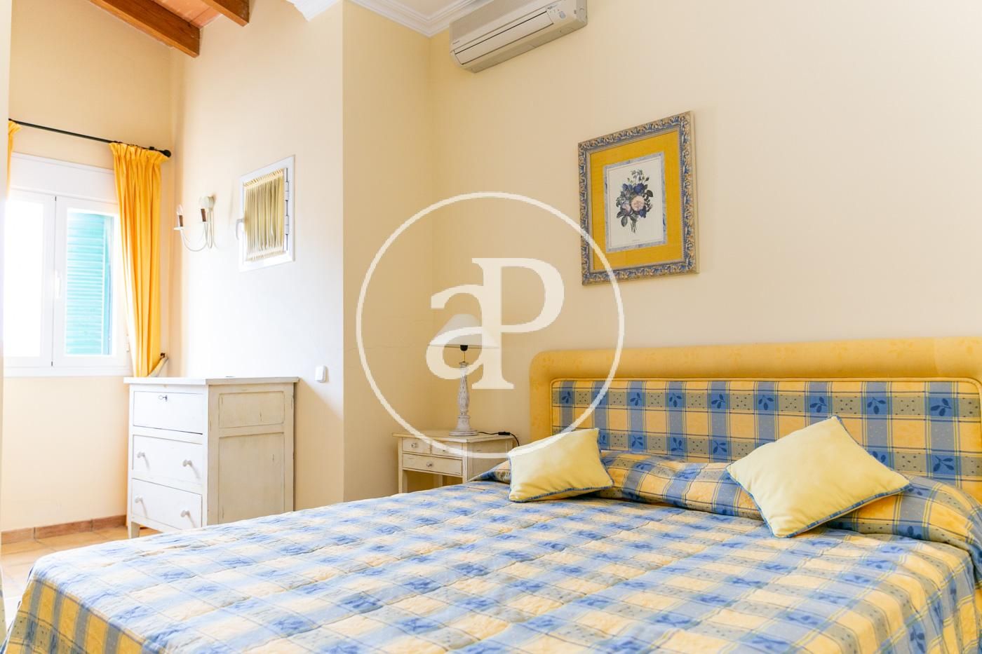 In an exquisite enclave with a landscape that thrills, we move to the town of Algaida. The plot of 222.557m², will be surrounded by rich farmland, vineyards, cresting wheat fields and extensive olive and almond groves, all around this exclusive design.  The project consists of a total of five individual houses and four swimming pools. The main house, Saya, sits sublimely in the center of the entire plot. The exclusive property offers three luxurious bedrooms with en suite bathrooms, an additional guest toilet, as well as a living room with double fireplace and a separate dining room. An open central atrium provides natural ventilation and offers an ideal place for outdoor activities. The second house with swimming pool. Shari, offers spacious accommodation for family and friends.  It has an open plan design with large windows and an interior courtyard enlivened by a fountain. All rooms have direct access to the outdoor areas, allowing for harmonious indoor-outdoor living. At the foot of the hill, behind the windmill, there is another beautiful guest house called Sama with its own swimming pool, which can also be used as a working studio. This residence offers four bedrooms with en suite bathrooms, a large living room and a spacious kitchen that can comfortably accommodate eight guests. The breathtaking views and the surrounding nature make it the perfect place to combine work and relaxation. The other two houses, Syra, for staff housing, and Sela, with its own swimming pool, can be used as guest houses. Será offers an ideal combination of comfort and functionality with four bedrooms, three of them with dressing rooms. The house is surrounded by lush gardens and has direct access. To the Zen pool, located nearby. Sela, meanwhile, is a cozy property discreetly tucked away in an olive grove and has spacious terraces with stunning views of the Tramuntana mountains. Only the highest quality materials and fittings will be used in the homes, such as customized kitchens with Gaggenau appliances, solid natural stone washbasins, Dornbracht and Geberit toilets and bathroom fixtures, and much more. Work is in full swing and. It is expected to be completed in 2024. It will have 1,300 almond trees, 500 olive trees, 100 fruit and nut trees, 12 beehives, wheat fields, a stream and a 2.8 km jogging track. There will also be an open-air cinema, a sauna with an additional Turkish bath, a fitness room, a yoga platform and a wine cellar. Other features: electrical connection with the option to install solar panels, gas central heating with underfloor heating, own well, smart home system and 24-hour video surveillance and access control system, Sonance and Bose sound system with Sonos connection. Restored historic mill with yoga platform. 2.8km jogging track. Being able to enjoy idyllic surroundings makes its perfect location ensures that you will not be more than 25 minutes drive from Palma, the airport, international schools, beaches and exclusive stores.
