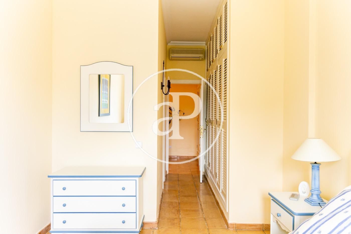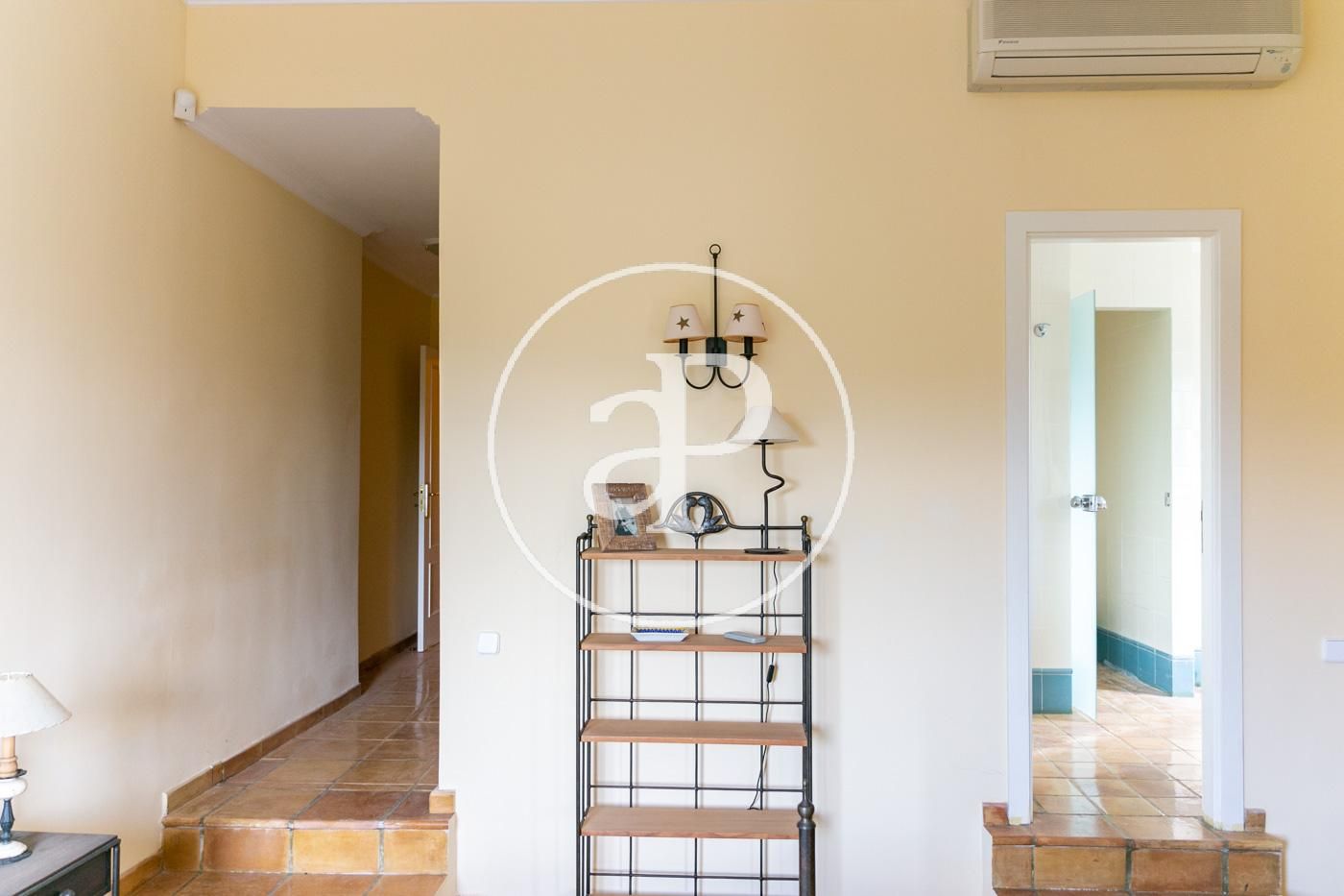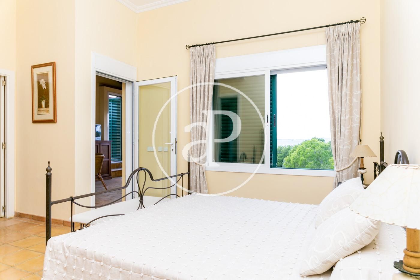 In an exquisite enclave with a landscape that thrills, we move to the town of Algaida. The plot of 222.557m², will be surrounded by rich farmland, vineyards, cresting wheat fields and extensive olive and almond groves, all around this exclusive design.  The project consists of a total of five individual houses and four swimming pools. The main house, Saya, sits sublimely in the center of the entire plot. The exclusive property offers three luxurious bedrooms with en suite bathrooms, an additional guest toilet, as well as a living room with double fireplace and a separate dining room. An open central atrium provides natural ventilation and offers an ideal place for outdoor activities. The second house with swimming pool. Shari, offers spacious accommodation for family and friends.  It has an open plan design with large windows and an interior courtyard enlivened by a fountain. All rooms have direct access to the outdoor areas, allowing for harmonious indoor-outdoor living. At the foot of the hill, behind the windmill, there is another beautiful guest house called Sama with its own swimming pool, which can also be used as a working studio. This residence offers four bedrooms with en suite bathrooms, a large living room and a spacious kitchen that can comfortably accommodate eight guests. The breathtaking views and the surrounding nature make it the perfect place to combine work and relaxation. The other two houses, Syra, for staff housing, and Sela, with its own swimming pool, can be used as guest houses. Será offers an ideal combination of comfort and functionality with four bedrooms, three of them with dressing rooms. The house is surrounded by lush gardens and has direct access. To the Zen pool, located nearby. Sela, meanwhile, is a cozy property discreetly tucked away in an olive grove and has spacious terraces with stunning views of the Tramuntana mountains. Only the highest quality materials and fittings will be used in the homes, such as customized kitchens with Gaggenau appliances, solid natural stone washbasins, Dornbracht and Geberit toilets and bathroom fixtures, and much more. Work is in full swing and. It is expected to be completed in 2024. It will have 1,300 almond trees, 500 olive trees, 100 fruit and nut trees, 12 beehives, wheat fields, a stream and a 2.8 km jogging track. There will also be an open-air cinema, a sauna with an additional Turkish bath, a fitness room, a yoga platform and a wine cellar. Other features: electrical connection with the option to install solar panels, gas central heating with underfloor heating, own well, smart home system and 24-hour video surveillance and access control system, Sonance and Bose sound system with Sonos connection. Restored historic mill with yoga platform. 2.8km jogging track. Being able to enjoy idyllic surroundings makes its perfect location ensures that you will not be more than 25 minutes drive from Palma, the airport, international schools, beaches and exclusive stores.