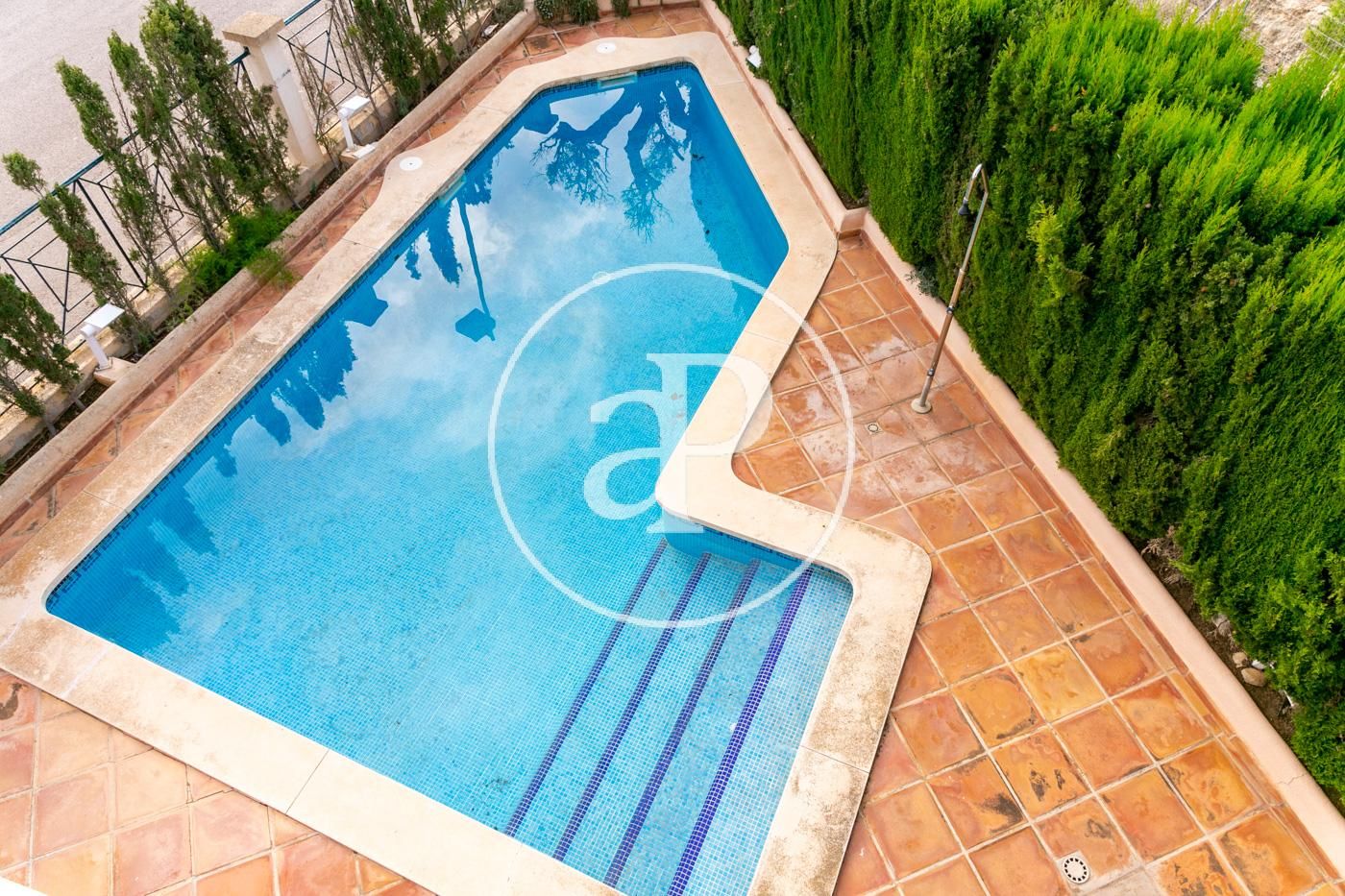 The house is distributed over three spacious floors of 150 sqm each, offering a generous space full of natural light. From the first moment, its imposing entrance conveys nobility and authenticity, inviting you to discover an elegant living-dining room of classic and cozy style. The kitchen, independent and with adjoining utility room, connects directly to a private garden full of charm - a true oasis with enough space to create a chill-out area, vegetable garden, or even a swimming pool, ideal for enjoying the Mediterranean lifestyle outdoors.  On the second floor, two large windows offer exceptional lighting and frame a direct view of the emblematic village church, an image that conveys serenity and beauty at any time of the year. Every corner of this floor invites to rest, contemplation and connection with the environment.  The third floor, meanwhile, offers panoramic views of the mountains of Alaró, with an atmosphere of absolute peace. This level presents itself as the ideal place to create master bedrooms, artistic studio or retreat spaces, all against the backdrop of Mallorcan nature.  The most valuable thing about this property is its ability to offer the best of both worlds: you are in the center of town, with all services at your fingertips, but at the same time you enjoy an intimate, quiet environment surrounded by nature. It is the perfect place for those looking for quality of life, authenticity and connection with the locals.  Alaró is a highly valued destination for residents and visitors, thanks to its traditional charm, active community and its excellent connection to Palma and the airport, both only 20 minutes away by car. The village boasts signature restaurants, weekly markets, hiking trails and a vibrant cultural life, all wrapped in a natural environment of incomparable beauty.  An exclusive property with history, soul, it is much more than a home: it is a lifestyle.  Can you imagine living here?