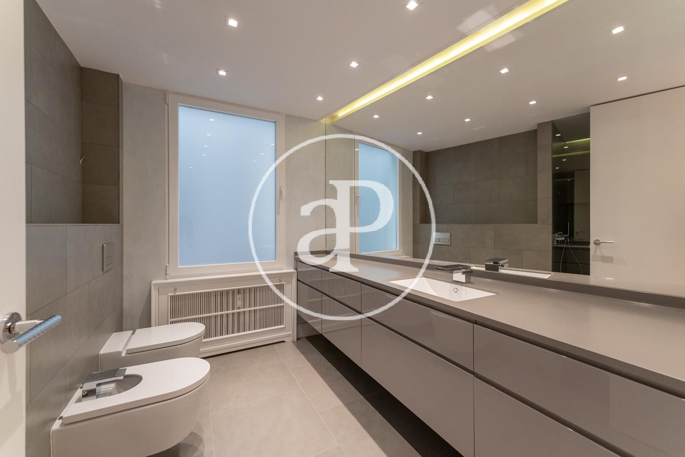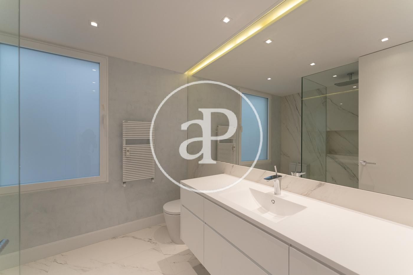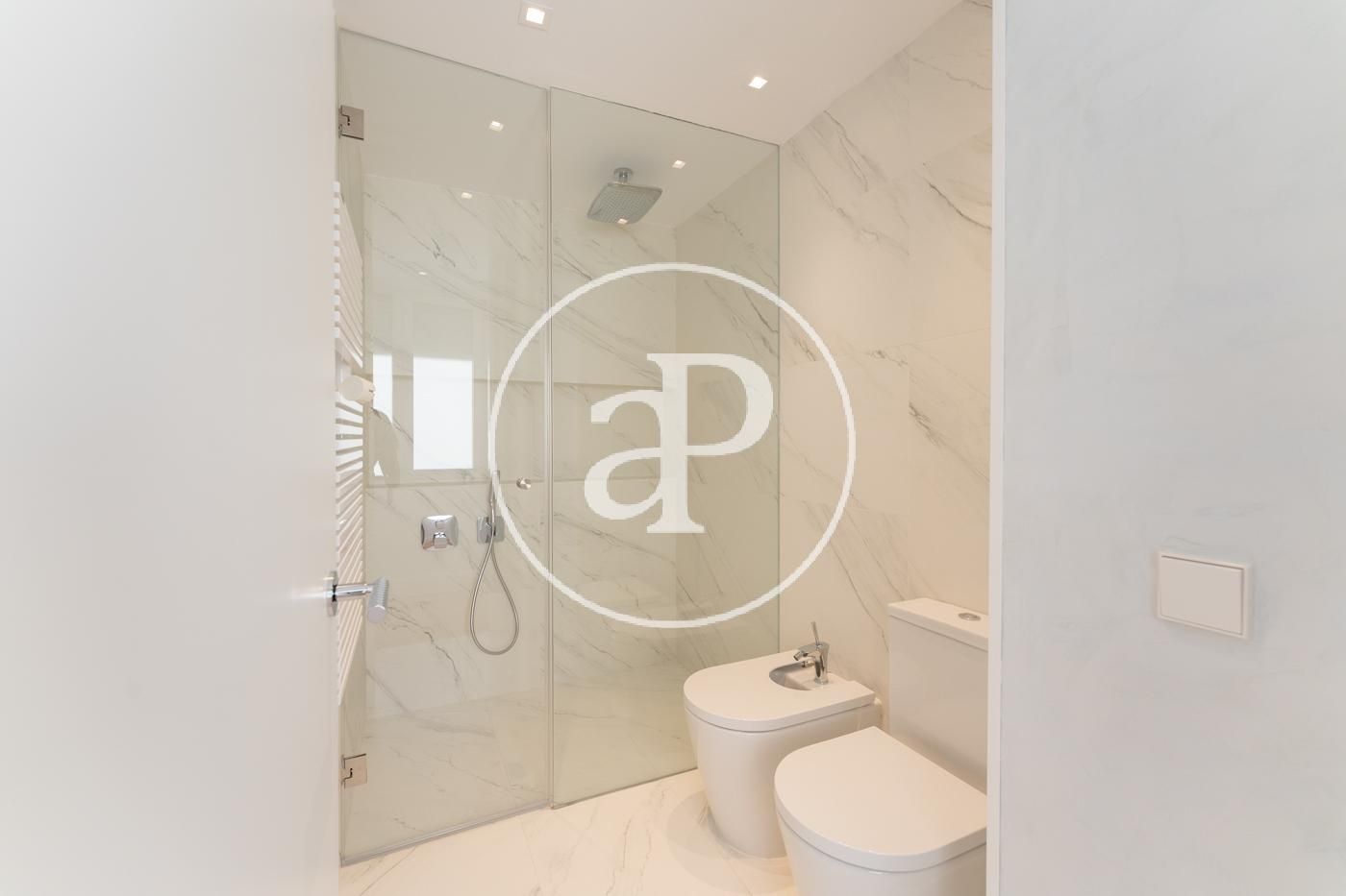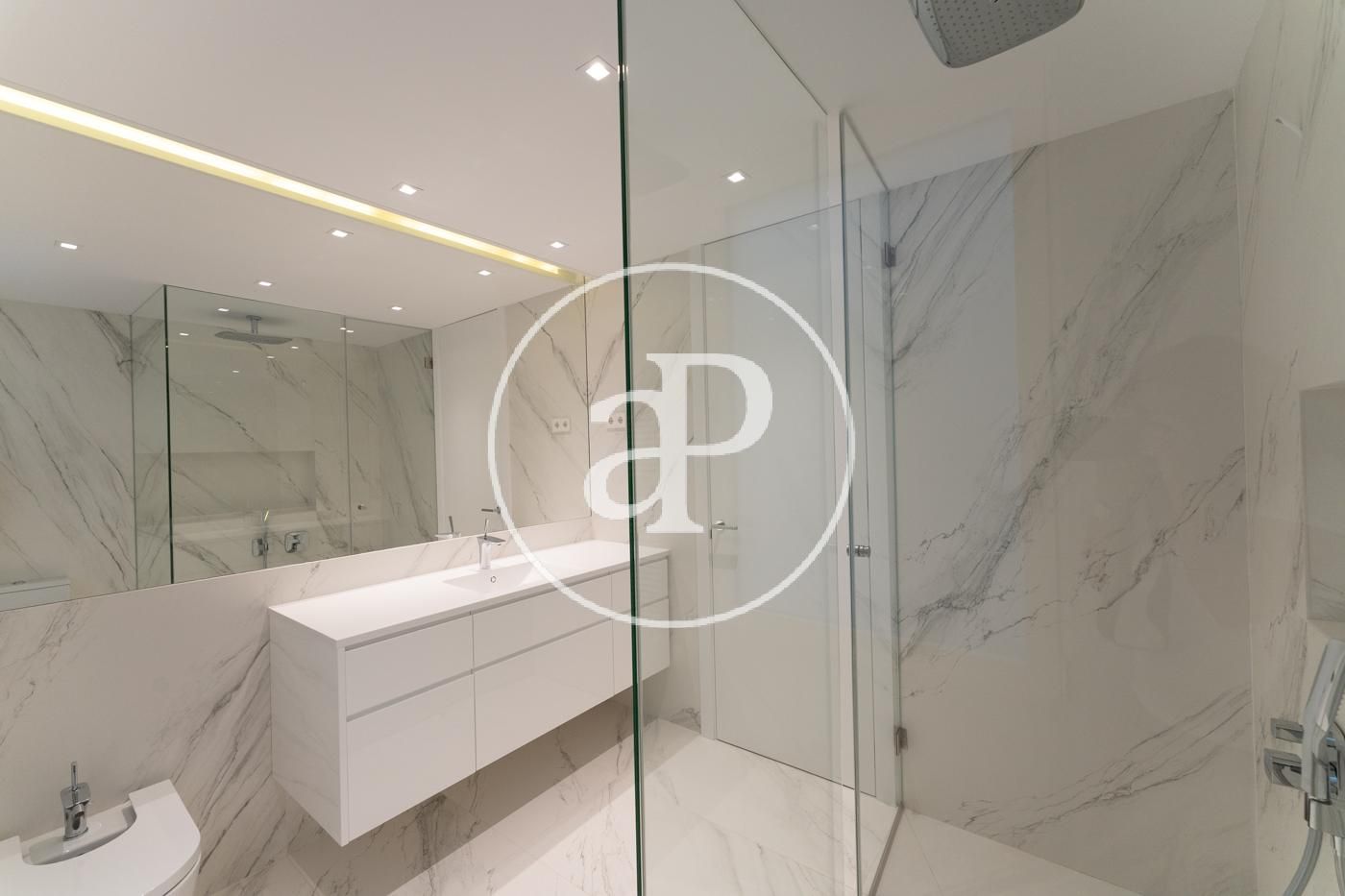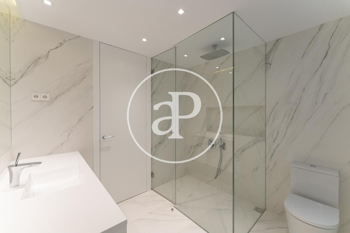 In Eixample Esquerra, right on Gran Via de les Corts Catalanes and just steps from Plaza España, we find this renovated 120 m² penthouse, fully furnished, with a magnificent private terrace of approximately 100 m². It is surrounded by all kinds of services, shops, and access to all types of public transport. The daytime area consists of a large space with a fully equipped kitchen featuring all appliances, open-concept with a central island and integrated into the living-dining room. It is characterized by its brightness and large windows that open onto a balcony with city views. In the nighttime area, there are two double bedrooms, one of them en suite with access to the balcony, a single bedroom currently used as a dressing room or office, and two full bathrooms. The apartment was completely renovated a year ago and boasts a minimalist and modern aesthetic. It is very bright, with natural light in all rooms. It features split air conditioning and individual heating. The property is completed with a spectacular private terrace located one floor above the apartment, offering privileged views. It includes a quiet space, outdoor furniture, and a barbecue—everything designed for your enjoyment. This wonderful home will be available starting early February and is perfect for those seeking exclusivity and comfort in the heart of the city. Do not hesitate to visit it—you'll love it! The purpose of the contract is temporary. The actual furnishings may not exactly match the photographs shown in this advertisement.* In compliance with Law 12/2023 and Law 18/2007, we inform thatIndex of R.P.LL: 16,82 € / m2 Rent of the last lease contract: 3.150,00 €