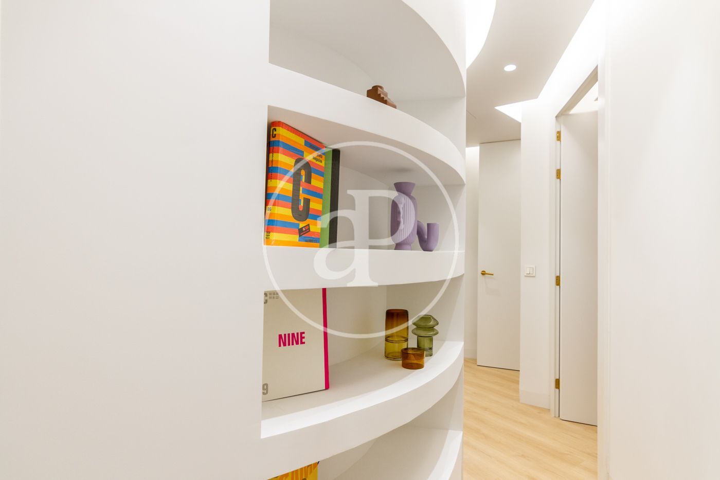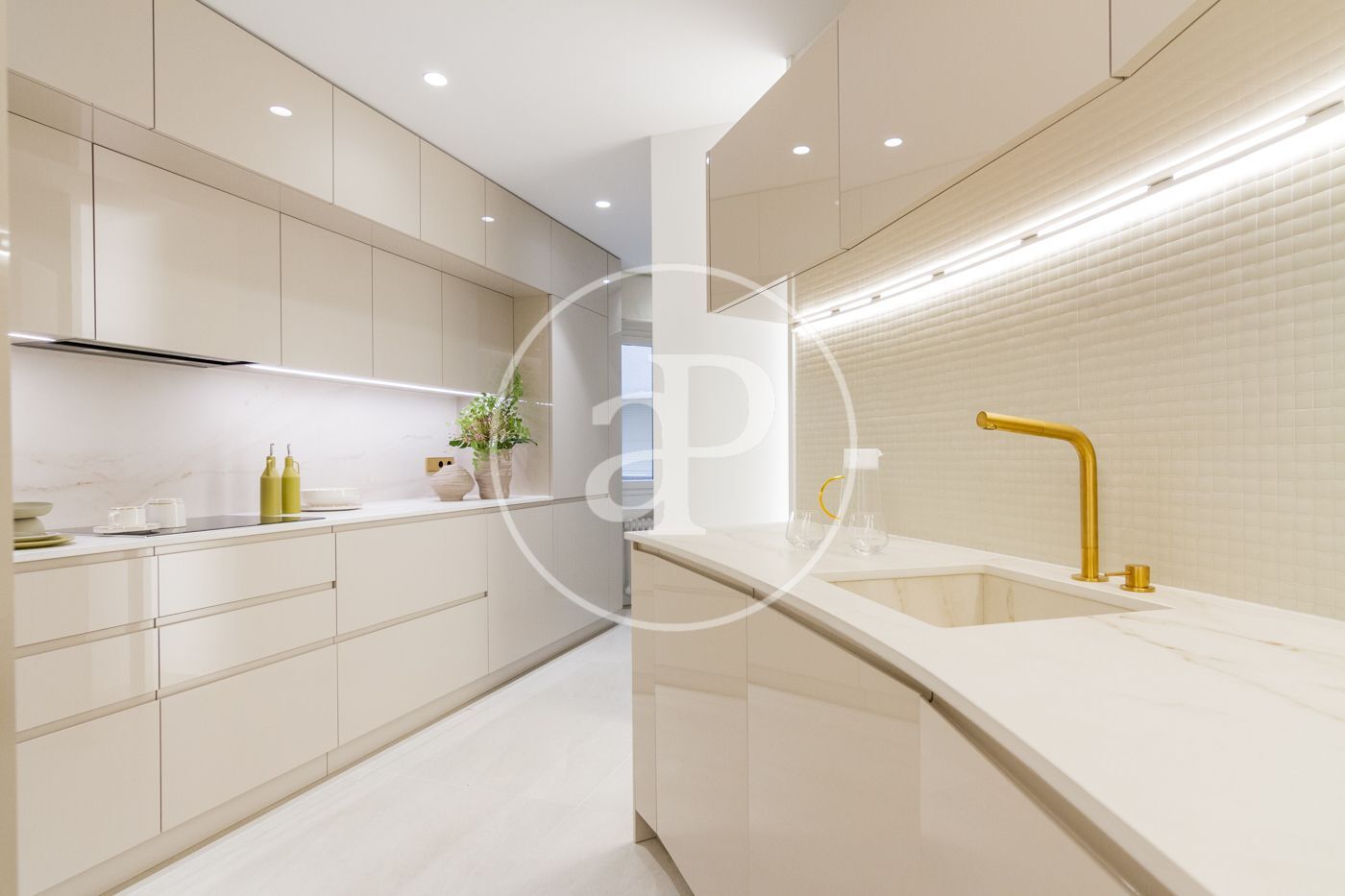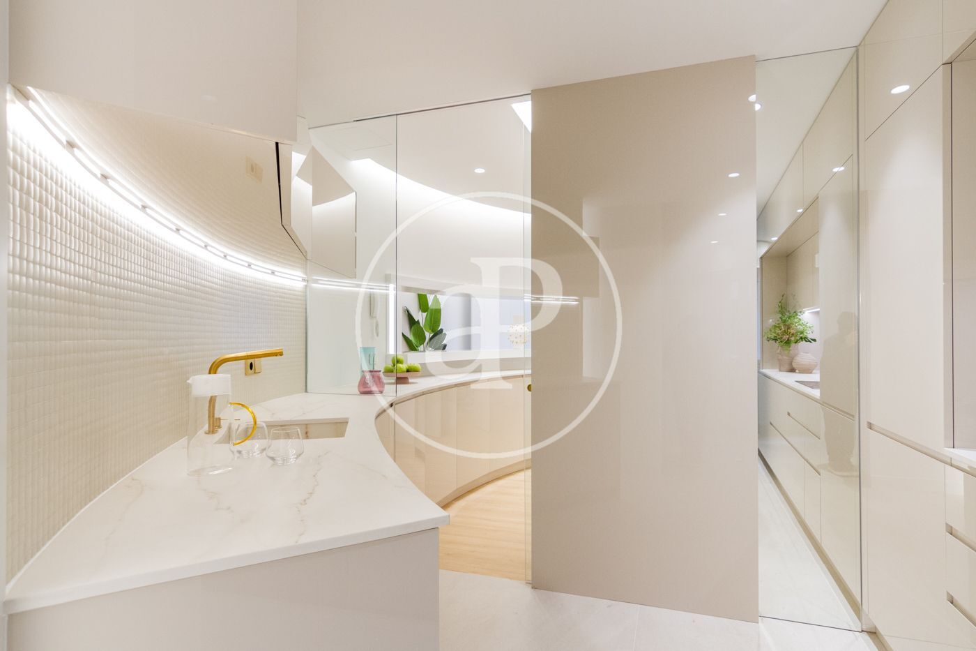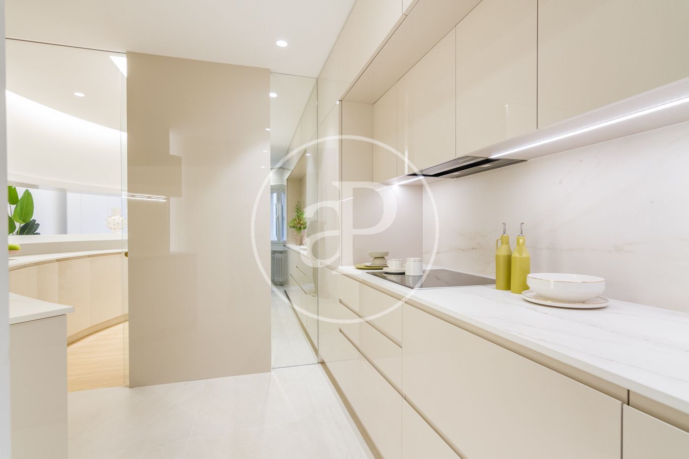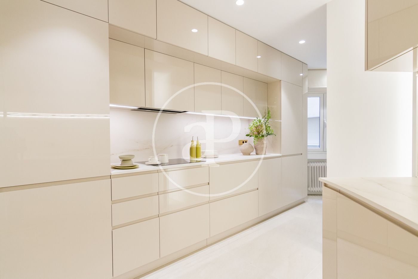 Recently refurbished and decorated by prestigious interior designer in Ortega y Gasset street. Long term rental. The property is located in prime area of Recoletos, it is an exterior flat with lots of light and a good orientation that allows you to enjoy the terrace of 13 meters that the property has. The house is distributed in 3 bedrooms, the master bedroom with dressing room, en-suite bathroom and access to the terrace, and two more bedrooms sharing a bathroom. The entrance hall leads to the rest area and a garage space with direct lift access.