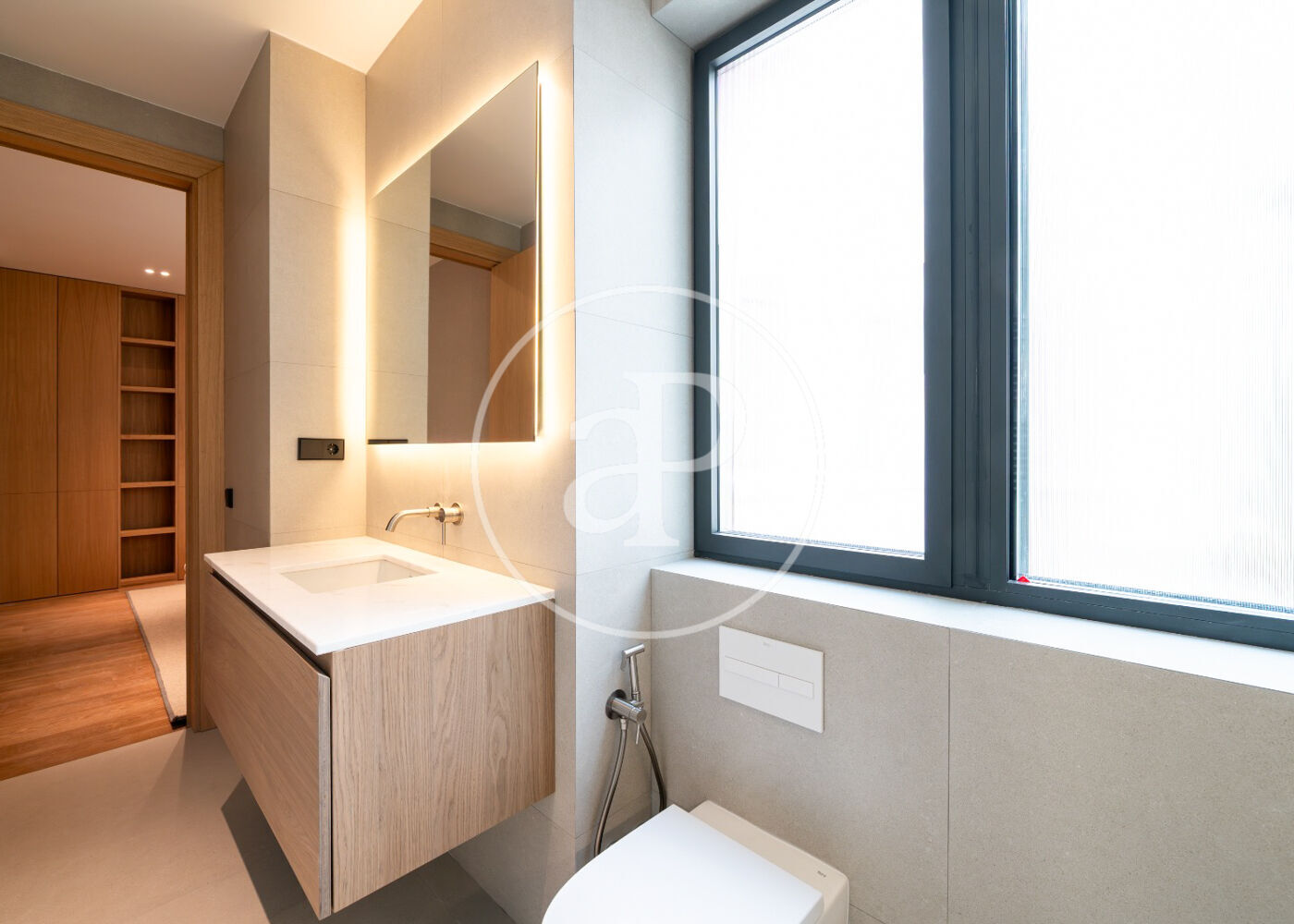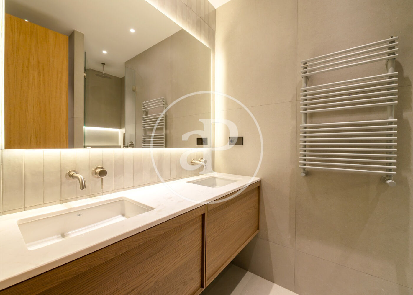 aProperties presents this exclusive luxury apartment on Príncipe de Vergara, located in the prestigious El Viso neighborhood, within the Chamartín district, one of Madrid's most sought-after and promising residential areas. A unique property in terms of size, location, and level of amenities, ideal both as a high-end primary residence and as a prime real estate investment. The apartment, situated on the first floor with elevator access, boasts 315 m² (3,300 sq ft) of registered living space, distributed among five bedrooms, five full bathrooms, a guest toilet, spacious dressing rooms, and a wellness area with a sauna, offering an exceptional level of comfort. The property has undergone a complete renovation, incorporating a contemporary, functional, and elegant design with high-end materials and finishes. It features a fully equipped kitchen, is delivered furnished, and includes central heating, air conditioning, a home automation system, as well as a parking space and storage room—key elements in this type of premium residential property in Madrid. Located between Paseo de la Castellana and Avenida de América, this property boasts excellent transport links to the city center and the airport, as well as proximity to Nuevos Ministerios, the Santiago Bernabéu stadium, renowned restaurants, private sports centers, and top-tier amenities. The El Viso neighborhood is known for its stability, exclusivity, and high national and international demand. With a limited residential supply and strong annual appreciation, this property presents a unique opportunity to acquire a luxury apartment in Chamartín, in one of Madrid's most established real estate markets. Can you imagine living here?