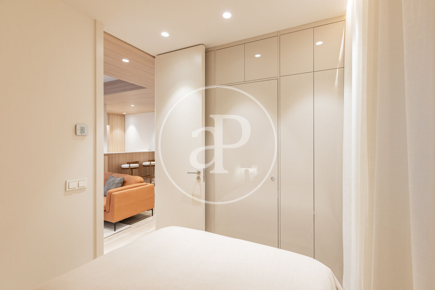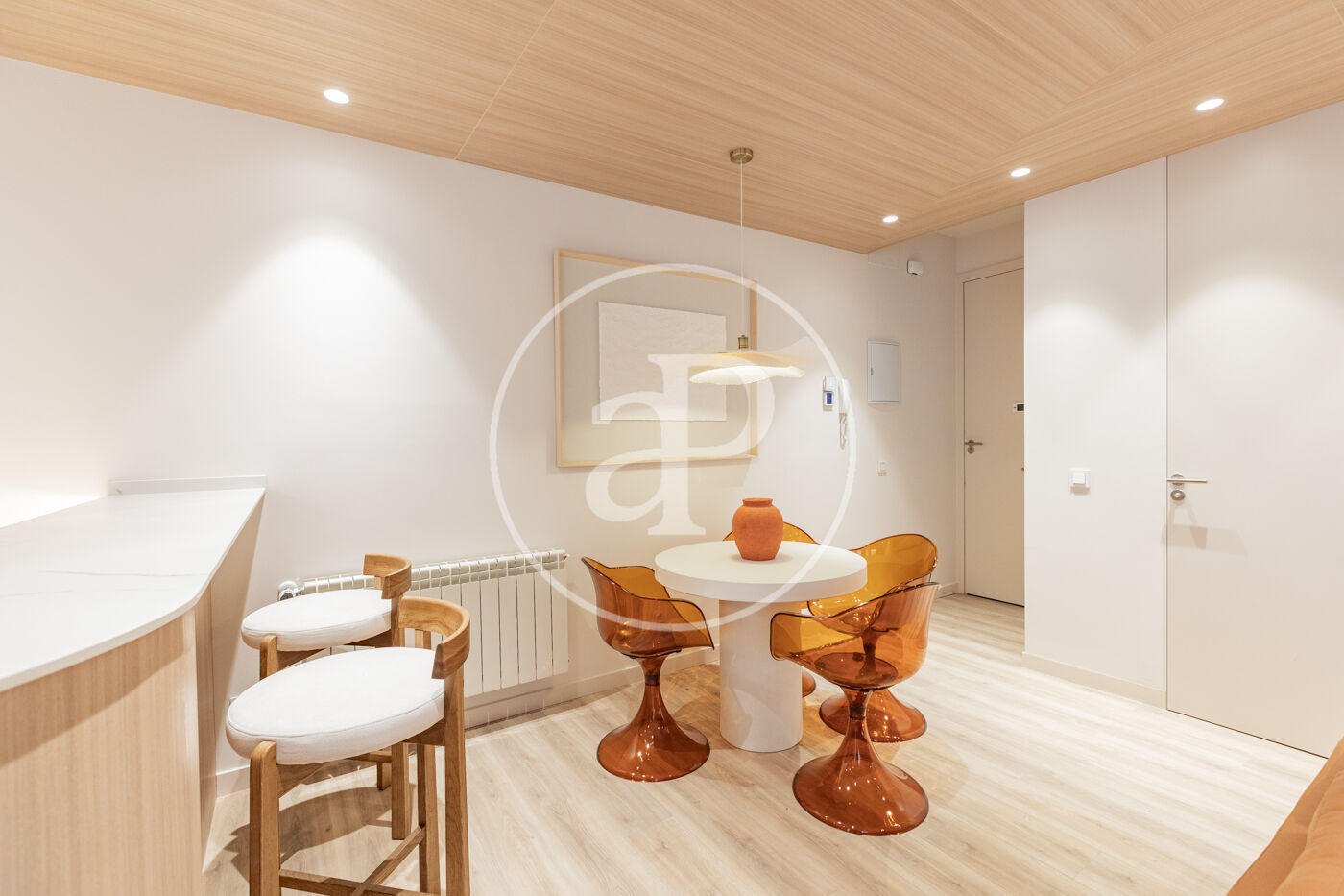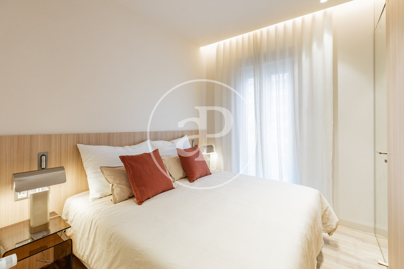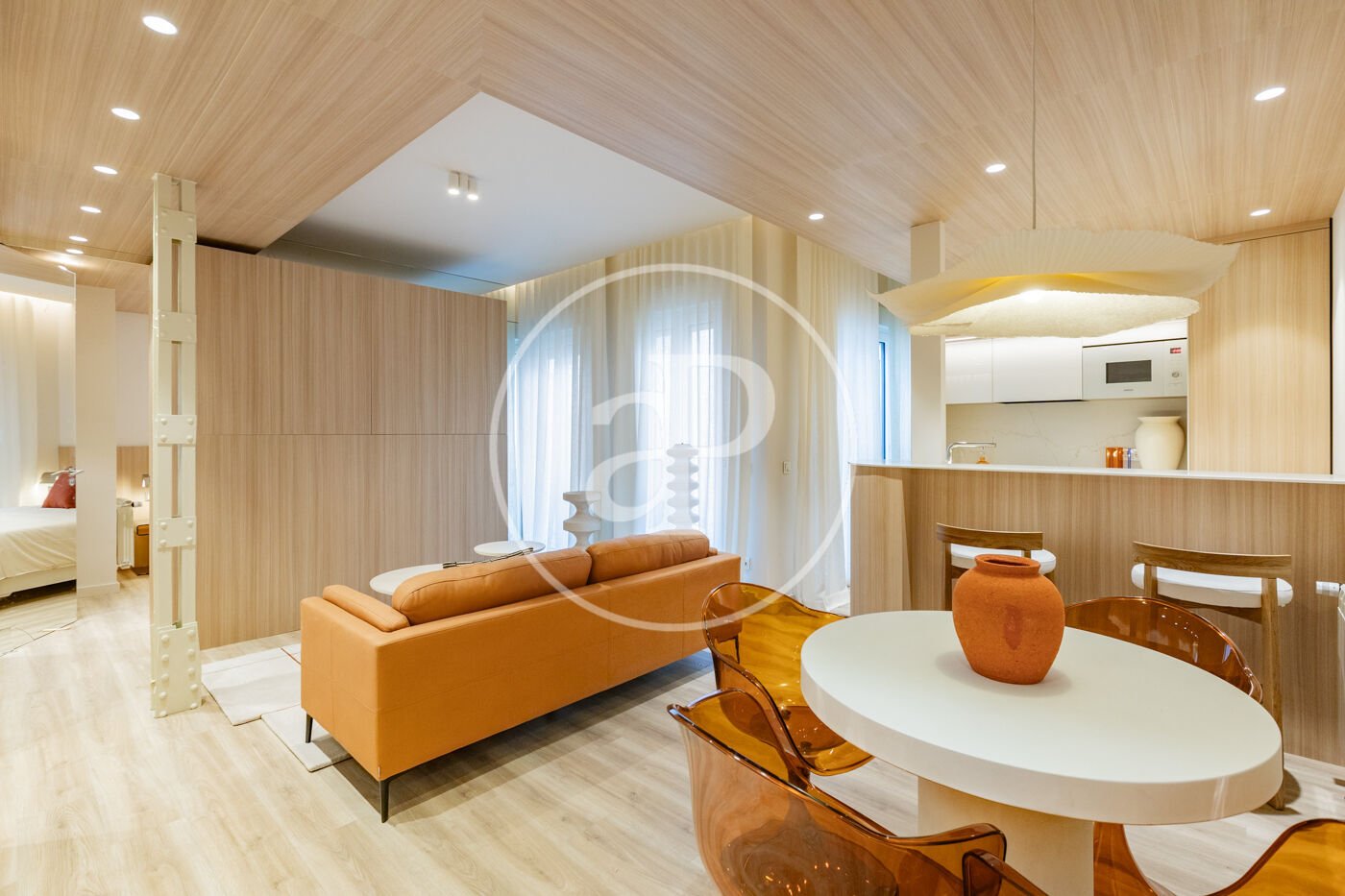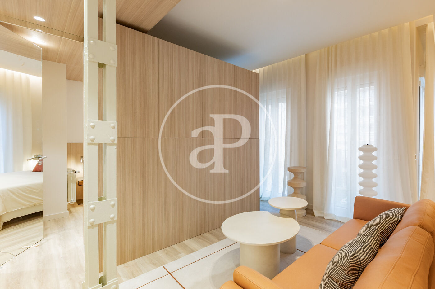 SEASONAL RENTAL 3-11 MONTHS - AVAILABLE FEBRUARY 1 - UTILITIES INCLUDED We present this stylish 49 m² apartment, bright and airy, with designer finishes. Located in one of Madrid's most traditional, vibrant, and well-connected neighborhoods. The apartment is situated on a mezzanine level and boasts excellent natural light. It has been tastefully renovated and decorated with high-quality finishes, including 3.10 m high ceilings, hardwood floors, and carefully considered lighting. It features a comfortable living room with a designer sofa and a desk ideal for studying or working from home. The integrated kitchen is fully equipped with appliances (refrigerator, oven, washing machine, microwave, and dishwasher), cookware, and a dining table. The bathroom is separate and has a shower. The bedroom, decorated in neutral tones, features a double bed, two bedside tables, and a pleasant space with windows overlooking the street. Built-in mirrored wardrobes complete the room. The Trafalgar neighborhood, in the Chamberí district, offers the best of the city: excellent connectivity, a wide range of shops on the main streets, and tranquility in the more residential areas. Its diverse culinary scene, along with parks and plazas, makes it one of the most attractive neighborhoods to live in for a while in Madrid. The apartment is delivered fully furnished and with all utilities included in the price. Can you imagine living here?