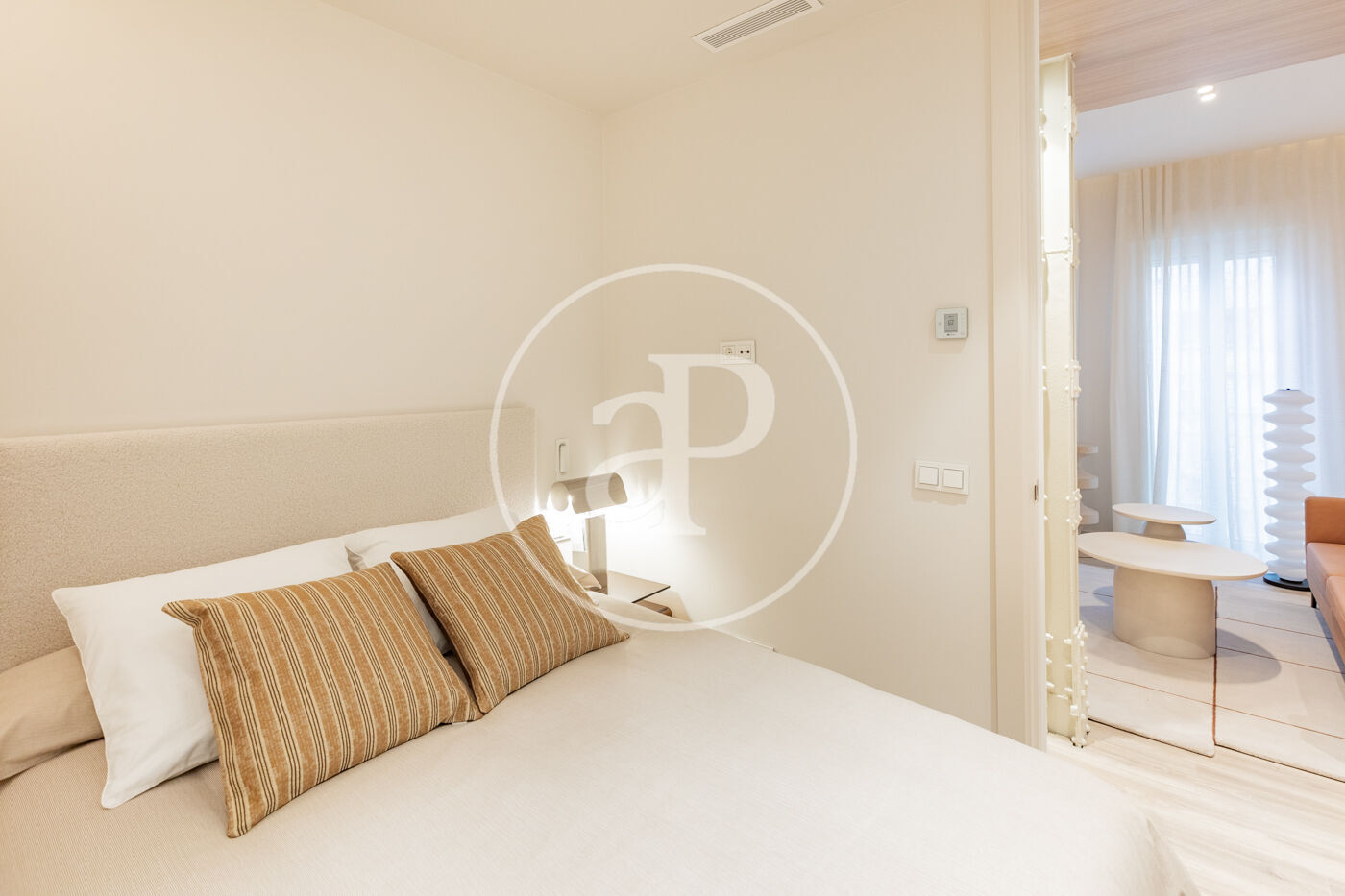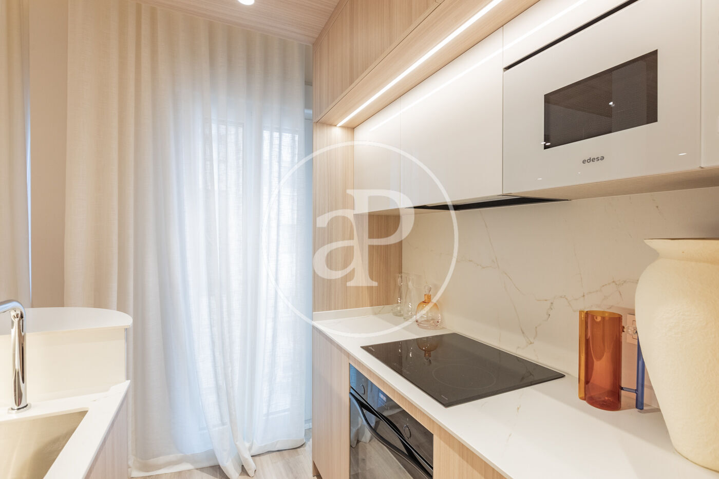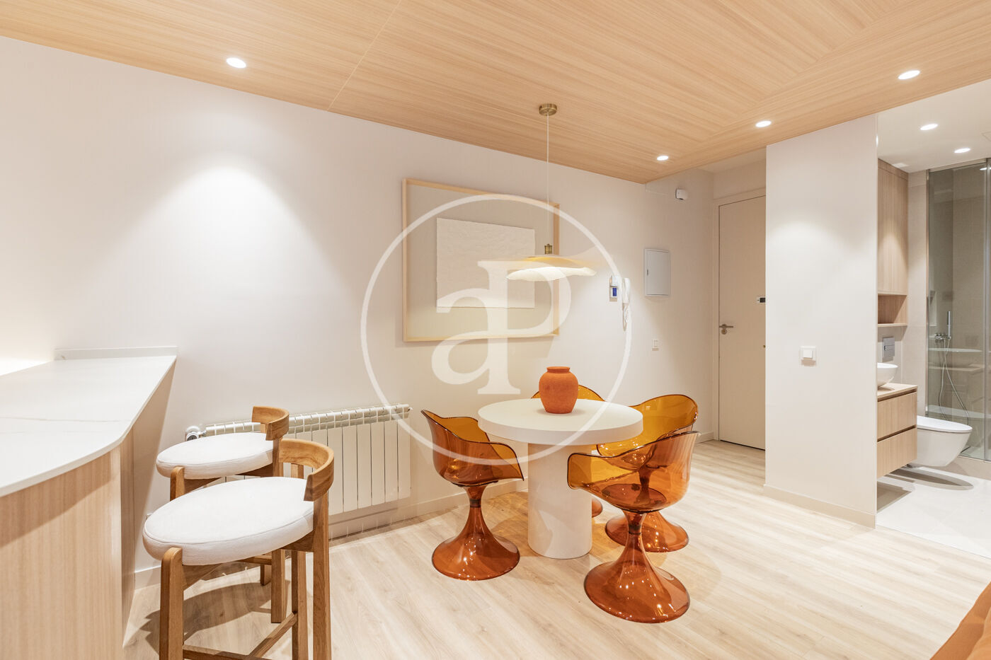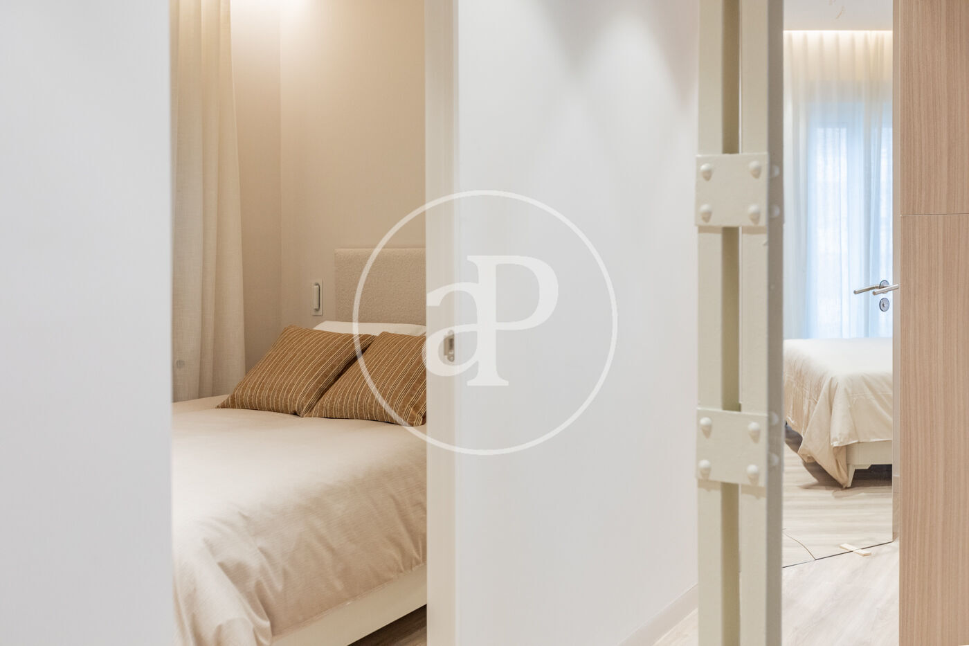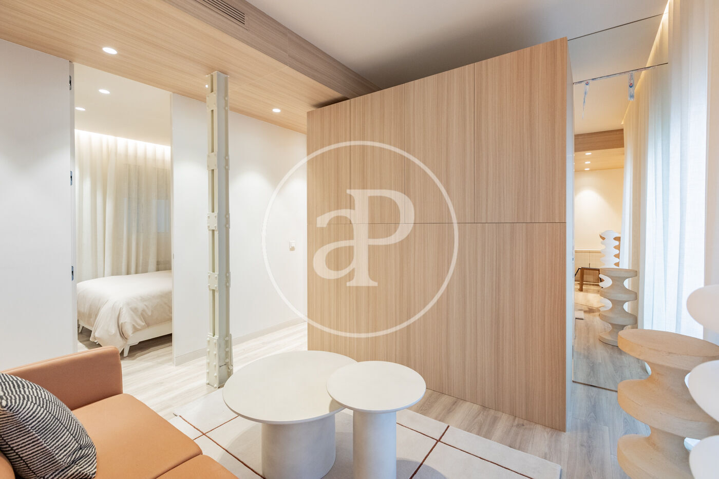 SEASONAL RENTAL 3-11 MONTHS - AVAILABLE FEBRUARY 1 - UTILITIES INCLUDED We present this stylish 49 m² apartment, bright and airy, with designer finishes. Located in one of Madrid's most traditional, vibrant, and well-connected neighborhoods. The apartment is situated on a mezzanine level and boasts excellent natural light. It has been tastefully renovated and decorated with high-quality finishes, including 3.10 m high ceilings, hardwood floors, and carefully considered lighting. It features a comfortable living room with a designer sofa and a desk ideal for studying or working from home. The integrated kitchen is fully equipped with appliances (refrigerator, oven, washing machine, microwave, and dishwasher), cookware, and a dining table. The bathroom is separate and has a shower. The bedroom, decorated in neutral tones, features a double bed, two bedside tables, and a pleasant space with windows overlooking the street. Built-in mirrored wardrobes complete the room. The Trafalgar neighborhood, in the Chamberí district, offers the best of the city: excellent connectivity, a wide range of shops on the main streets, and tranquility in the more residential areas. Its diverse culinary scene, along with parks and plazas, makes it one of the most attractive neighborhoods to live in for a while in Madrid. The apartment is delivered fully furnished and with all utilities included in the price. Can you imagine living here?