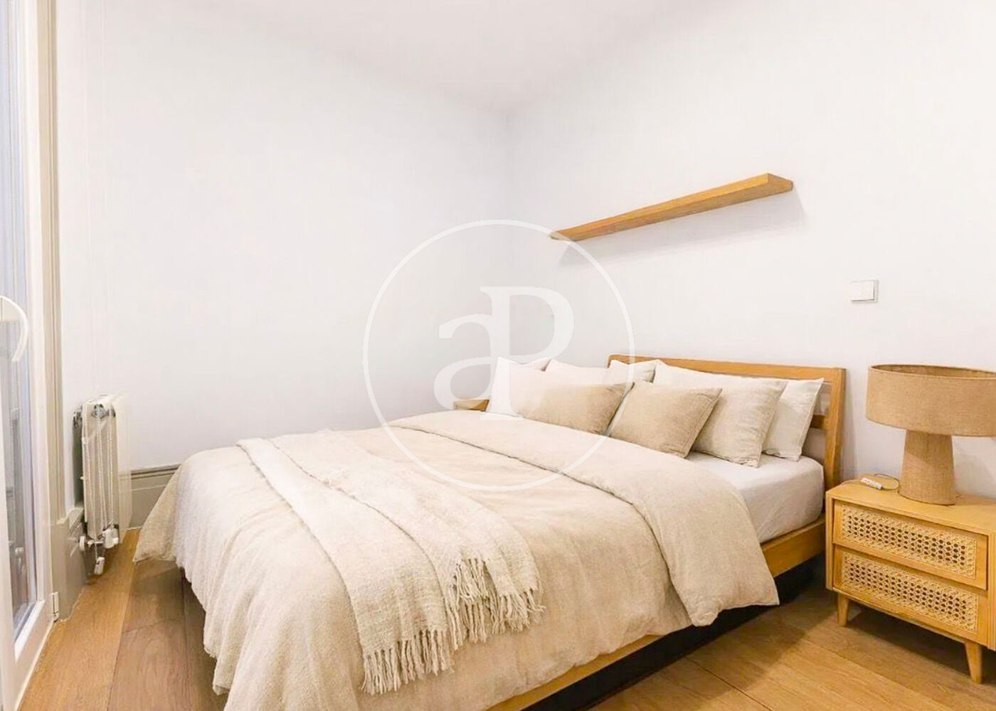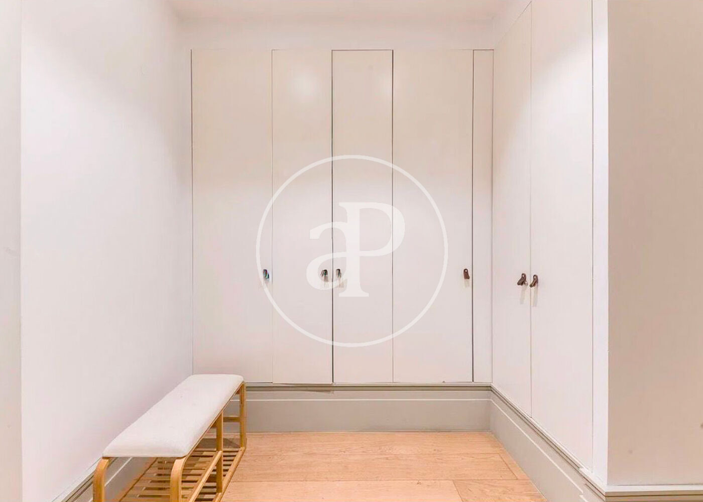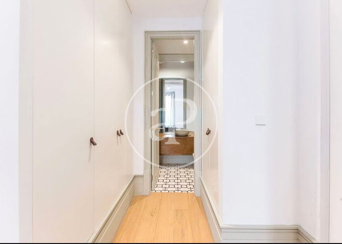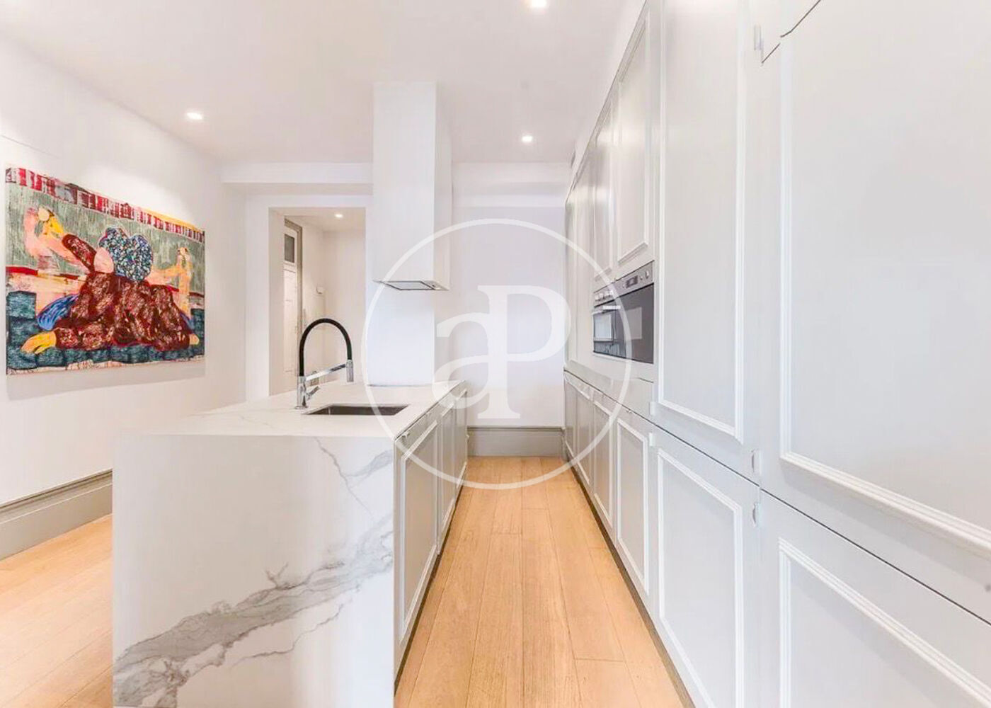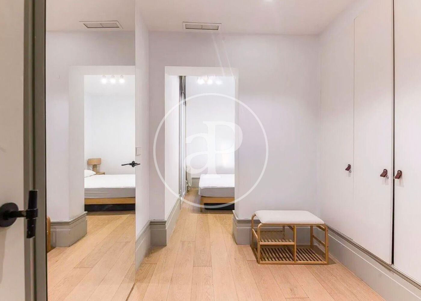 Brand new 100m2 apartment, very well distributed into separate living and sleeping areas. From the entrance, you enter a hall that serves as the central hub of the home. To the right, you enter the living area with a spacious, fully equipped kitchen and an island. This space leads to a large living room featuring built-in bookshelves, a large, state-of-the-art Smart TV, and two accessible balconies. The apartment offers ample storage space and two double bedrooms, the master with a dressing room, and both with en-suite bathrooms. A separate guest toilet completes the apartment. It has ducted heating and air conditioning and is located on a quiet street in the Justicia neighborhood.