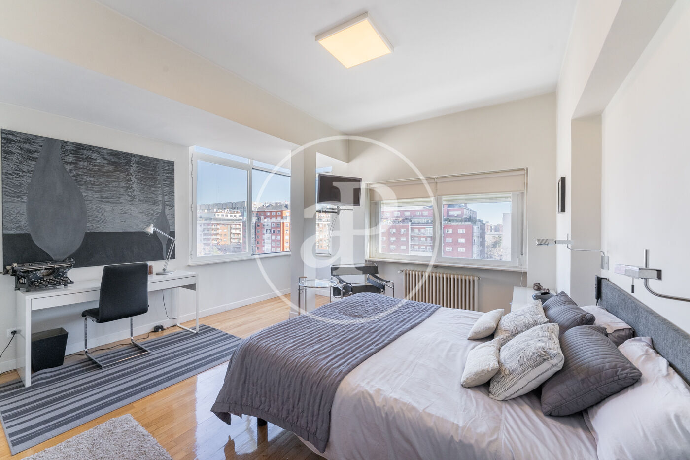 The property is distributed in a noble area consisting of an entrance hall and a spacious living room with large windows overlooking the Paseo de la Castellana, which brings a lot of light to the room, the kitchen is fully equipped with appliances and all kinds of utensils. The sleeping area consists of three double bedrooms, the main one en suite, and two bathrooms.