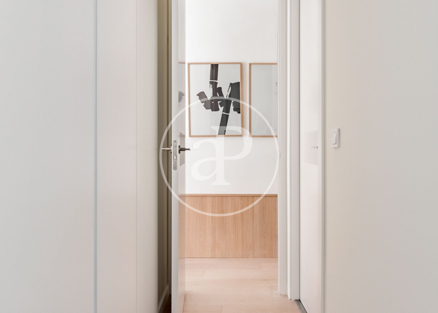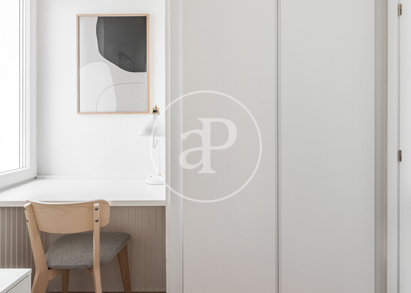 In the prestigious Salamanca neighborhood, in an excellent location near the intersection of the representative streets of Principe de Vergara and Diego de Leon, passing through the Castellana area, APROPERTIES offers for sale this magnificent property completely renovated, furnished and brand new. Located in a modern building, it is a third floor exterior very bright west facing and 241m2 built. The day area consists of a spacious living-dining room of 62m2 with a large open kitchen, elegant, functional and design equipped with all appliances of leading brands. This area has direct access to a spacious laundry room. The sleeping area is made up of three large double bedrooms with fitted closets, with the main one having a dressing room and 3 complete bathrooms, all of them en suite. The property also has a guest toilet and an office space, which could be converted into a fourth bedroom, if the client's needs so require. It has air conditioning duct in all rooms and heating and water are individual gas. To highlight of this wonderful house, the professionalism of its reform in which the standards of the highest quality have been followed in its execution, direction and materials used in each and every one of its rooms and by a careful, original and stylish interior design by the famous interior designer Pils Ferrer. The result is the achievement of a comfortable, cozy and spectacular home that combines elegance and exclusivity in every corner. The property is located in a modern building with elevator, doorman, and well-kept common areas. In addition, it includes 6 months a year of a parking space with direct access to the property. As for the location, this exclusive apartment is surrounded by a wide range of services, such as exclusive restaurants, prestigious schools, hospitals and health centers that guarantee quality medical care just minutes from home and excellent public transport connections. Can you imagine living here?