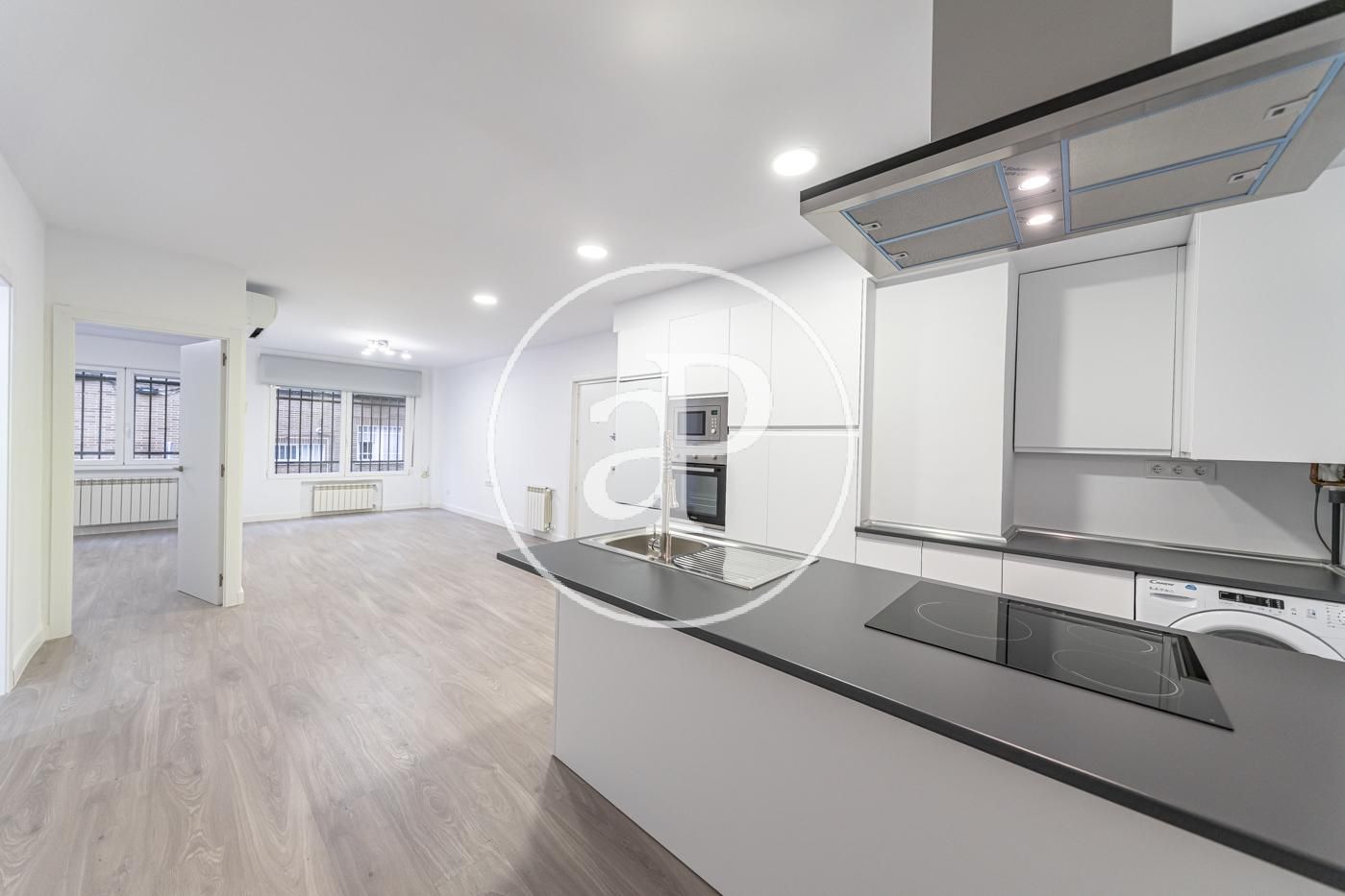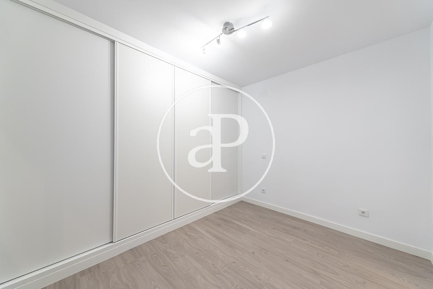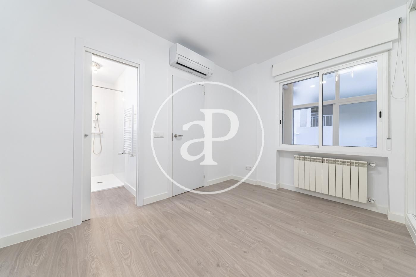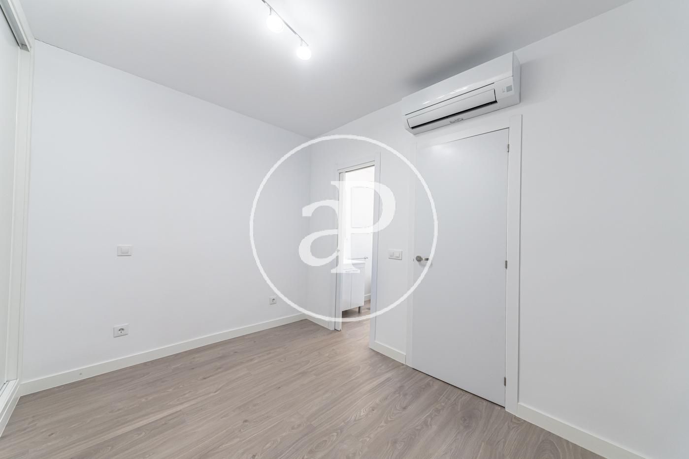 Available wonderful exterior apartment, newly renovated and very bright. Located between the metro stops of Sainz de Baranda and O'Donnell, with several bus lines nearby, direct access to M30 and M40. Next to the Beata María Ana and Gregorio Marañón University Hospitals. Also, very close to the parks of Roma and Retiro. The property is delivered unfurnished and with fully equipped kitchen (oven, microwave, dishwasher, refrigerator, washing machine, vitro). It has 2 double bedrooms (one of them with bathroom en suite), with fitted closets and 2 complete bathrooms. The heating is individual natural gas and there is air conditioning in all rooms. The apartment also has an indoor covered terrace, patio and storage room included in the price.