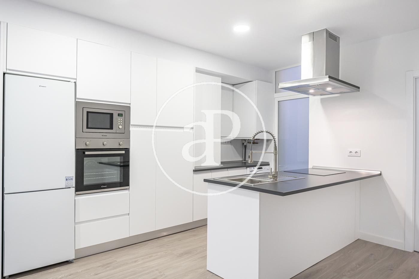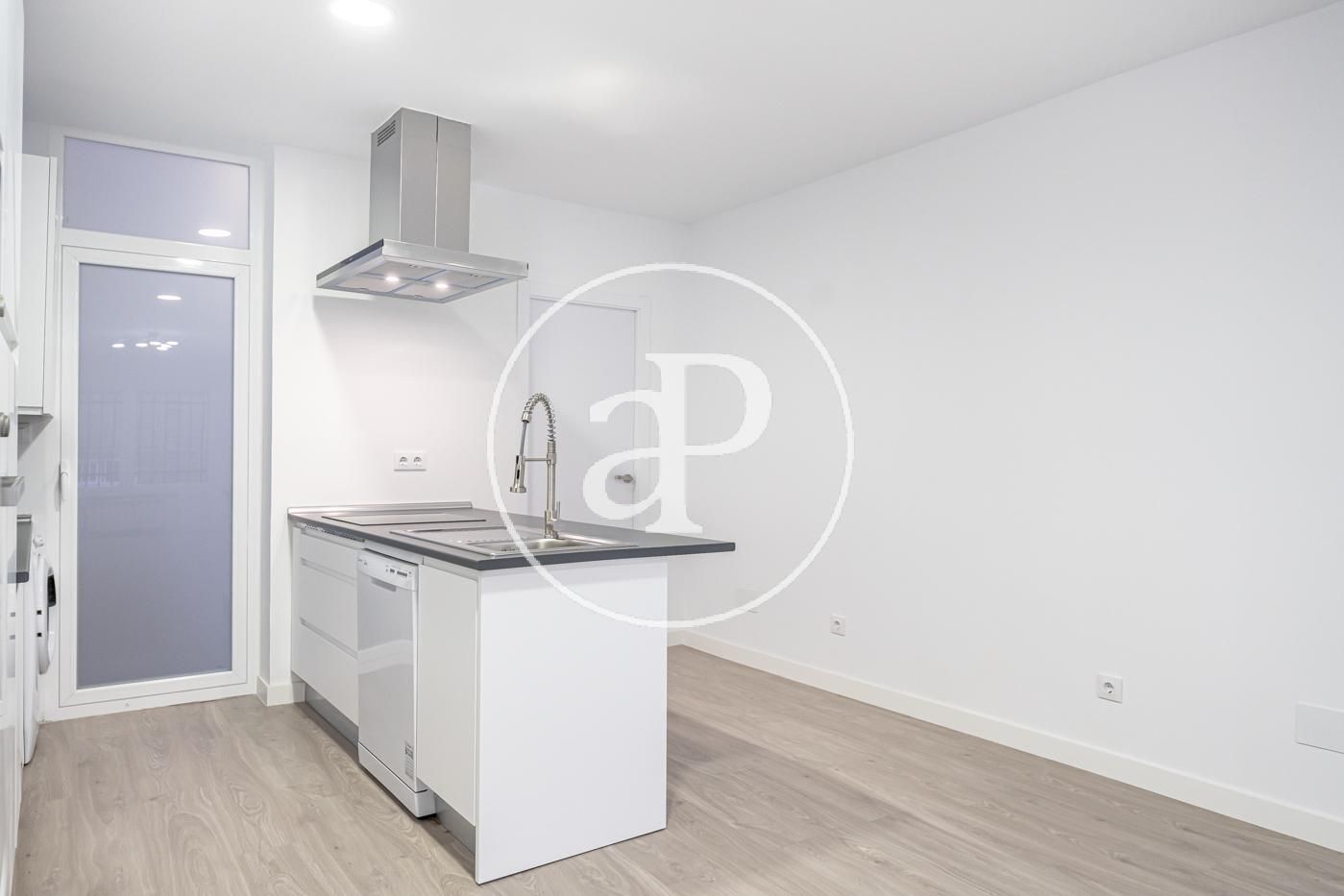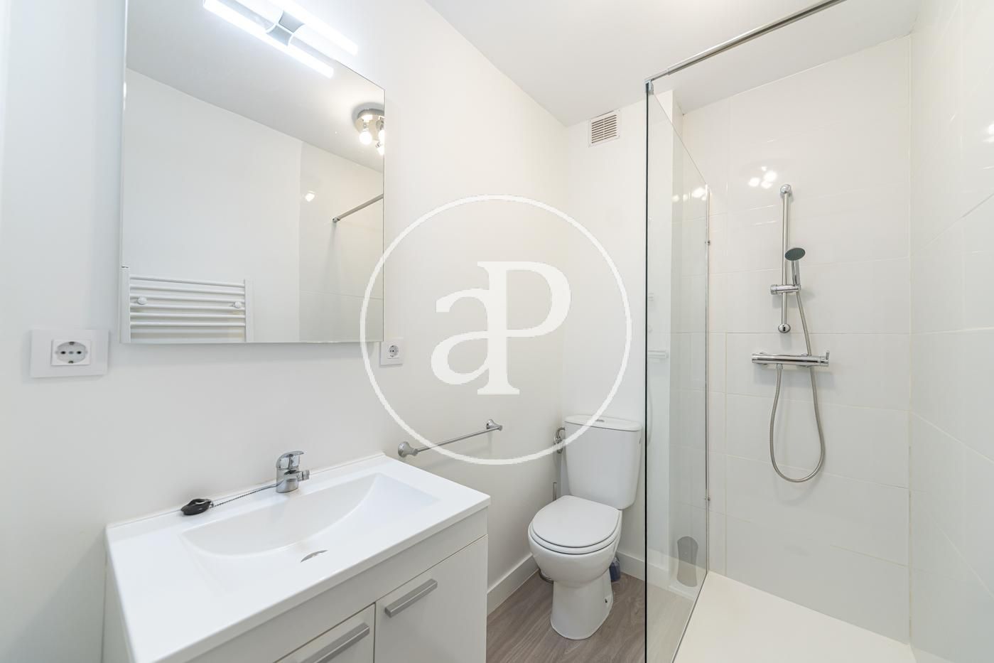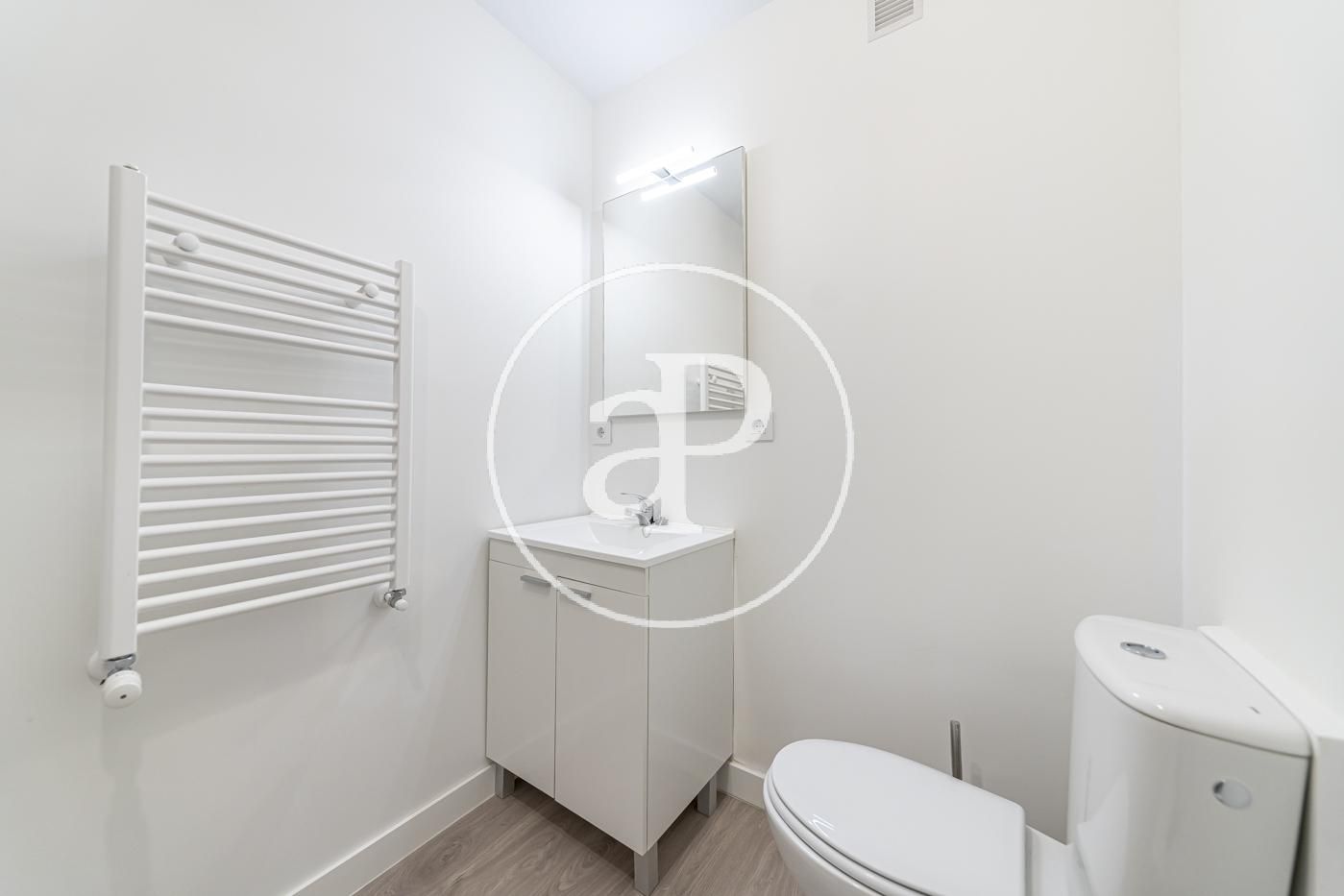 Available wonderful exterior apartment, newly renovated and very bright. Located between the metro stops of Sainz de Baranda and O'Donnell, with several bus lines nearby, direct access to M30 and M40. Next to the Beata María Ana and Gregorio Marañón University Hospitals. Also, very close to the parks of Roma and Retiro. The property is delivered unfurnished and with fully equipped kitchen (oven, microwave, dishwasher, refrigerator, washing machine, vitro). It has 2 double bedrooms (one of them with bathroom en suite), with fitted closets and 2 complete bathrooms. The heating is individual natural gas and there is air conditioning in all rooms. The apartment also has an indoor covered terrace, patio and storage room included in the price.
