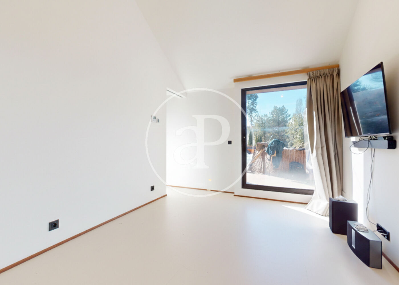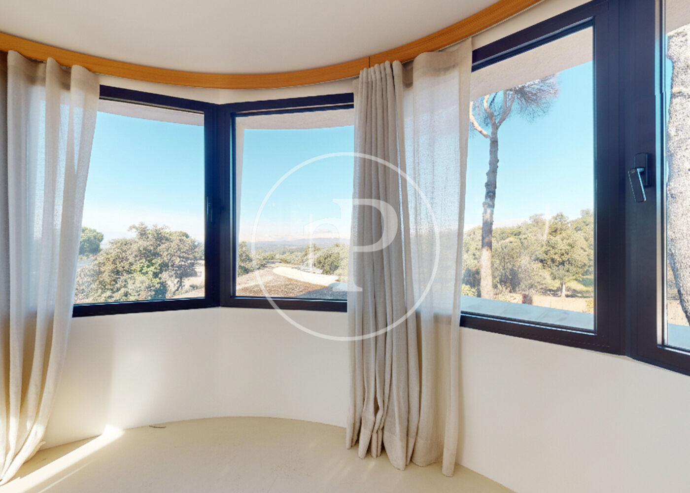 Situated on a tranquil, elevated 1,800 m² plot next to Monte del Pardo, the villa enjoys spectacular open views of the Sierra de Madrid mountains and a privileged location just 10 minutes from Moncloa, allowing residents to enjoy nature without sacrificing proximity to the city center.