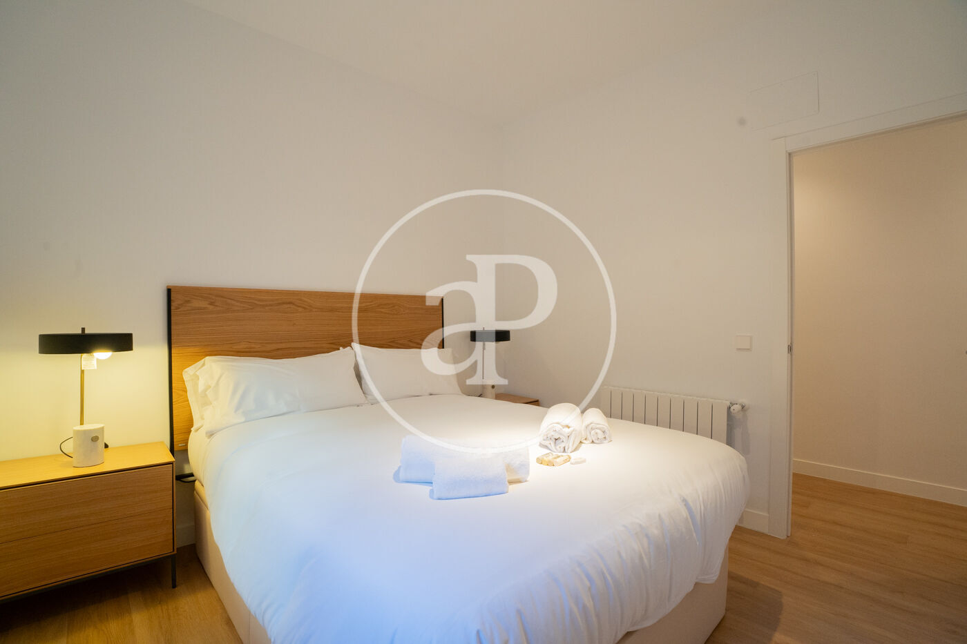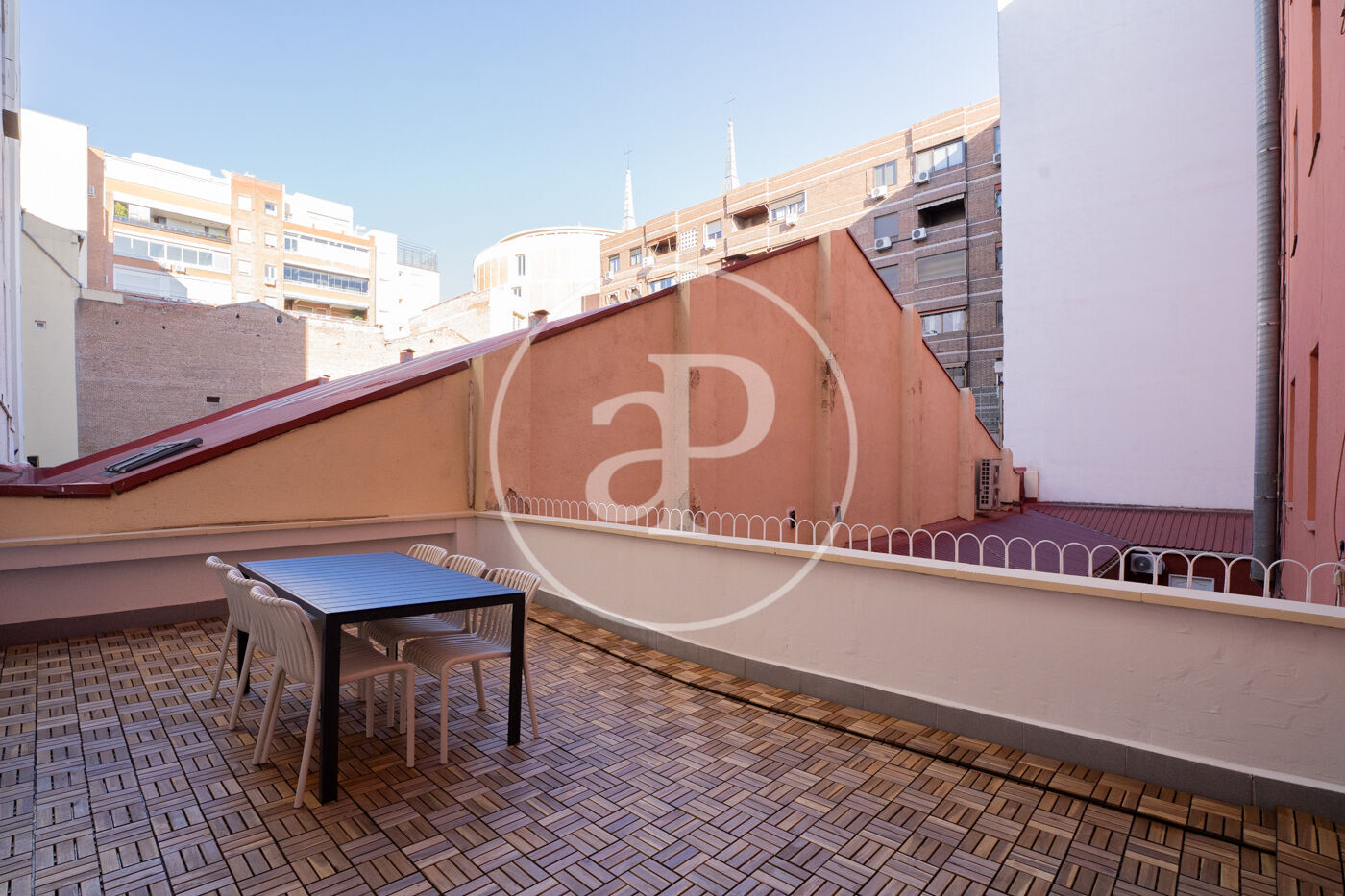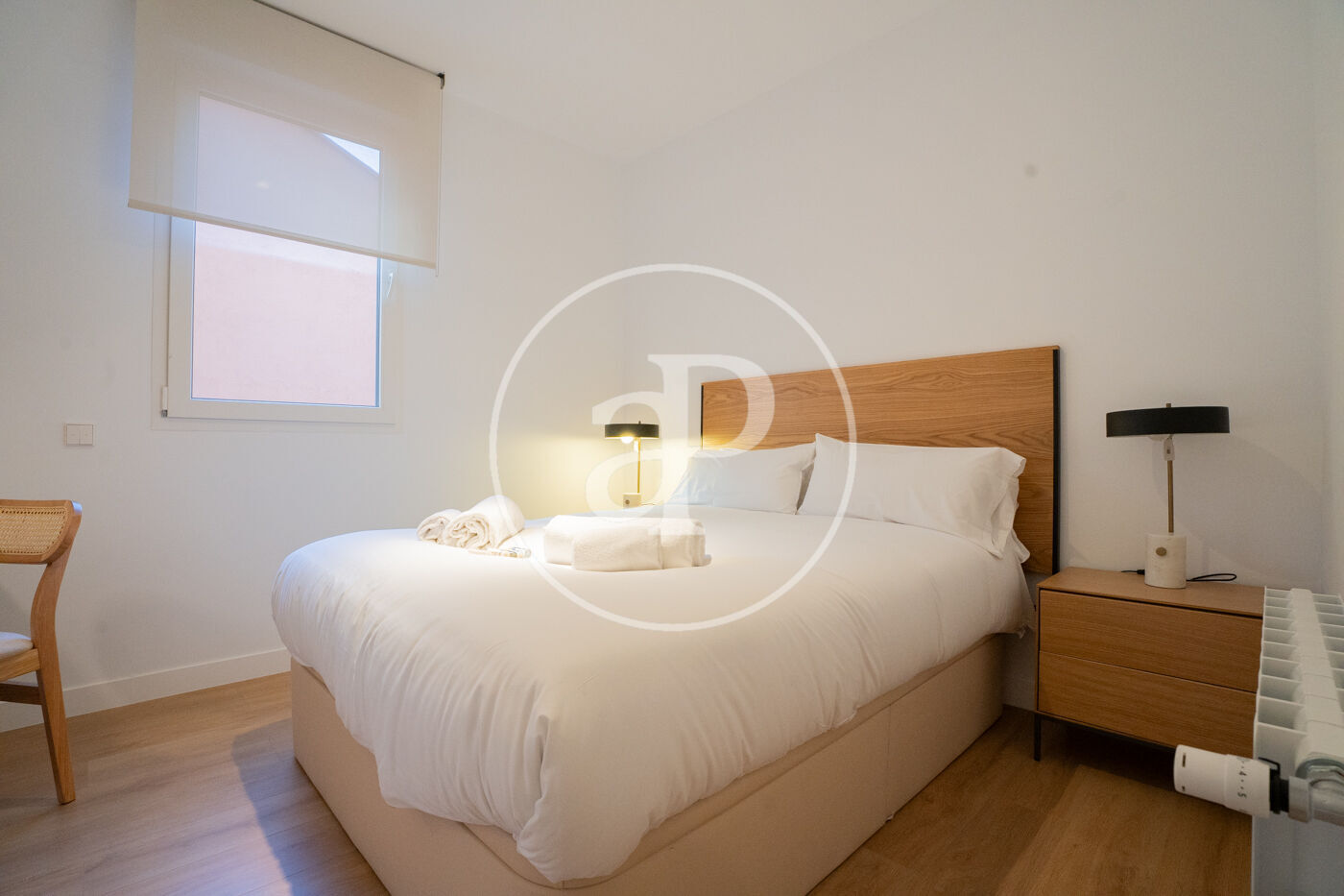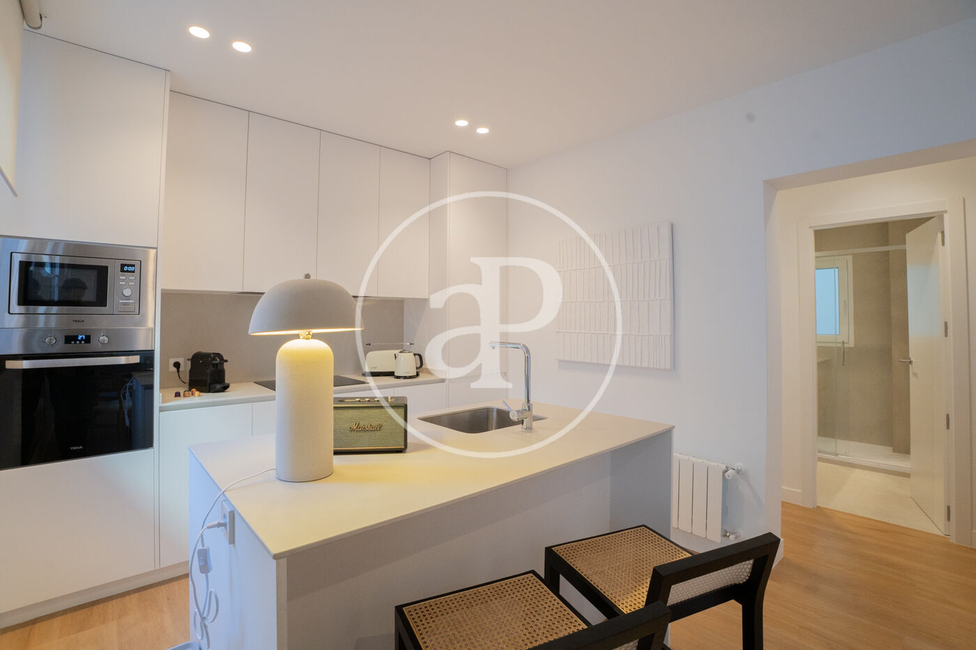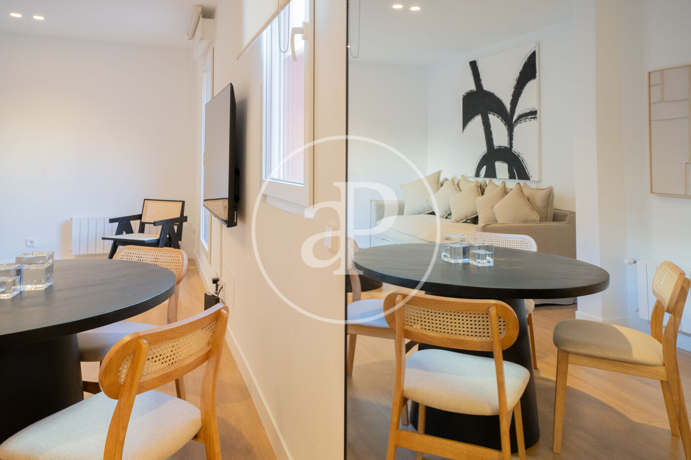 Beautiful renovated and furnished apartment on Monte Esquinza Street. The apartment is located in the Almagro neighborhood on one of the city's most prestigious streets, just a few meters from Plaza de la Villa de París and Plaza de Colón. This is a fifth-floor exterior apartment with two balconies overlooking the street in a classic 1926 building. The property has been recently renovated with exceptional attention to detail and the highest quality finishes and materials. It features a beautiful and welcoming living room-kitchen, two bedrooms, one en suite, and a full bathroom. The living room-kitchen blends classic elements typical of the building with modern and luxurious decor. The kitchen has plenty of storage space and is equipped with top-brand appliances. This east-facing space receives magnificent morning light thanks to a bay window and a balcony. A hallway leads to the sleeping area, where there is a comfortable en-suite bedroom and another double bedroom. A bathroom in the hallway serves the second bedroom and also serves as a guest toilet. The property has 104 m², of which 94 m² are residential and 10 m² are common areas. The home features ducted hot/cold air conditioning, underfloor heating, a fully equipped paneled kitchen, and designer furniture. Its high ceilings add spaciousness, and its east/west orientation provides optimal cross-ventilation. The property has a concierge and reasonable fees: community fees of €134 and property taxes of €715. This is an exceptional opportunity to live or invest in one of the most sought-after areas of the capital, not only for its undeniable beauty and distinction, but also for all its amenities, including leisure and cultural amenities, prestigious schools, and museums. Almagro is one of the capital's most elegant and noble areas, with stately, classically styled palatial buildings and pleasant parks and avenues that make it a unique neighborhood. It is located just a few meters from the Salamanca and Justicia neighborhoods. Its central location provides easy access to other neighborhoods. Can you imagine living here?