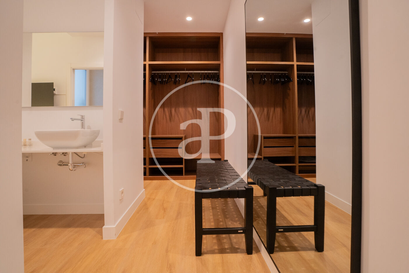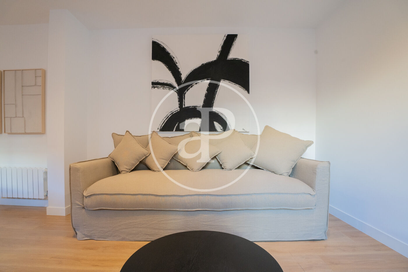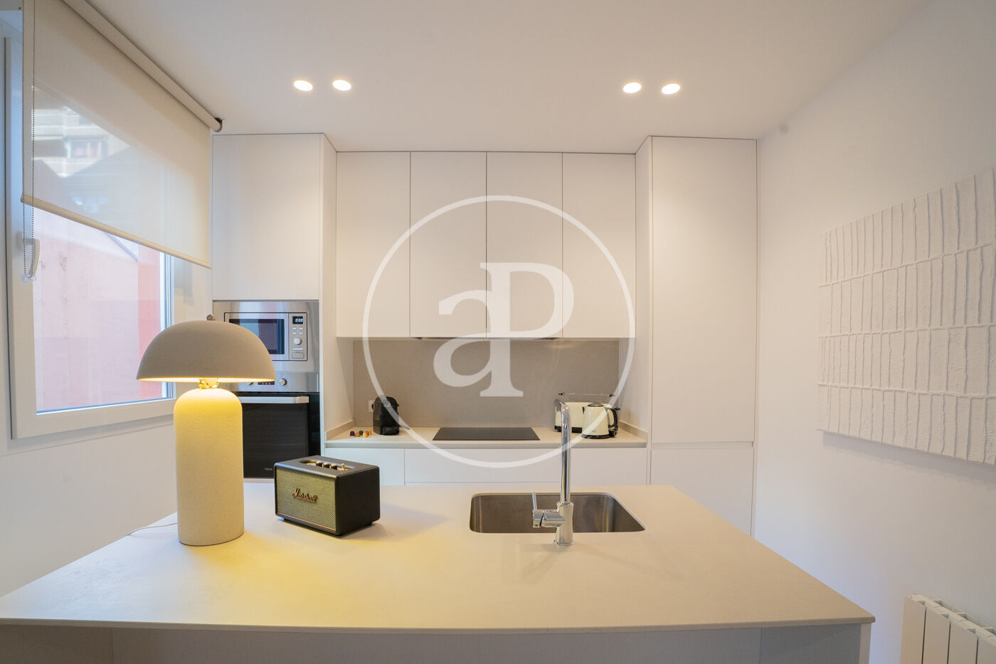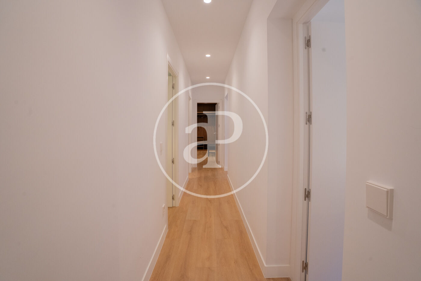 Beautiful renovated and furnished apartment on Monte Esquinza Street. The apartment is located in the Almagro neighborhood on one of the city's most prestigious streets, just a few meters from Plaza de la Villa de París and Plaza de Colón. This is a fifth-floor exterior apartment with two balconies overlooking the street in a classic 1926 building. The property has been recently renovated with exceptional attention to detail and the highest quality finishes and materials. It features a beautiful and welcoming living room-kitchen, two bedrooms, one en suite, and a full bathroom. The living room-kitchen blends classic elements typical of the building with modern and luxurious decor. The kitchen has plenty of storage space and is equipped with top-brand appliances. This east-facing space receives magnificent morning light thanks to a bay window and a balcony. A hallway leads to the sleeping area, where there is a comfortable en-suite bedroom and another double bedroom. A bathroom in the hallway serves the second bedroom and also serves as a guest toilet. The property has 104 m², of which 94 m² are residential and 10 m² are common areas. The home features ducted hot/cold air conditioning, underfloor heating, a fully equipped paneled kitchen, and designer furniture. Its high ceilings add spaciousness, and its east/west orientation provides optimal cross-ventilation. The property has a concierge and reasonable fees: community fees of €134 and property taxes of €715. This is an exceptional opportunity to live or invest in one of the most sought-after areas of the capital, not only for its undeniable beauty and distinction, but also for all its amenities, including leisure and cultural amenities, prestigious schools, and museums. Almagro is one of the capital's most elegant and noble areas, with stately, classically styled palatial buildings and pleasant parks and avenues that make it a unique neighborhood. It is located just a few meters from the Salamanca and Justicia neighborhoods. Its central location provides easy access to other neighborhoods. Can you imagine living here?