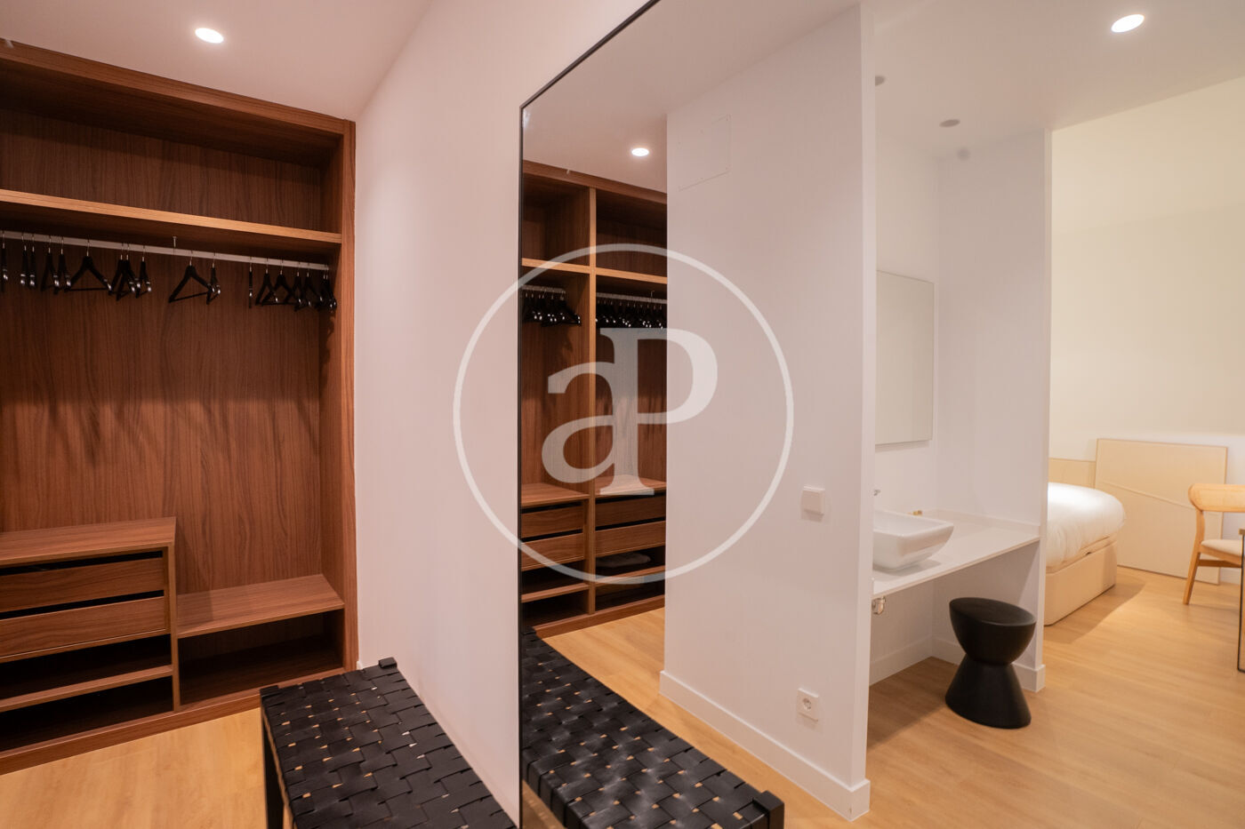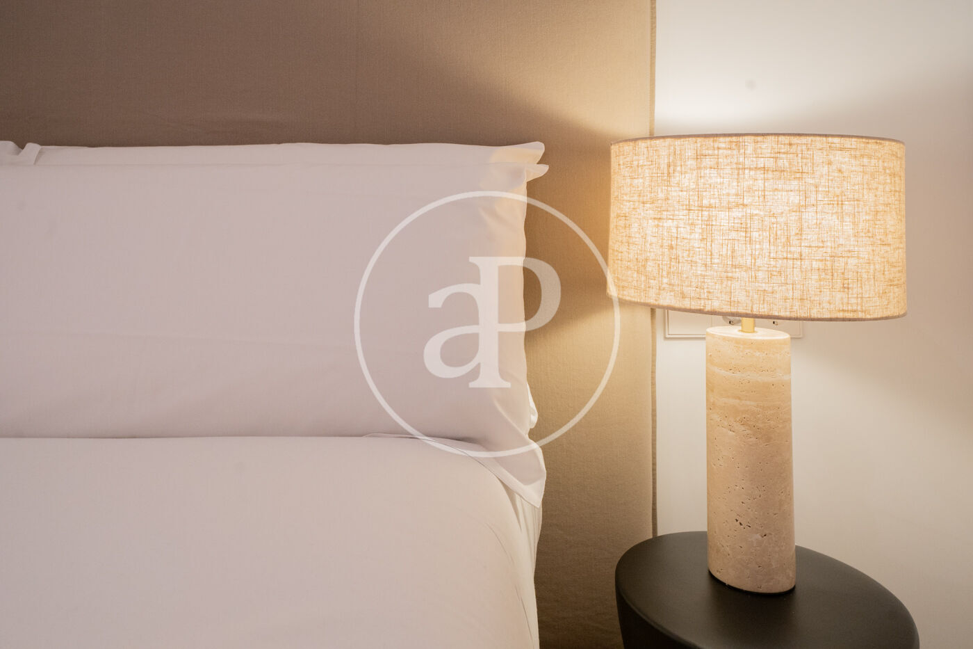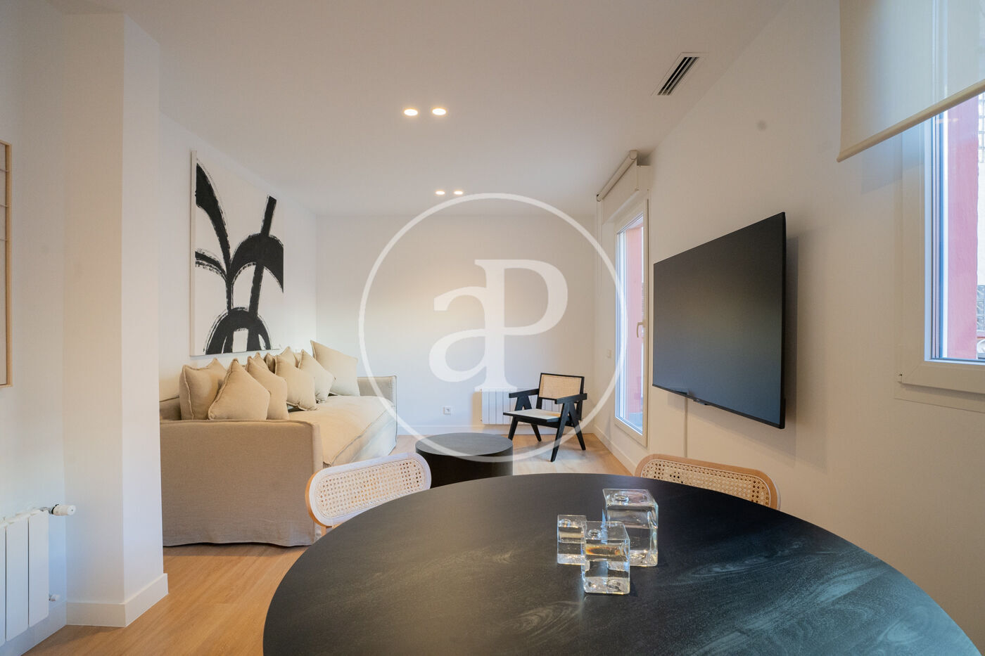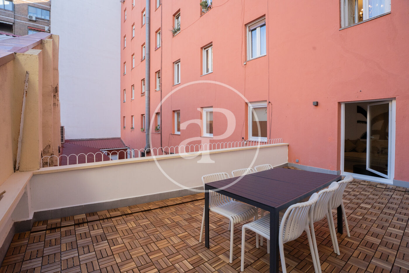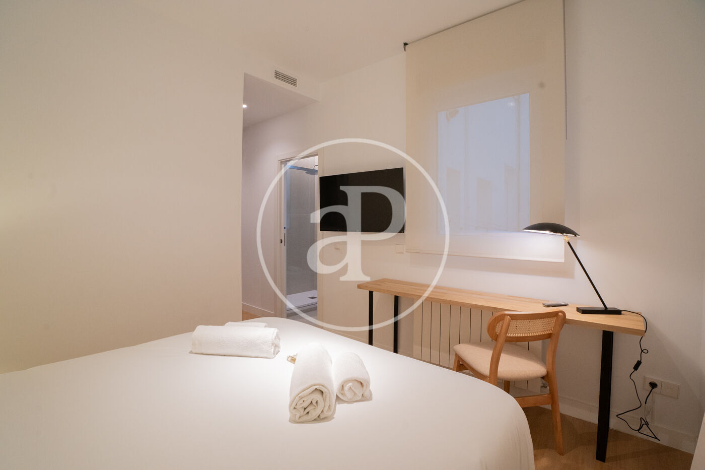 Beautiful renovated and furnished apartment on Monte Esquinza Street. The apartment is located in the Almagro neighborhood on one of the city's most prestigious streets, just a few meters from Plaza de la Villa de París and Plaza de Colón. This is a fifth-floor exterior apartment with two balconies overlooking the street in a classic 1926 building. The property has been recently renovated with exceptional attention to detail and the highest quality finishes and materials. It features a beautiful and welcoming living room-kitchen, two bedrooms, one en suite, and a full bathroom. The living room-kitchen blends classic elements typical of the building with modern and luxurious decor. The kitchen has plenty of storage space and is equipped with top-brand appliances. This east-facing space receives magnificent morning light thanks to a bay window and a balcony. A hallway leads to the sleeping area, where there is a comfortable en-suite bedroom and another double bedroom. A bathroom in the hallway serves the second bedroom and also serves as a guest toilet. The property has 104 m², of which 94 m² are residential and 10 m² are common areas. The home features ducted hot/cold air conditioning, underfloor heating, a fully equipped paneled kitchen, and designer furniture. Its high ceilings add spaciousness, and its east/west orientation provides optimal cross-ventilation. The property has a concierge and reasonable fees: community fees of €134 and property taxes of €715. This is an exceptional opportunity to live or invest in one of the most sought-after areas of the capital, not only for its undeniable beauty and distinction, but also for all its amenities, including leisure and cultural amenities, prestigious schools, and museums. Almagro is one of the capital's most elegant and noble areas, with stately, classically styled palatial buildings and pleasant parks and avenues that make it a unique neighborhood. It is located just a few meters from the Salamanca and Justicia neighborhoods. Its central location provides easy access to other neighborhoods. Can you imagine living here?