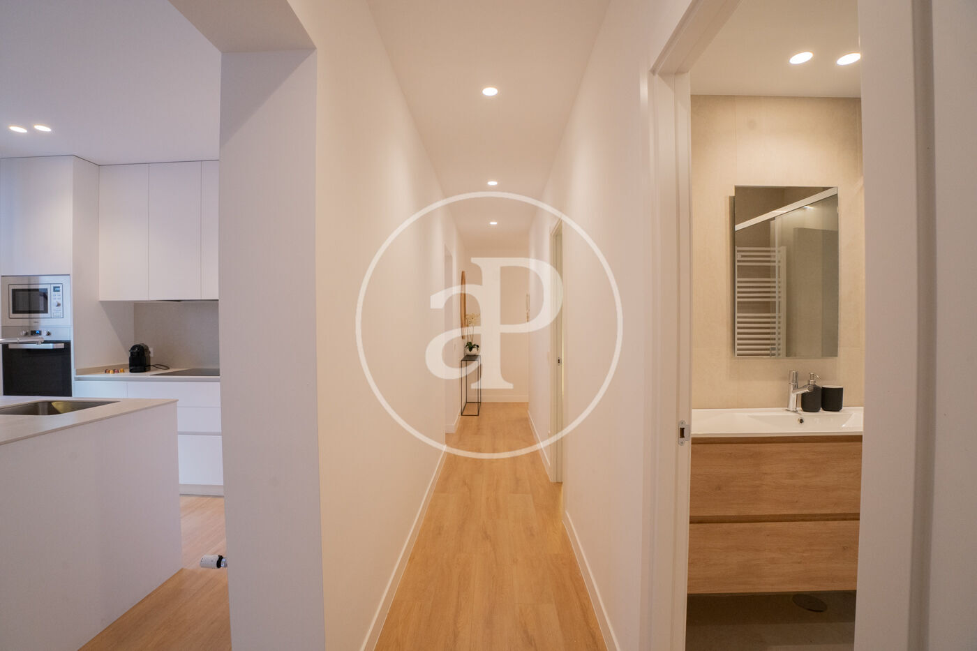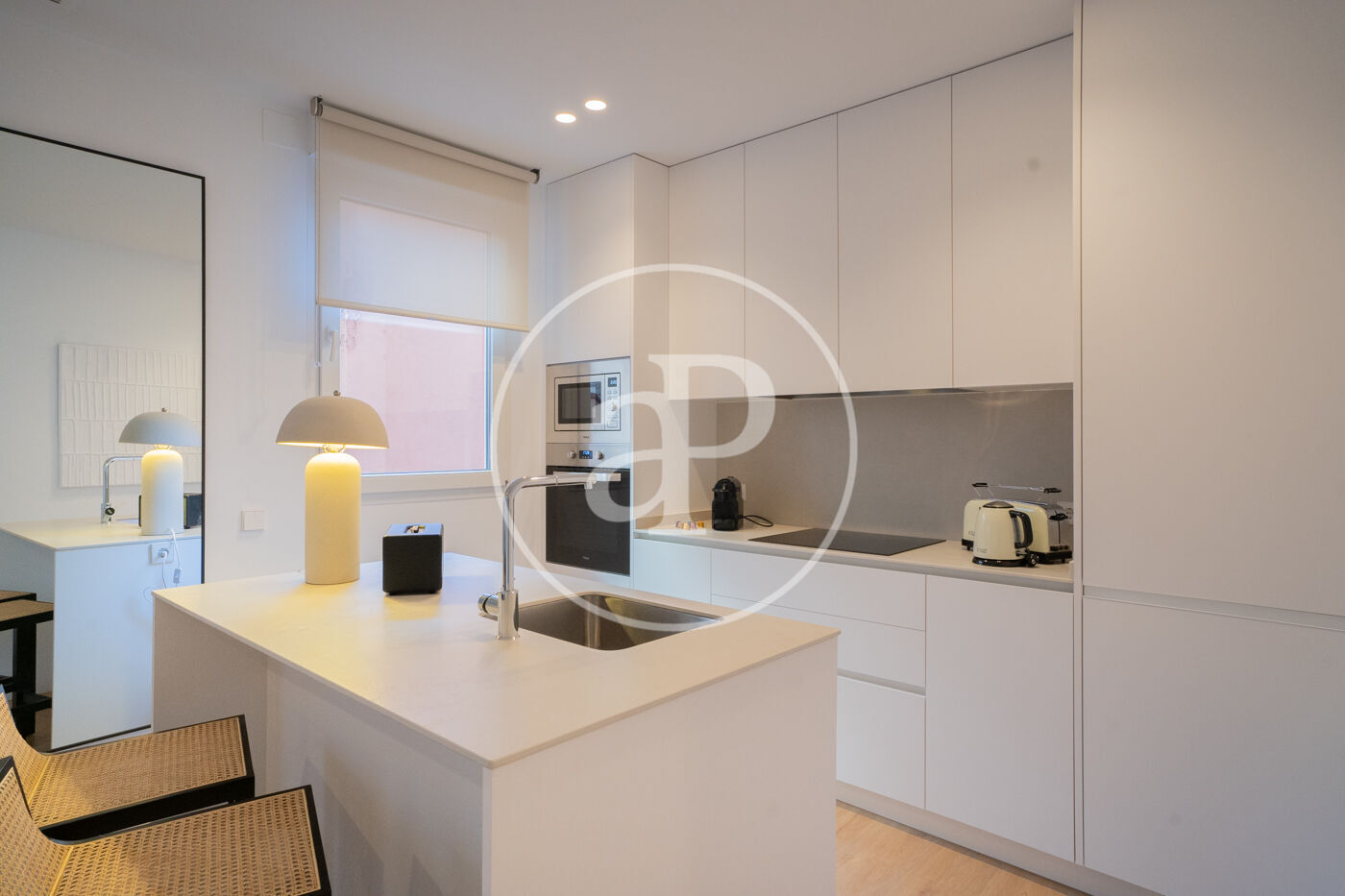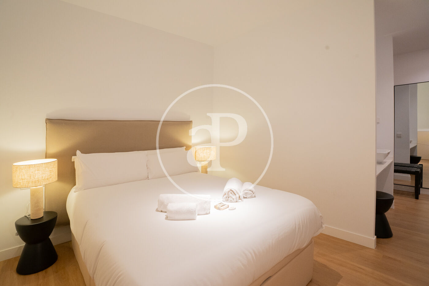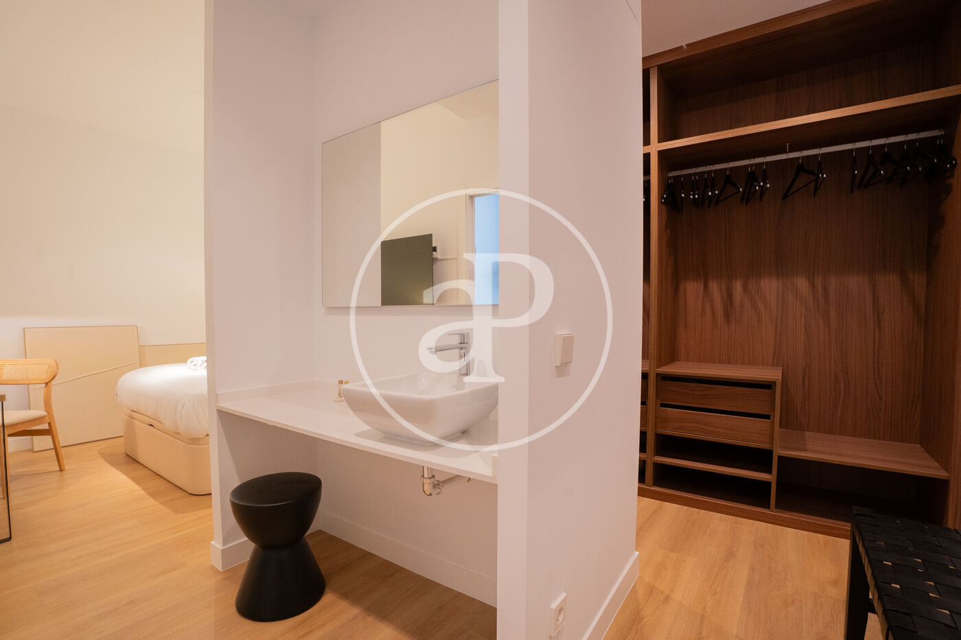 Beautiful renovated and furnished apartment on Monte Esquinza Street. The apartment is located in the Almagro neighborhood on one of the city's most prestigious streets, just a few meters from Plaza de la Villa de París and Plaza de Colón. This is a fifth-floor exterior apartment with two balconies overlooking the street in a classic 1926 building. The property has been recently renovated with exceptional attention to detail and the highest quality finishes and materials. It features a beautiful and welcoming living room-kitchen, two bedrooms, one en suite, and a full bathroom. The living room-kitchen blends classic elements typical of the building with modern and luxurious decor. The kitchen has plenty of storage space and is equipped with top-brand appliances. This east-facing space receives magnificent morning light thanks to a bay window and a balcony. A hallway leads to the sleeping area, where there is a comfortable en-suite bedroom and another double bedroom. A bathroom in the hallway serves the second bedroom and also serves as a guest toilet. The property has 104 m², of which 94 m² are residential and 10 m² are common areas. The home features ducted hot/cold air conditioning, underfloor heating, a fully equipped paneled kitchen, and designer furniture. Its high ceilings add spaciousness, and its east/west orientation provides optimal cross-ventilation. The property has a concierge and reasonable fees: community fees of €134 and property taxes of €715. This is an exceptional opportunity to live or invest in one of the most sought-after areas of the capital, not only for its undeniable beauty and distinction, but also for all its amenities, including leisure and cultural amenities, prestigious schools, and museums. Almagro is one of the capital's most elegant and noble areas, with stately, classically styled palatial buildings and pleasant parks and avenues that make it a unique neighborhood. It is located just a few meters from the Salamanca and Justicia neighborhoods. Its central location provides easy access to other neighborhoods. Can you imagine living here?