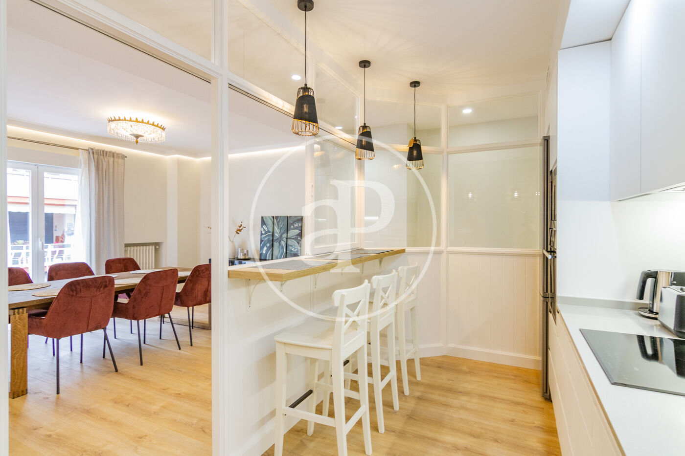 Spacious and bright exterior flat for sale in Patraix, next to Tres Forques and Archiduque Carlos. aProperties offers you this spectacular flat of large dimensions, completely exterior, very bright and with a functional and comfortable distribution. It is located in a consolidated and well communicated area of the Patraix neighbourhood, next to Tres Forques and Archiduque Carlos avenues. Located in a building of high architectural value, it stands out for the quality of its finishes, its design and the solidity of the materials used in its construction. The property enjoys an excellent exterior orientation, with rooms facing east, south and west, which guarantees natural light throughout the day. The layout is ideal: spacious and well-used spaces. On entering the property, we find an elegant entrance hall that connects with a spacious living-dining room with access to a balcony overlooking a garden area, as well as a spacious kitchen-diner with a separate utility room. From the kitchen and the living room there is access to a hall that leads to four double bedrooms and two complete bathrooms, all of them exterior and aligned, which brings a lot of fluidity and comfort to the whole. The property has natural gas central heating, two splits of air conditioning strategically located, and the possibility of acquiring a large parking space for an additional 40,000 €. The area is very quiet and green, with the Parque del Oeste just a few minutes away, municipal swimming pools, outdoor sports areas, pedestrian streets, schools of all educational stages and all kinds of services: supermarkets, health centres, pharmacies and neighbourhood shops. Do not hesitate to contact us for more information or to arrange a visit. We will be delighted to help you.