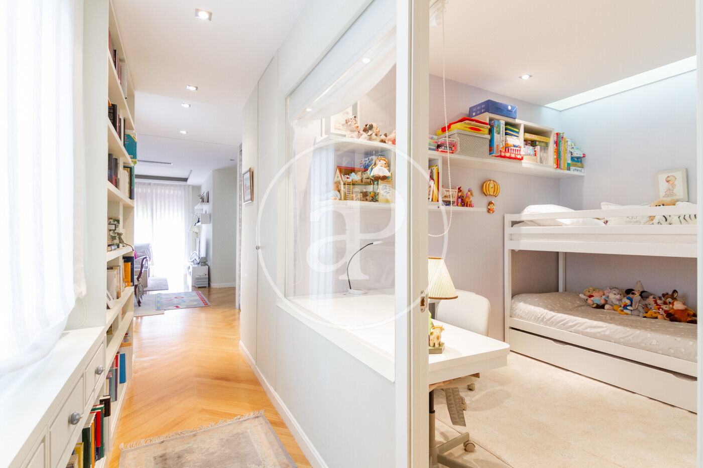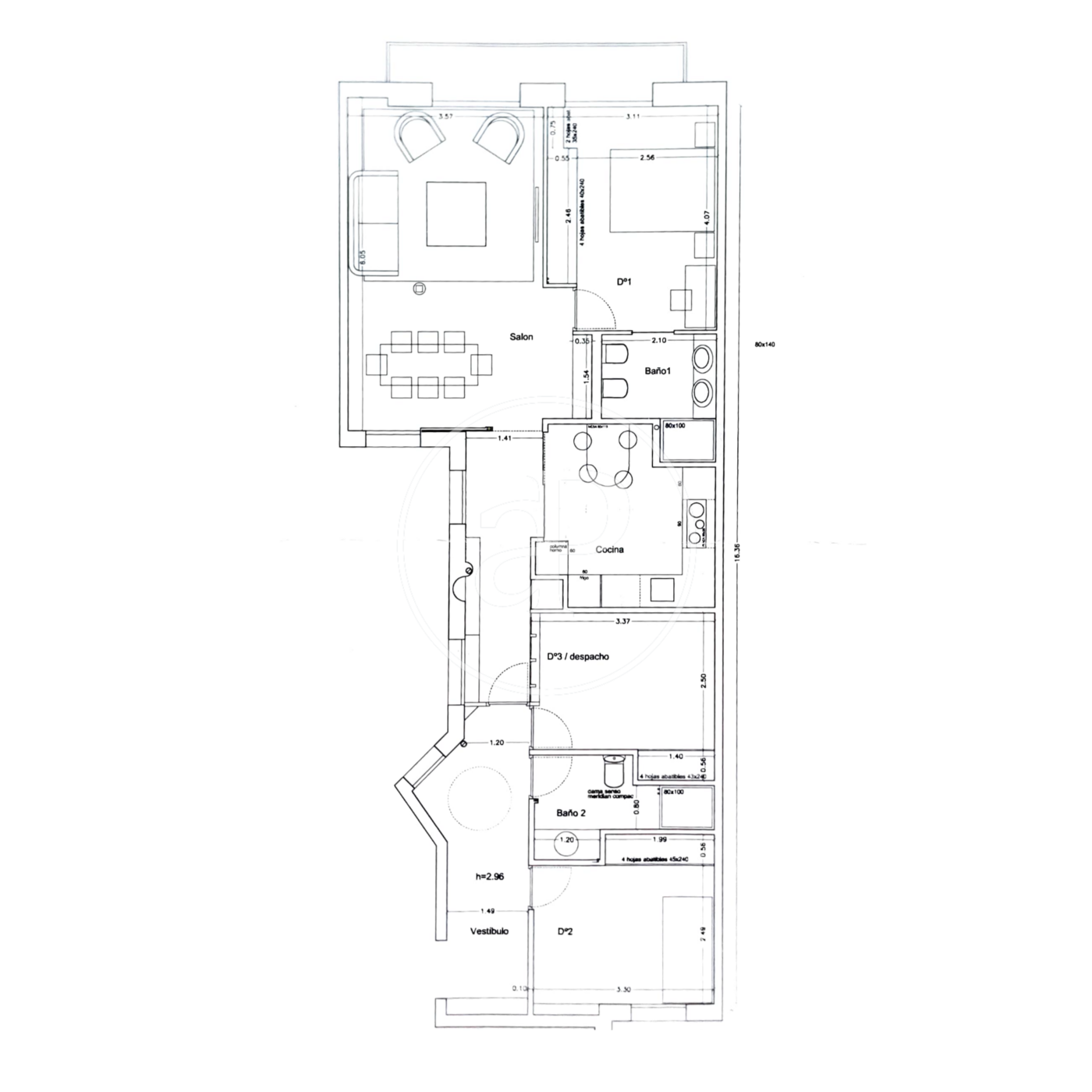 UNFURNISHED. From the entrance, we enter a small hall that leads to a hallway filled with large windows that bring plenty of light into the apartment. This hallway connects the home, giving access to three bedrooms that share a full bathroom and a separate kitchen separated by glass. From the living room, we access a very large walk-through balcony, and also from this point, we access the master bedroom, which has another walk-through balcony, a dressing room, and an en suite bathroom. The apartment was recently renovated. This unfurnished apartment is located in the heart of Salamanca.